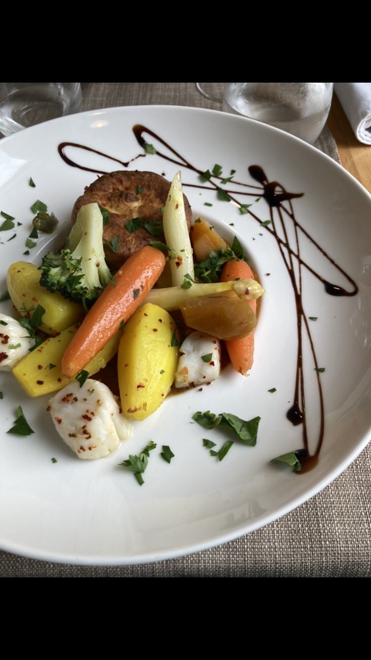 Très bon ! Je recommande l’île flottante sauce vin jaune en entrée c’est très léger et saveurs présentes 😁 Les plats sont parfaitement présentés.. je vous laisse découvrir le reste .