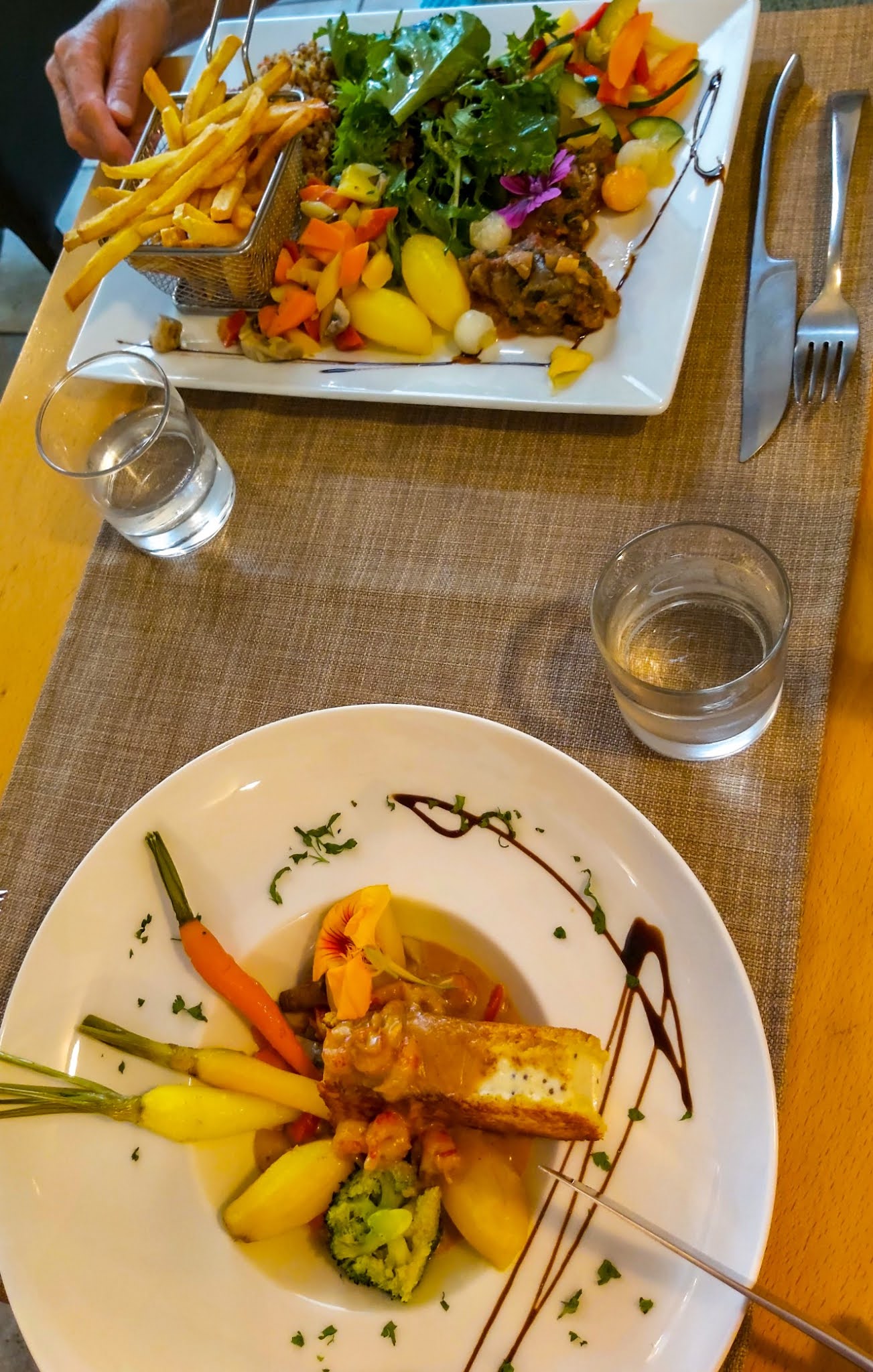 Repas à deux en terrasse, nous avons choisi le menu du jour, 20 € par personne. Les saveurs sont au rendez-vous et les plats sont copieux, tout est très bon ! Nous reviendrons