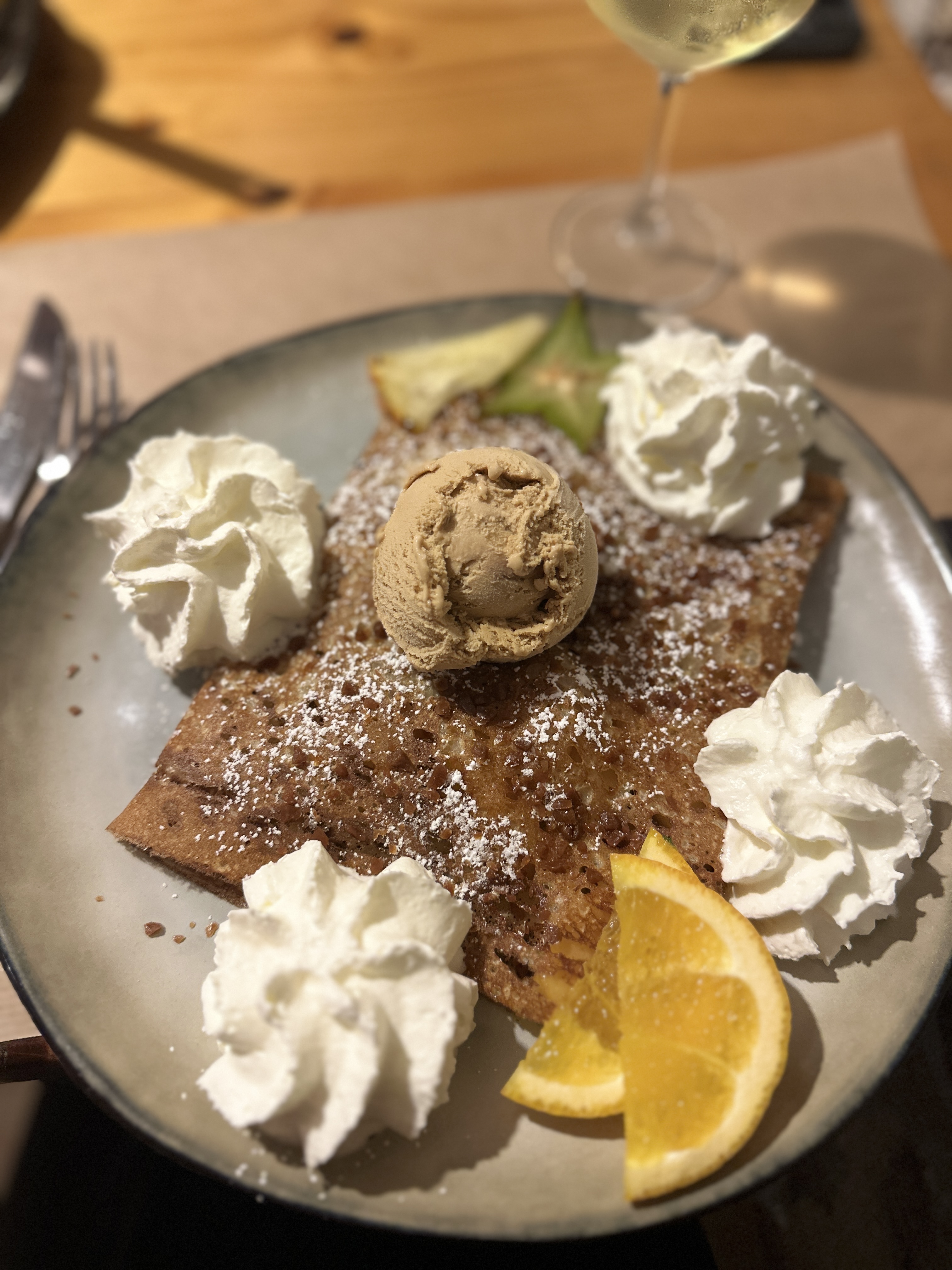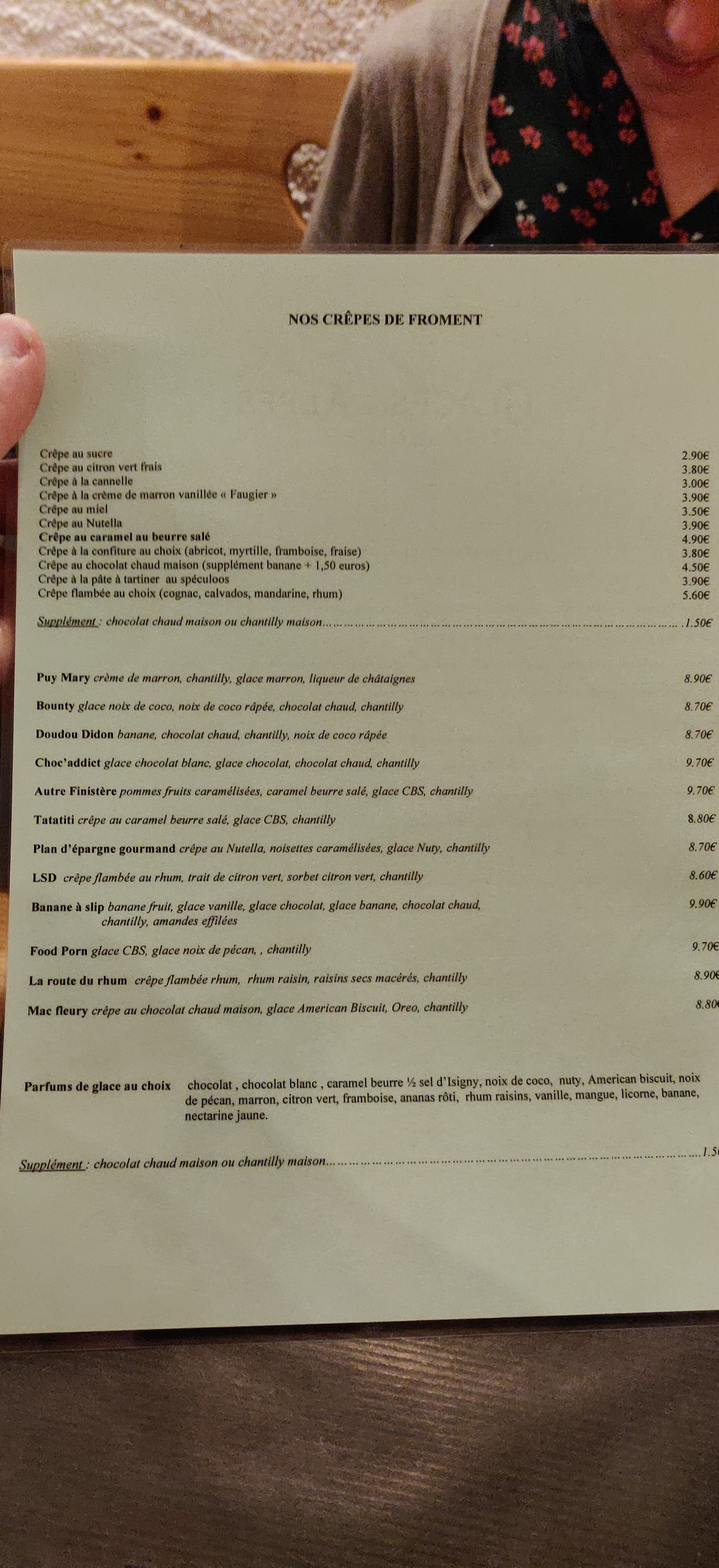 Nous avons apprécié ce réveillon du 31 Décembre l'accueil chaleureux du patron et les crêpes délicieuses avec des produits de saison et des glaces délicieuses
