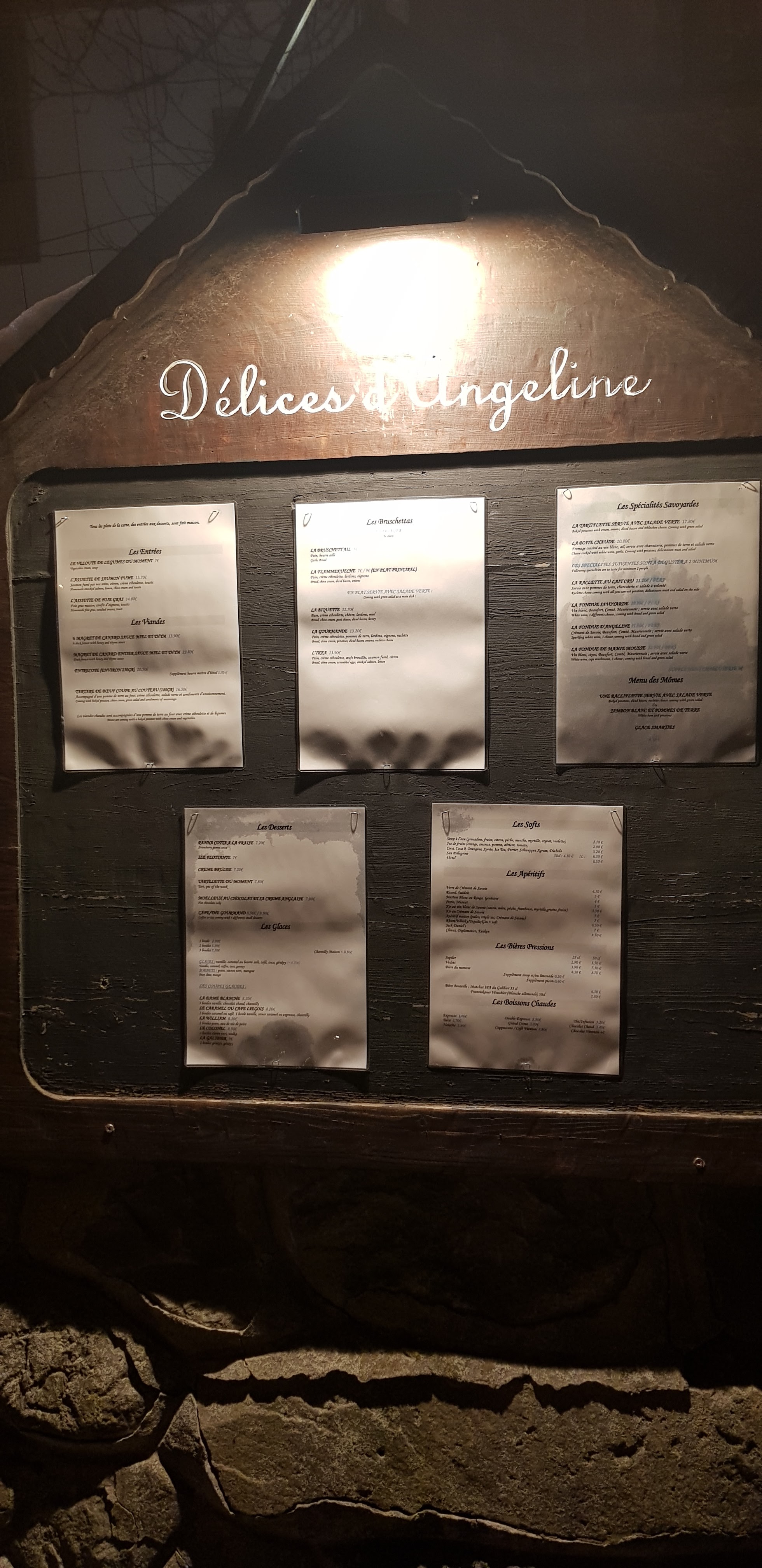 On se fait toujours un dîner dans un restaurant savoyard pendant notre séjour à la montagne. Cette année, notre choix s'est porté sur La maison d'angeline. On n'a pas regretté. Le cadre est typique: de belles pierres, une cave voutée, des poutres apparentes, une décoration montagnarde pas ostentatoire. Nous avons pris une fondue savoyarde pour quatre (2 adultes et 2 ados gloutons) avec trois supplément charcuterie: la qualité, le goût et la quantité sont au rendez-vous. Le personnel est hyper sympathique. Le service est rapide et efficace. Bravo, continuez ainsi !