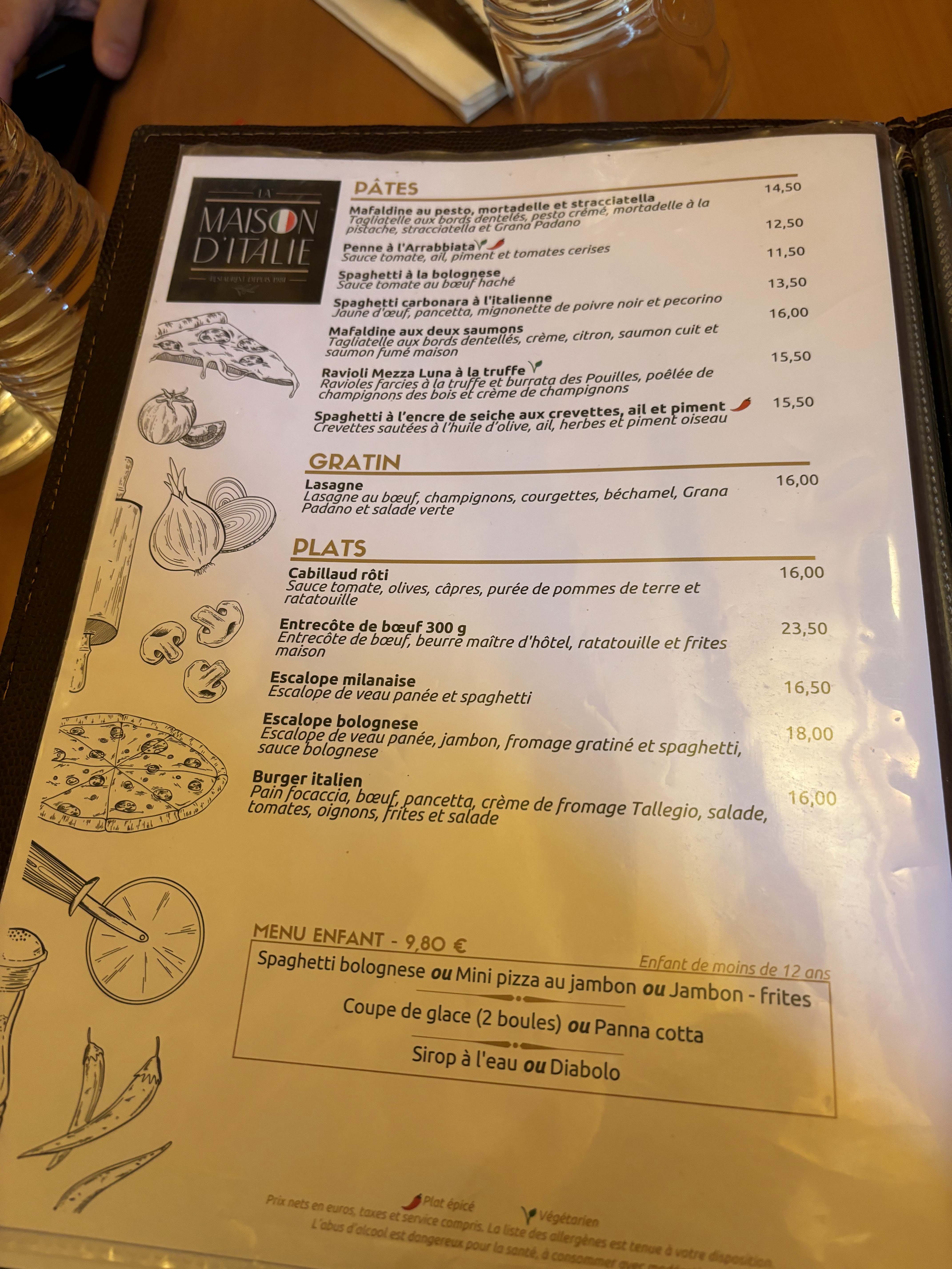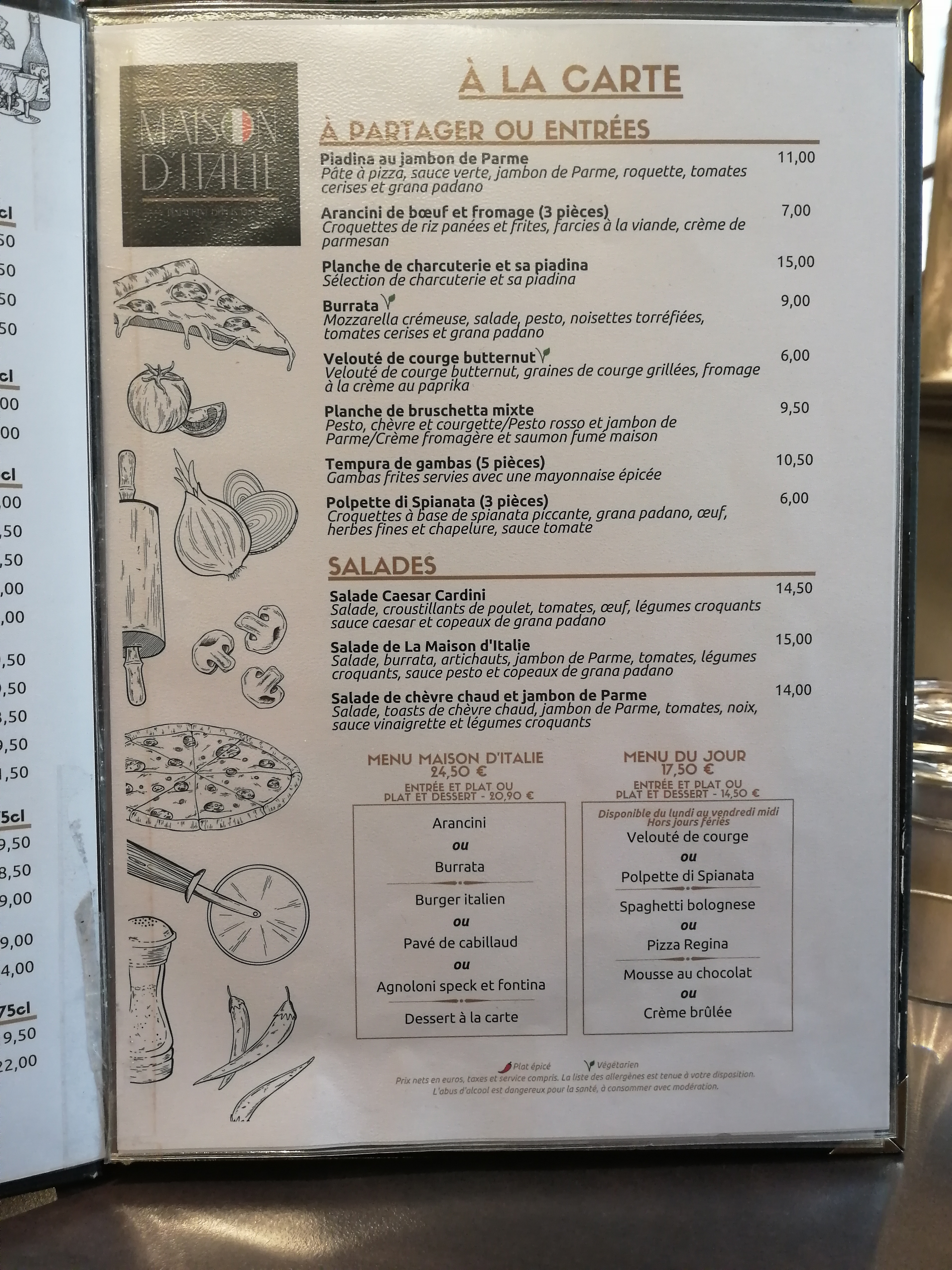 La maison de l’Italie est un restaurant italien assez classique. Aucun plat est fait maison. Impression d’être invisible aux yeux du personnel. Service assez long. Pizza et dessert vraiment basique. « Vin du moment » affiché à 3€ sur la carte et payé 4€ car « c’est comme ça pour tous les verres » bref, passer votre chemin.