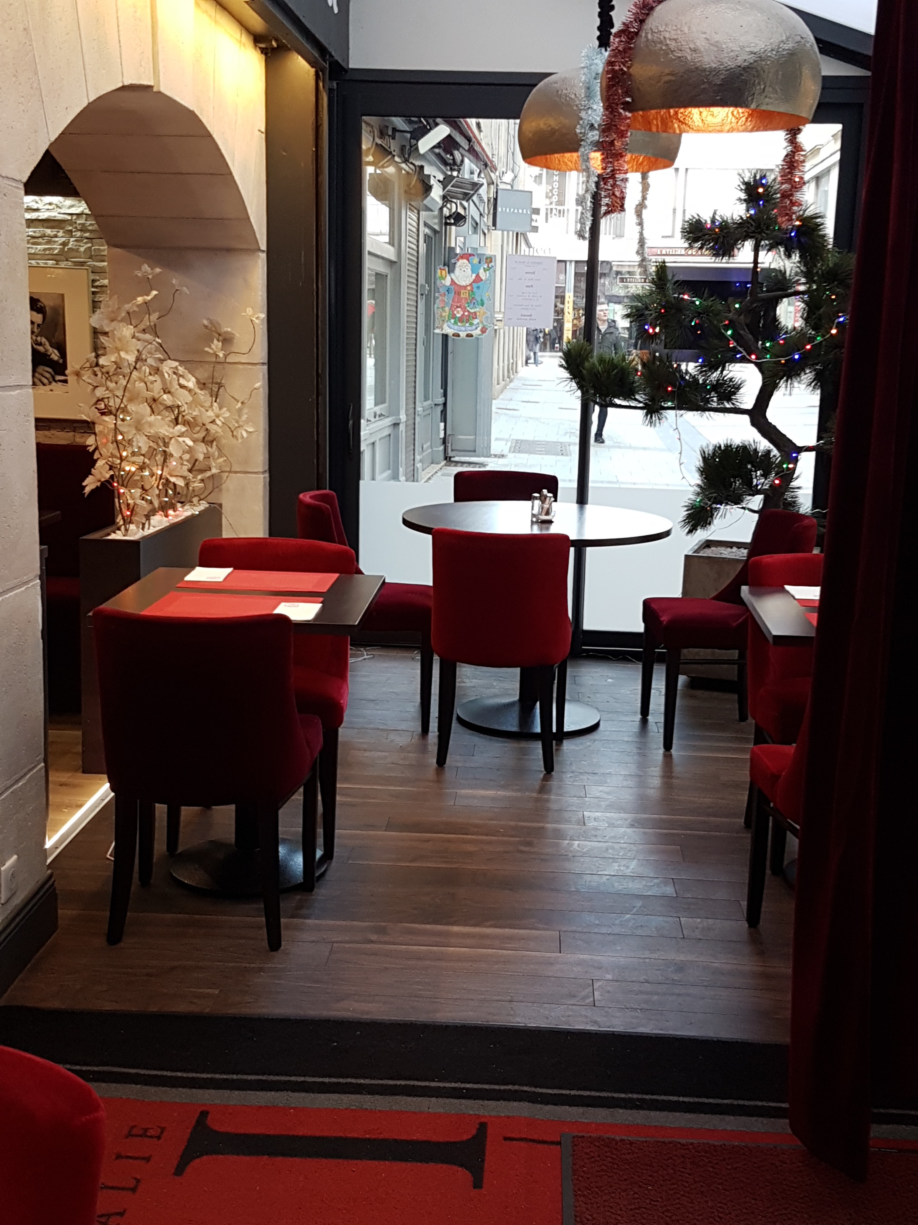 Moi et ma compagne sommes venus un samedi midi pour découvrir, pour ma part, ce restaurant bien caché sur la rue piétonne. Alors déjà, je ne sais pas si c'était parce que ce jour-là était le premier jour des soldes mais c'était blindé de monde mais un conseil, réservez avant d'y aller. Bref, c'est un restaurant vraiment chique et bien chauffé et ce qui fait que cet établissement est vraiment génial c'est qu'ils acceptent les chiens et même les chiens de grande taille, nous, nous étions arrivés avec un berger allemand donc c'est un très bon point. L'accueil est vraiment très agréable, la serveuse que nous avons eu était au petit soin avec nous, malgré un peu d'attente mais vu le monde je comprends, elle s'est excusée plusieurs fois. Comme vous pouvez le voir sur les photos que j'ai partagé c'était vraiment bien copieux et honnêtement c'est juste excellent, ça vaut sont prix et ça vaut le coup d'attendre un peu chaque plat vu comment c'est gourmand. Nous n'étions pas les uns sur les autres malgré le monde et en plus de ça on a bien rigolé. Pour une entrée à partager, deux entrées, deux plats et deux desserts en plus des boissons du début, on en a eu pour 86 euros et honnêtement c'est un prix vraiment raisonnable au vu de la qualité des plats. Sincèrement je recommande sans hésiter.