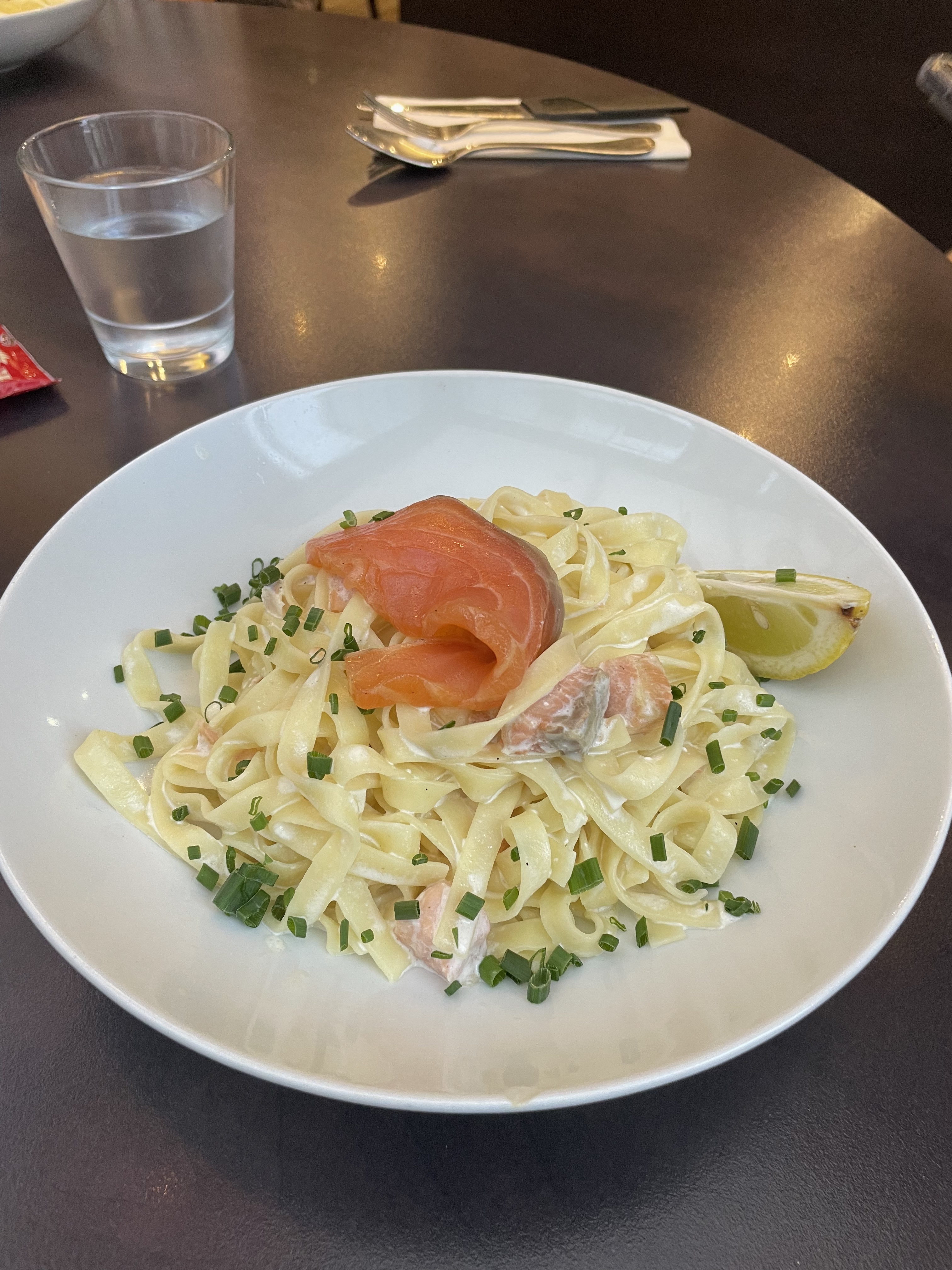 Très bon restaurant, copieux (j'ai pris des pâtes au saumon pour lesquelles le cuisinier ne lésine pas sur le saumon), dans un cadre intérieur agréable et un service impeccable.