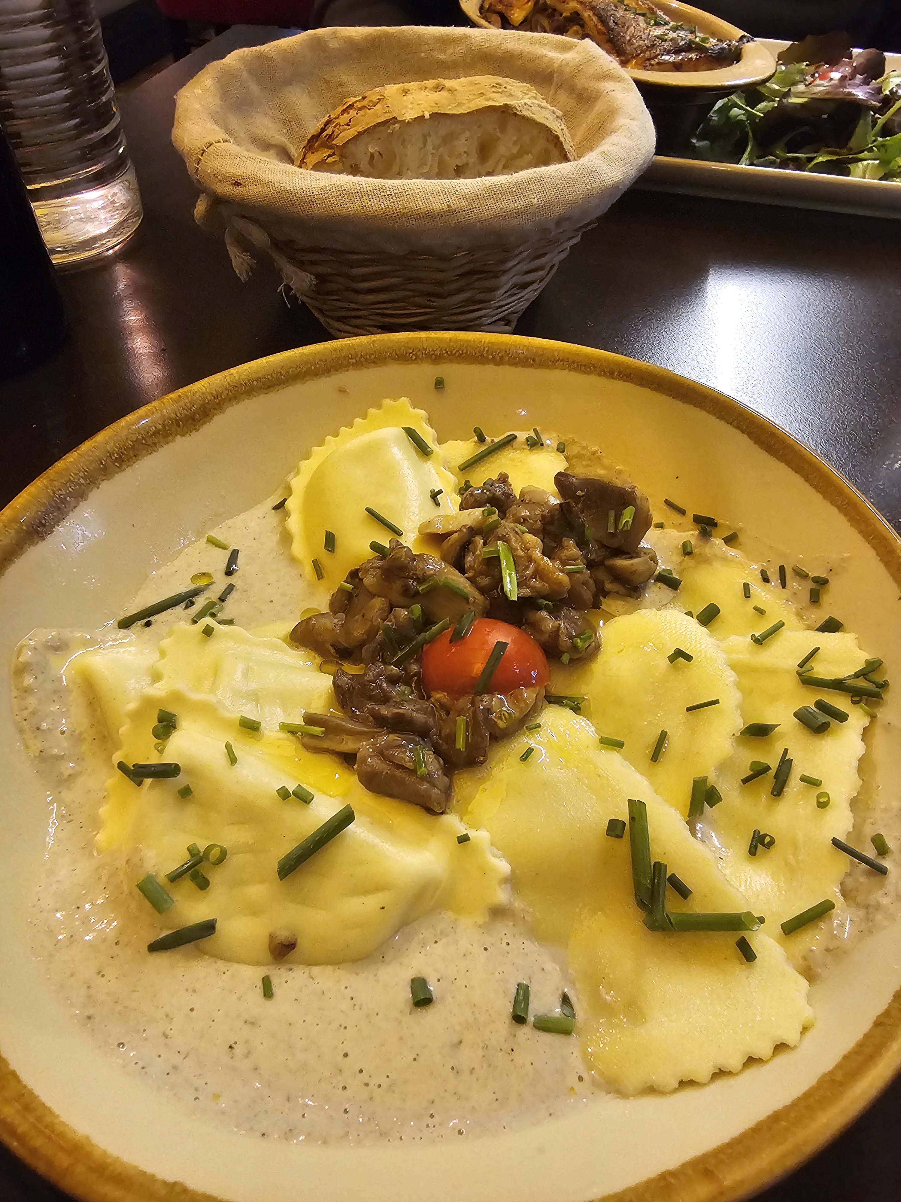 Beaucoup moins bien que dans mes souvenirs. Si vous avez très faim ne prenez pas les raviolis farcies à la truffe où alors commandez en deux!!! Cela dit elles sont très bonne mais rapport qualité prix c'est très moyen. Les Burgers sont très moyen aussi et les frites bonnes mais pareil pas assez nombreuses. Nous étions 3 nous avons eu le droit à 2 morceaux de pain à ce partager. Enfin bref gros mangeurs s'abstenir !!