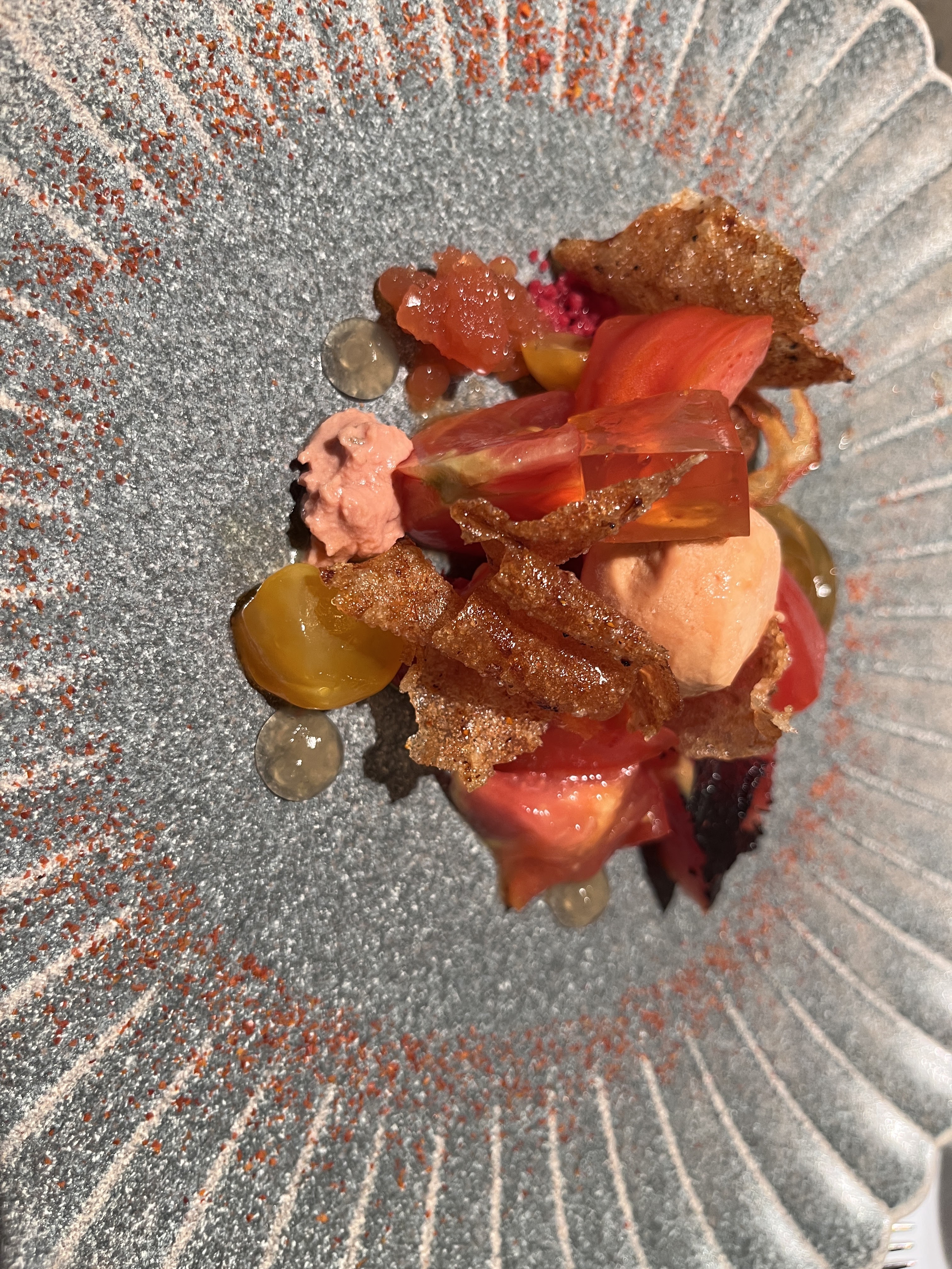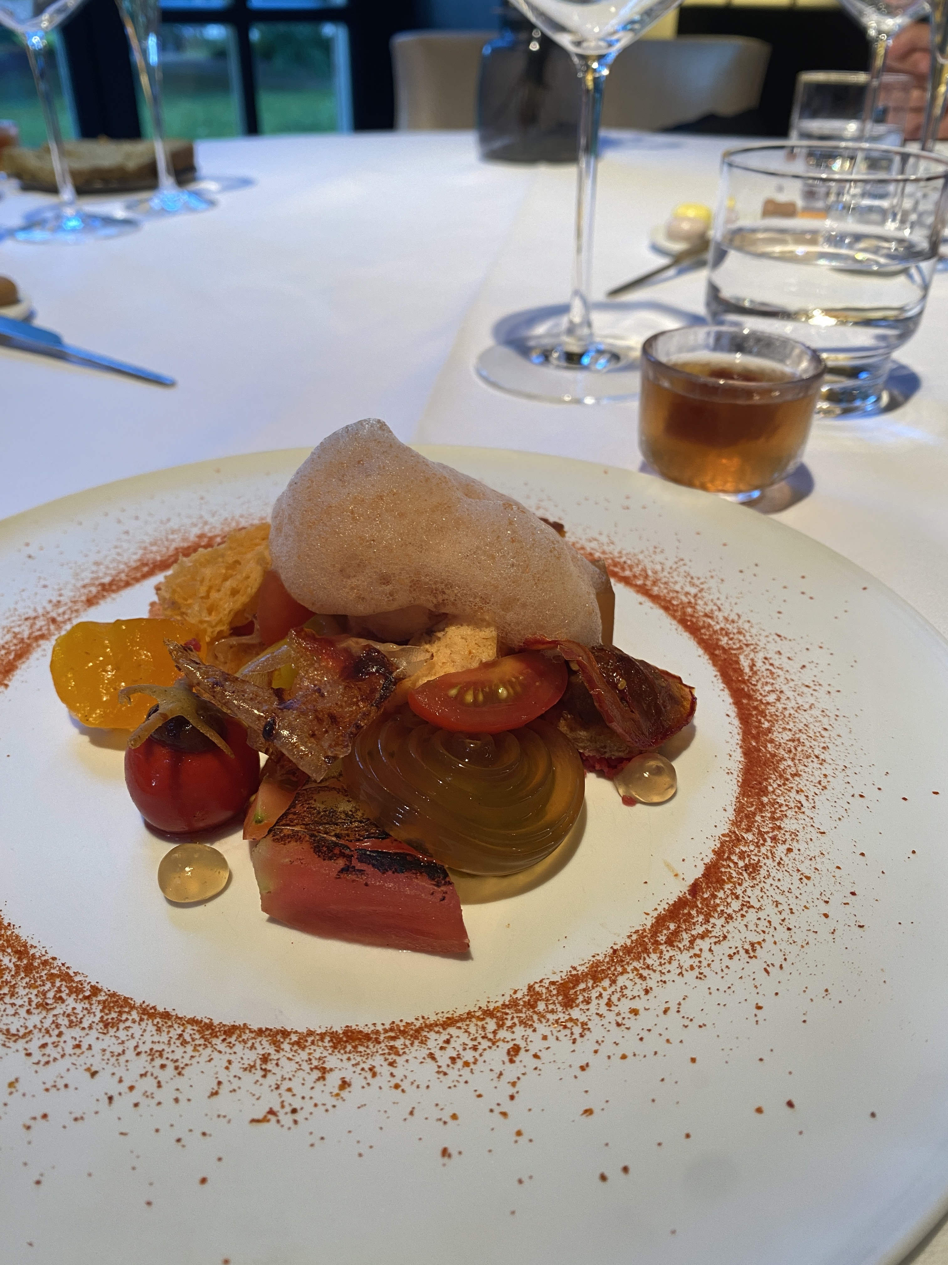 Vraiment délicieux du début à la fin Le plat signature autour de la tomate est exceptionnel. Les vins excellents et généreusement servis. C’est un très bon moment à renouveler en terrasse cette fois en s’y prenant bien plus tôt puisque la terrasse est réservée plus de 3 mois à l’avance