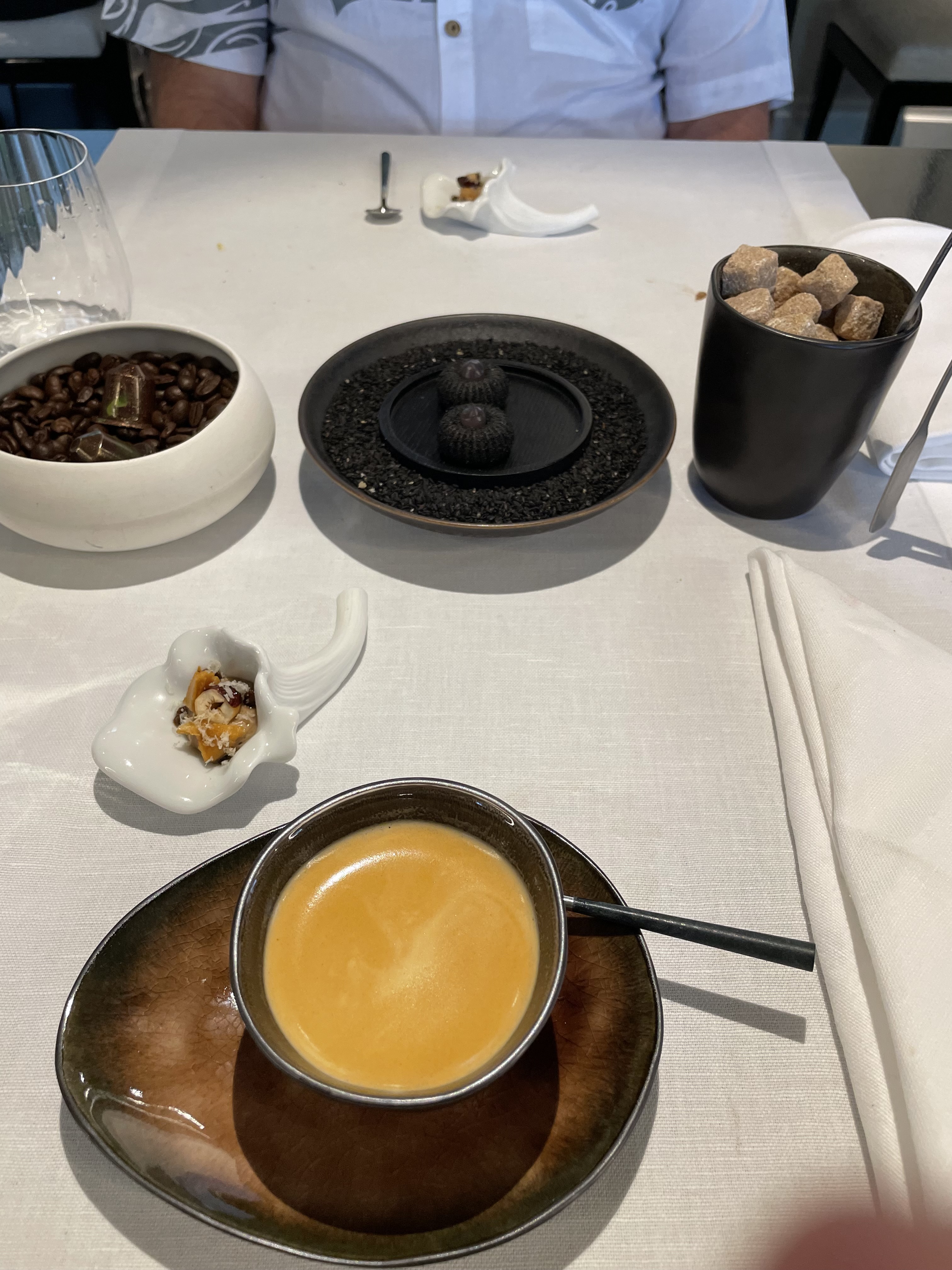 Nous avons choisi le menu 6 services, juste parfait 👍 2 petites remarques qui me concernent particulièrement Je suis gros mangeur de pain 🥺et il fallait réclamer régulièrement, surtout que leurs pains sont très bons 😁 Et le café n'était pas exceptionnel Sinon bonne expérience pour cet étoilé.