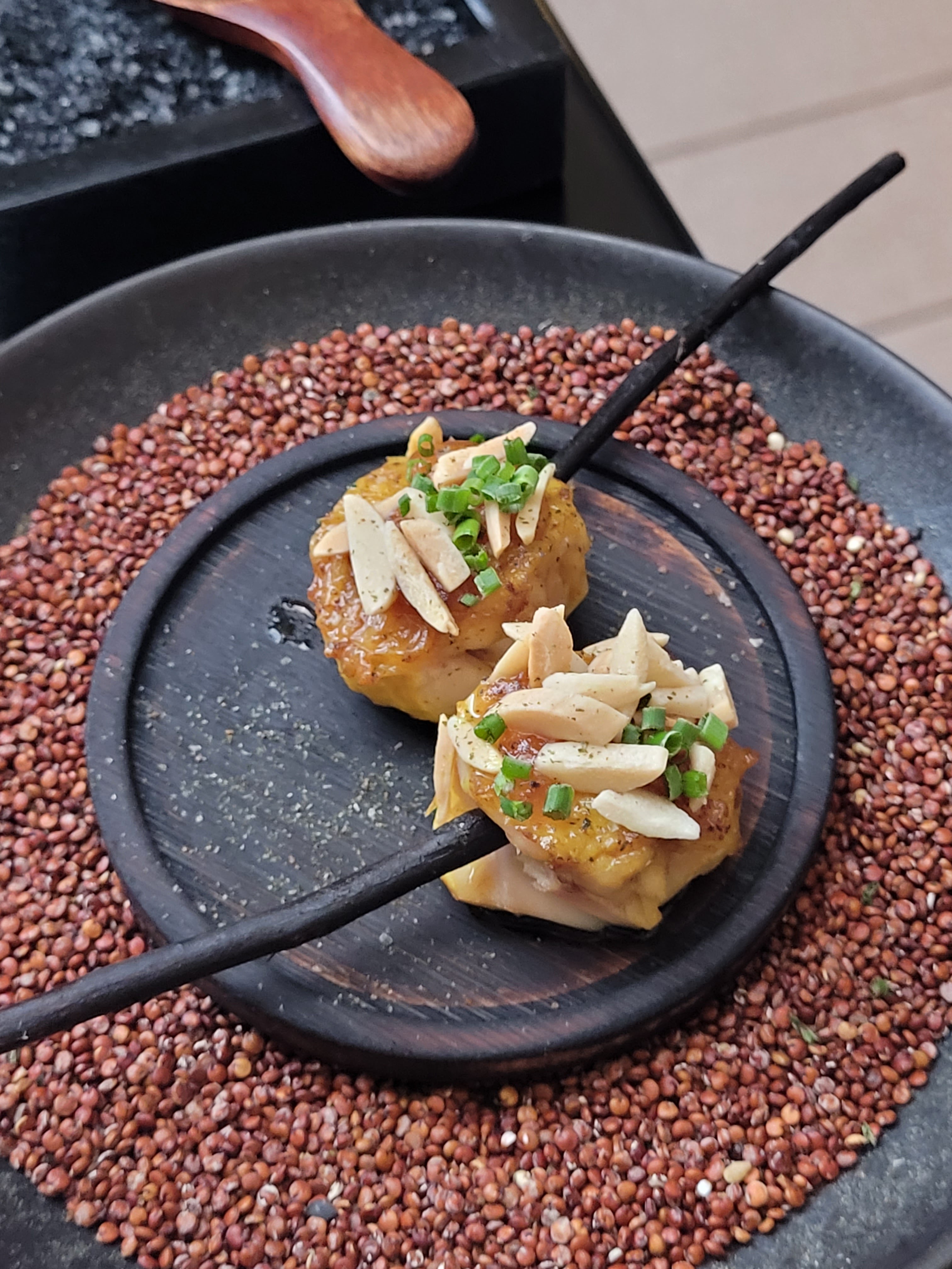 Menu dégustation 6 plats avec accord de vin , cuisine fusion française avec une touche Japonaise : un régal et un voyage culinaire qui vaut le détour. Probablement le meilleur magret de canard que j’ai mangé.