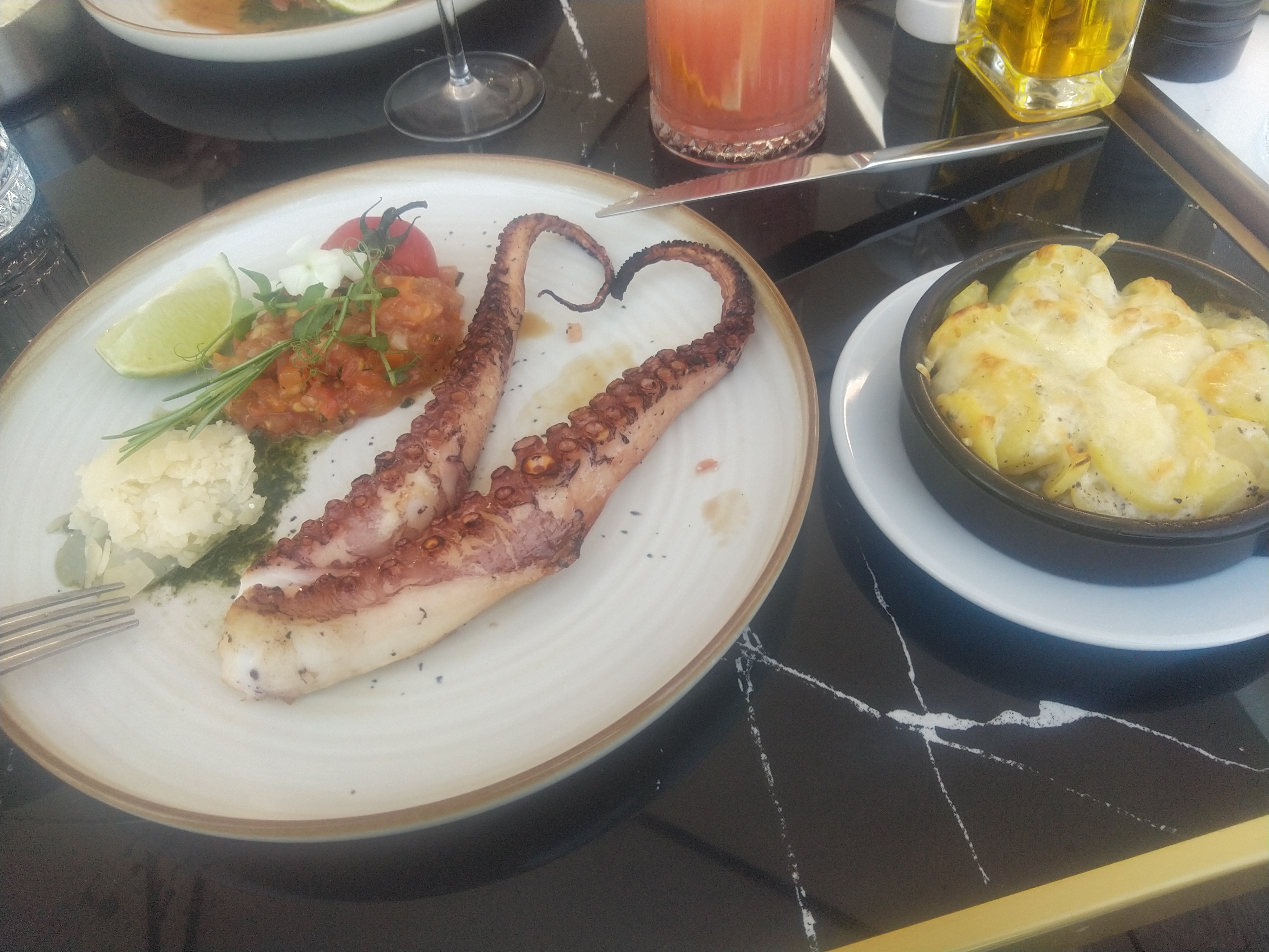 Très bonne adresse ! Plats généreux, service au top et c'est très bon. Accompagnement plat principal au choix dont une purée à la truffe, une tuerie. 3 belles tentacules pour le poulpe grillé. Pour conclure un excellent rapport qualité-prix.