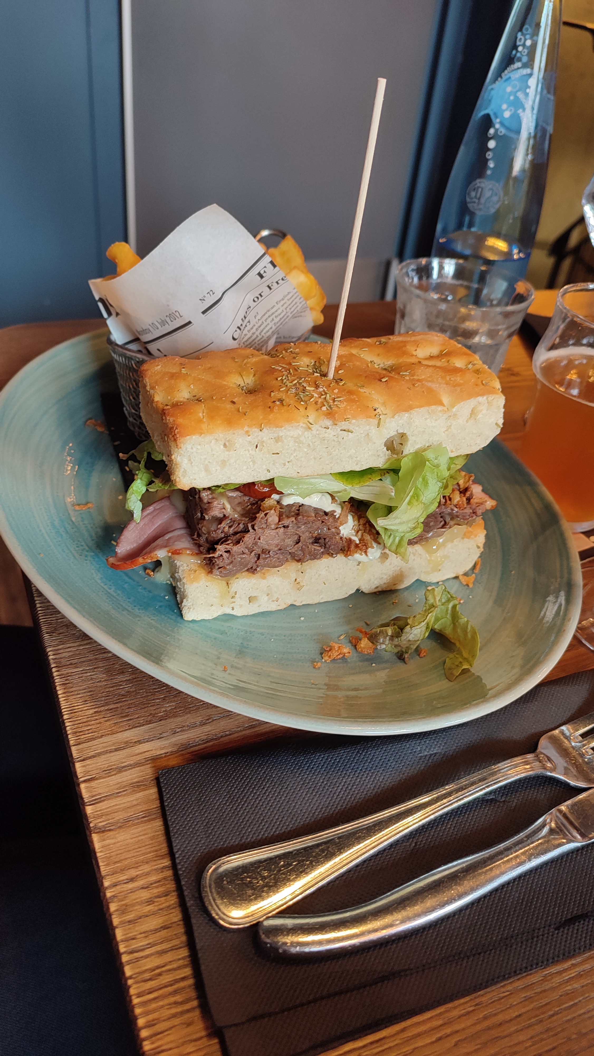 J'ai apprécié ce restaurant qui est plutôt bien placé. Je vous conseille de réserver un peu à l'avance. J'ai mangé à 19 heures. Le hamburger était très bon, l' effiloché de bœuf était bien cuit et le pain bien doré. Il y a des toilettes.
