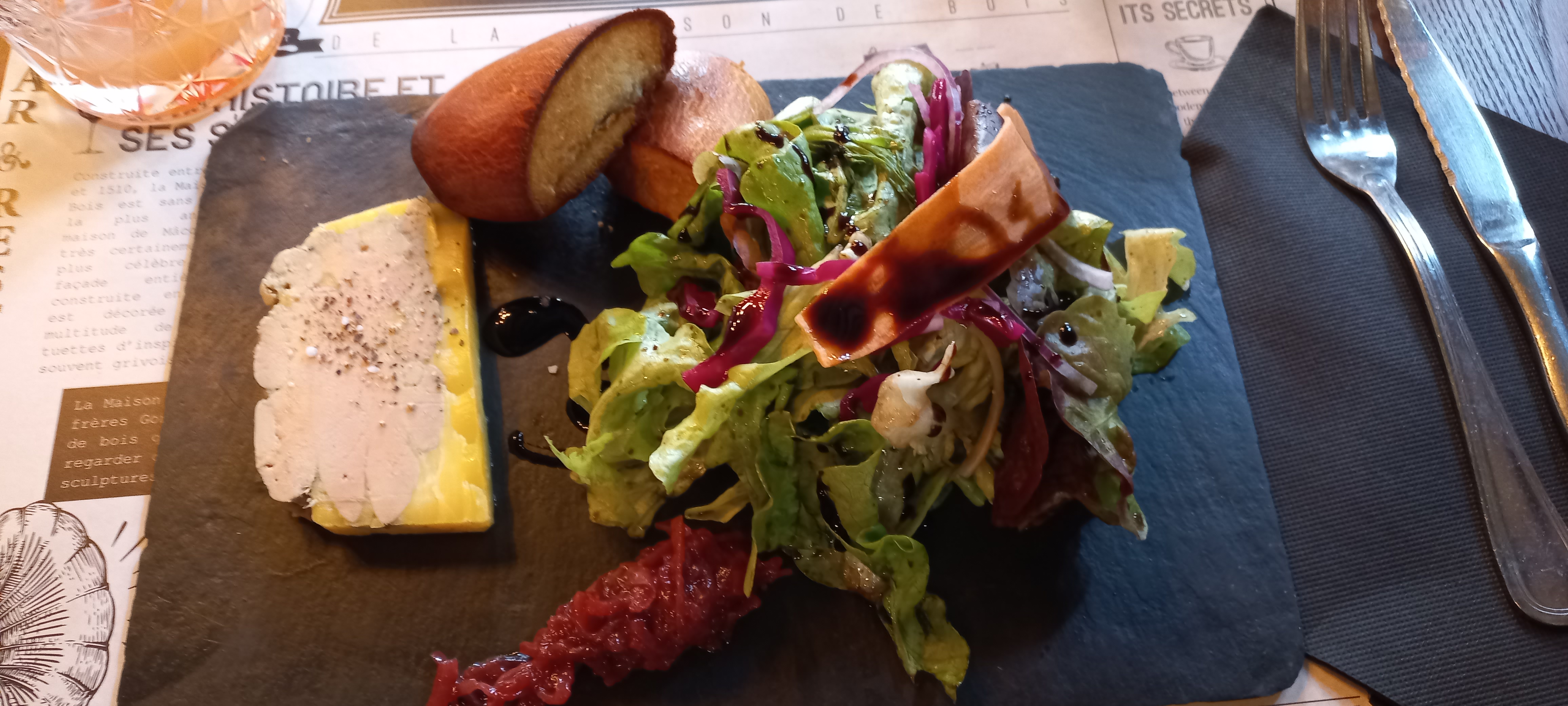 Je m'y suis arrêté juste pour boire une pinte et déguster une gaufre. Difficile de tout juger sur un arrêt éclair. Très jolis cadre dans l'une des plus anciennes maisons de Mâcon.