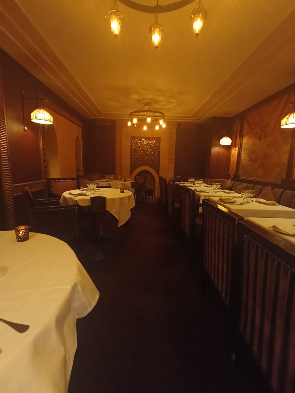 J’y suis allé pour la première fois par recommandation de mon père qui y allait il y a 30 ans car c’était soit disant à l’époque une institution en matière de couscous ! Et bien tout ça à bien changé ! Le décor est joli mais on mange en silence, pas de petite musique orientale en arrière fond. Le couscous était fade et les viandes sont très bas de gamme ! En fin de repas nous étions entourés d’hommes seuls accompagnés d’escortes , ce qui rendait l’ambiance particulièrement cheap. La cerise sur le gâteau reste le thé gourmand en dessert, un thé tiède avec un loukoum, une brique sèche et un sablé..! Nous étions bien loin des pâtisseries orientales que je connais ! J’ai dû quémander le serveur pour qu’il nous rajoute un makroud qui au final était sec et sans goût. Bref, j’y suis allé une fois mais pas deux !