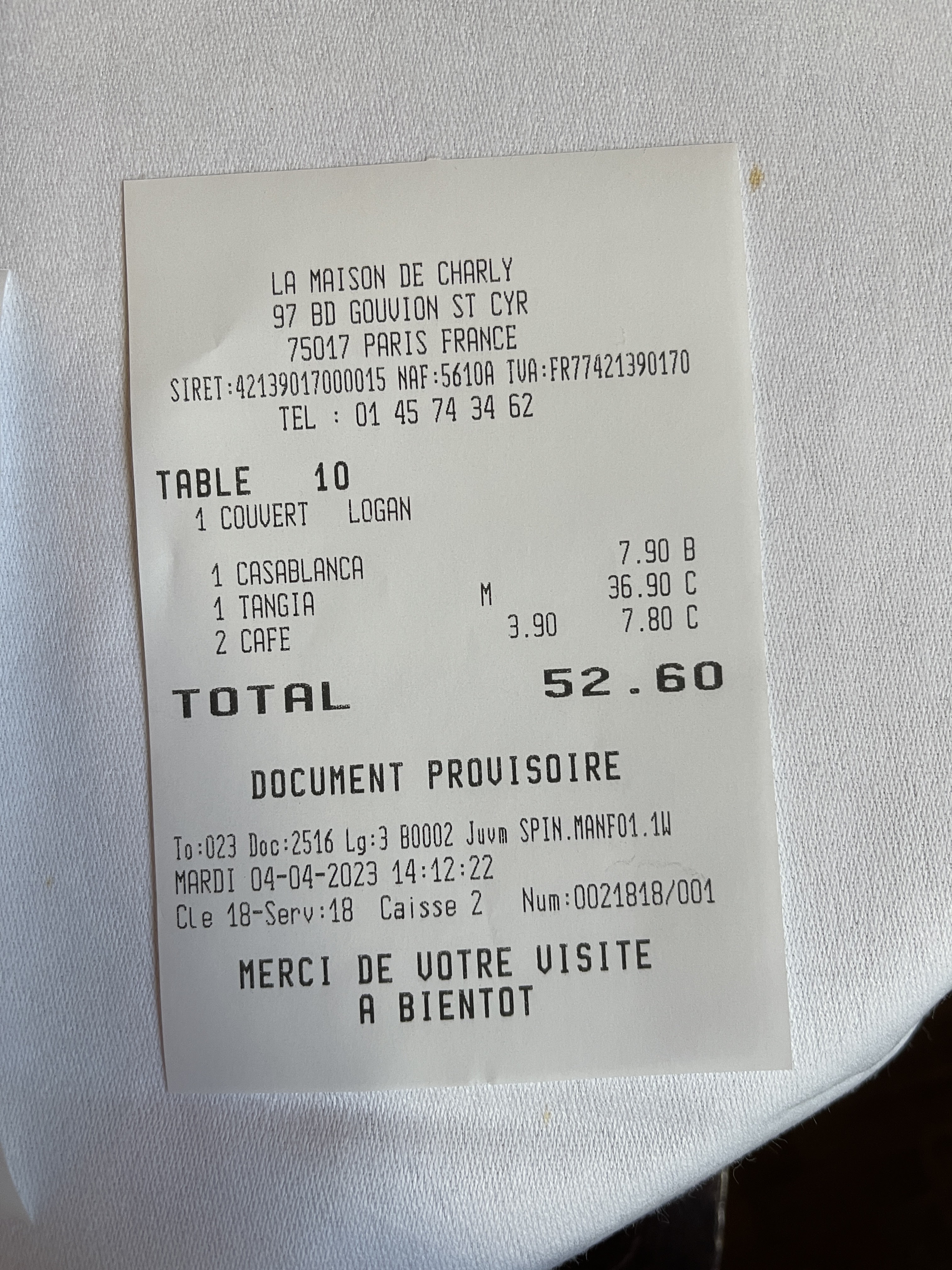 Ce restaurant est un éclat du MAROC tombé sur la capitale. Tout était bon, goûtu, fait avec une grande attention. Si vous cherchez un endroit où bien manger et en avoir pour votre argent c'est chez CHARLY. Nous avons pris 2 menus entrée+ plat, une bouteille de vin rouge marocain et un thé à la menthe gourmand pour 98€. Le rapport qualité / prix / quantité est hallucinant. Dans un cadre soigné et raffiné. Prévoyez d'y aller avec un faim et de loup et l'optique de plus manger pendant 24h après ça!! L'équipe, le service, la réception et même en cuisine, des personnes chaleureuses et aimables. C'est une expérience à faire et vous pouvez y aller les yeux fermés. Si je devais chipoter je trouve que les betteraves à l'entrée sont en trop mais c'est vraiment pour dire quelque chose.