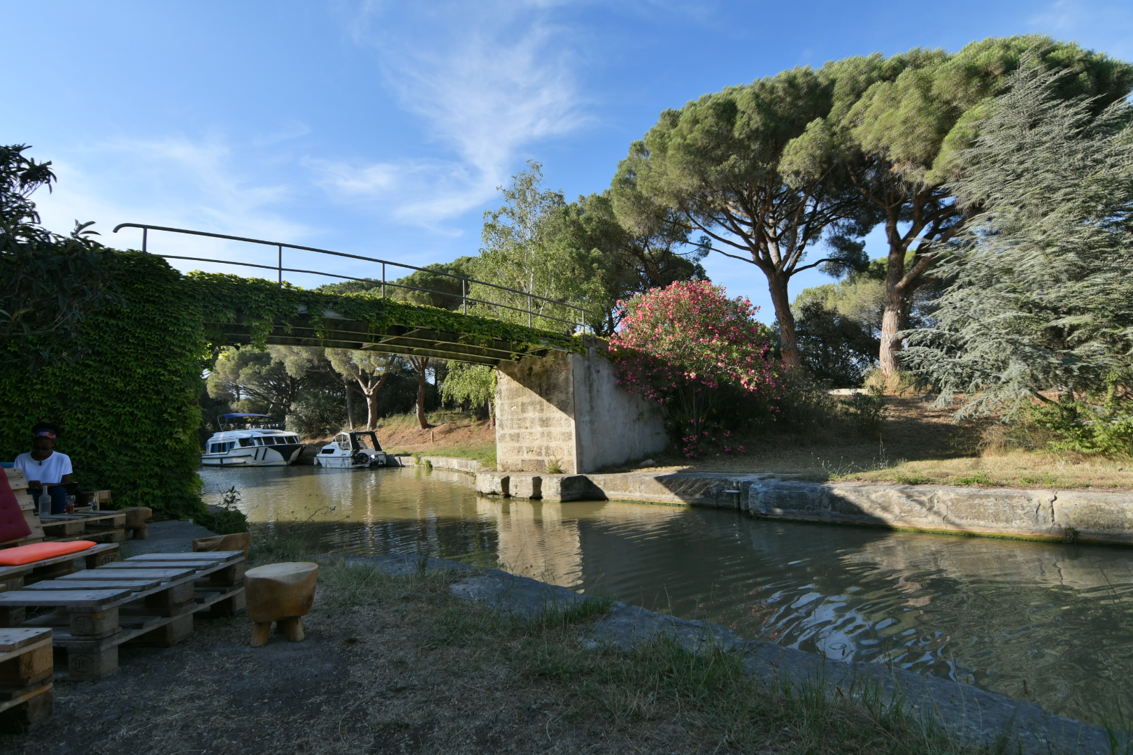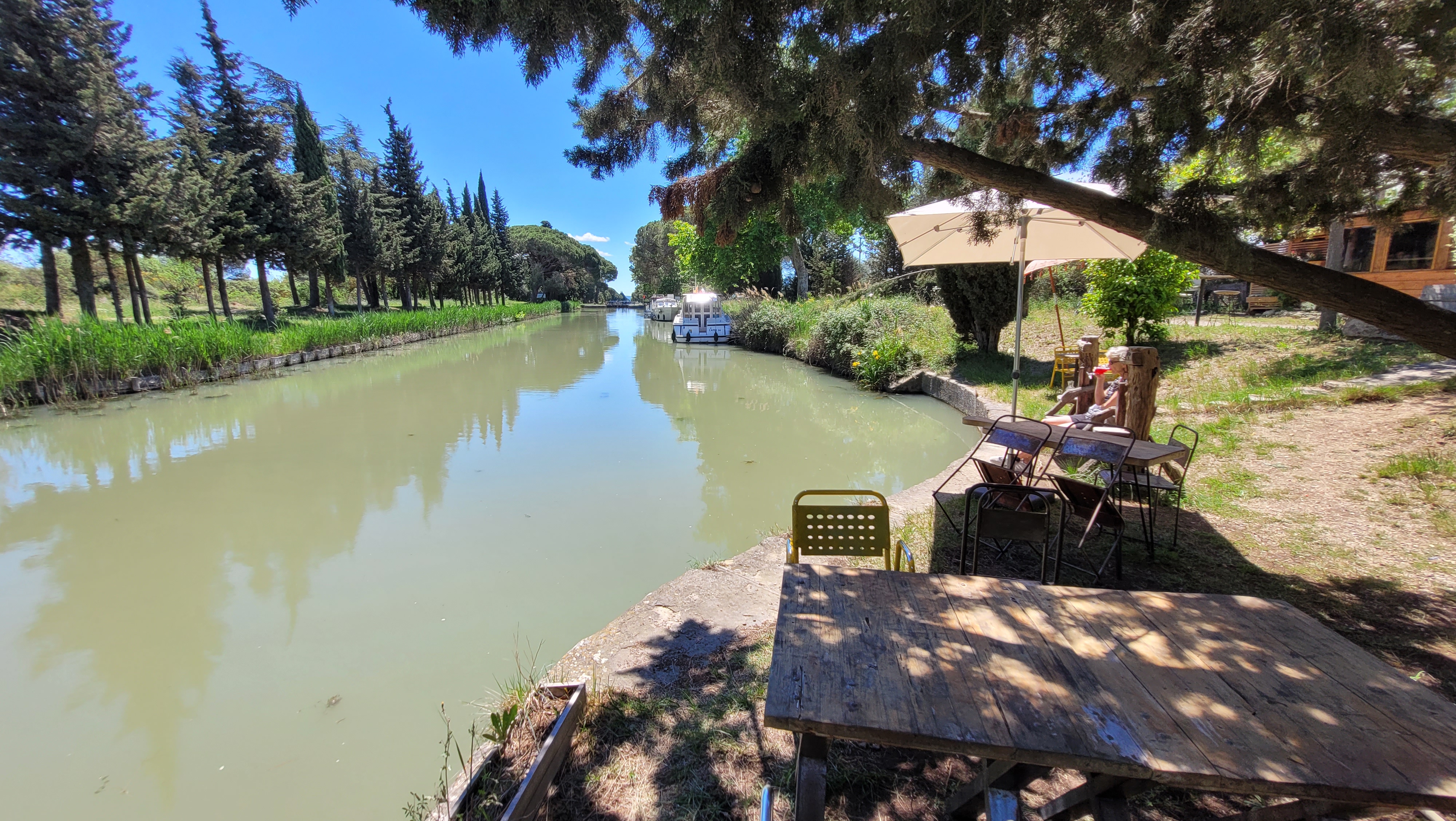 Une petite halte très paisible pendant notre ballade à vélo au bord du canal. Un petit moment des plus agréable qui se situe aux portes de Narbonne