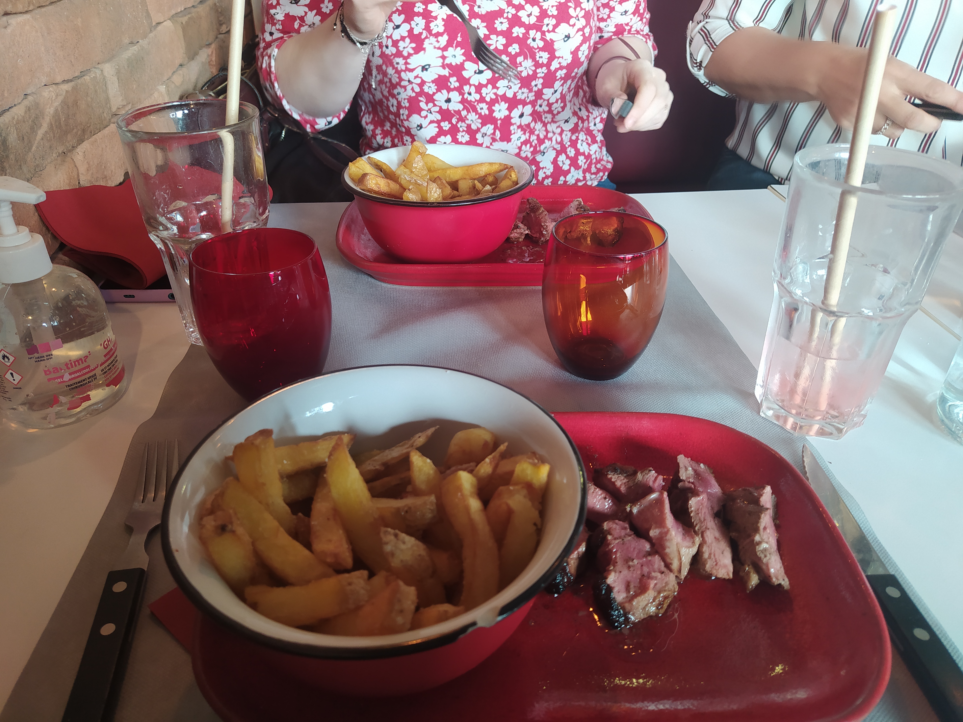 Bonne viande..brochette a évité. 23.50pour 100g et 2 cuillères de gratin..un peu léger. Entrecôte correct .cocktail 10 € et zéro. Le tous 100 € ..déconseillé
