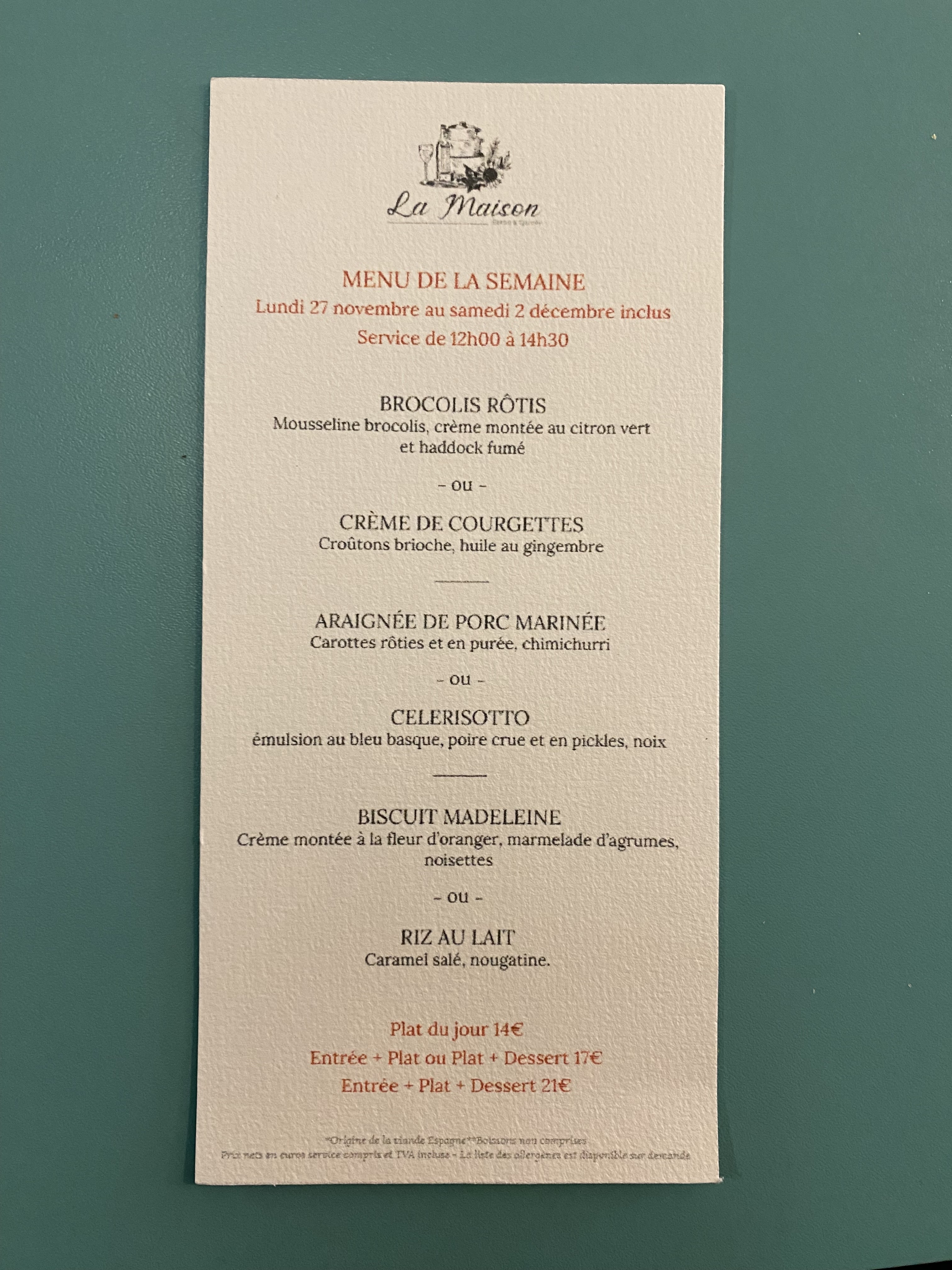 Un excellent déjeuner à la Maison ! Une cuisine subtile créative et joyeuse, de belles assiettes, un service top, j’ai adoré la déco ! Bravo !!! La salle était complète et les convives avaient heureux d’être là, des grandes tablées et des amoureux, toutes générations confondues. Belle réussite