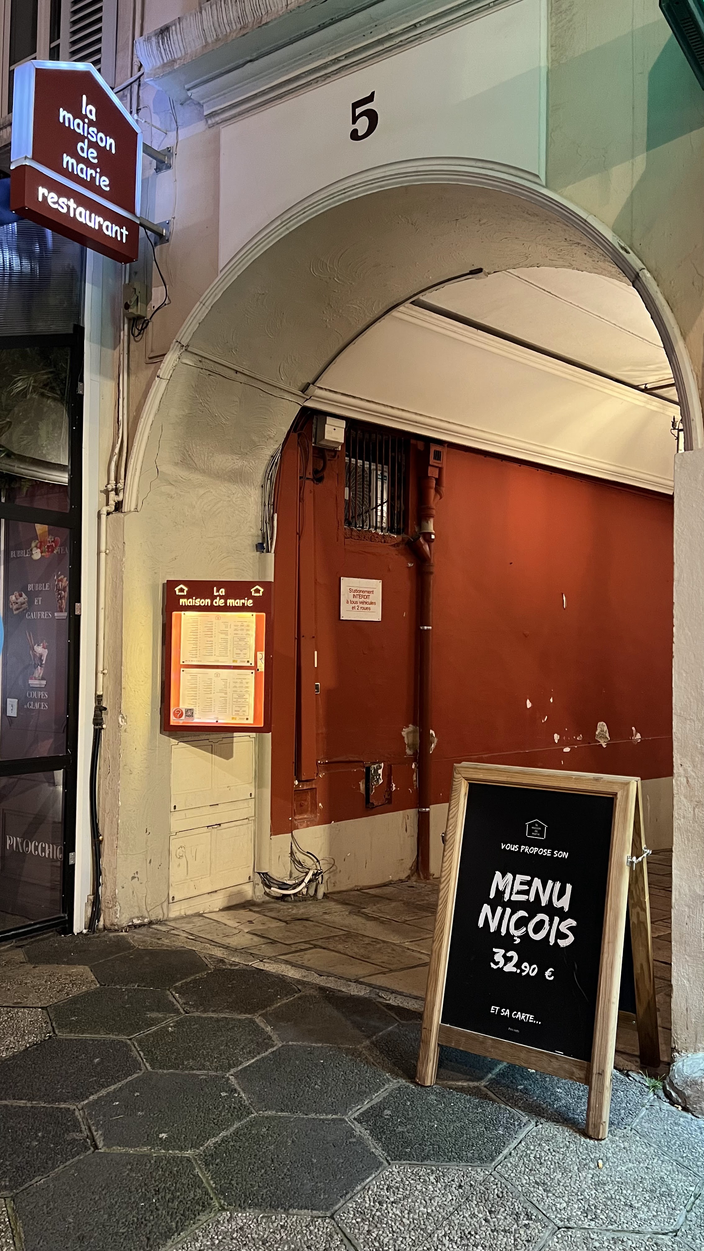 Excellent restaurant, bon service ! Parfait pour un dîner romantique ! Absolument un bon endroit pour goûter la cuisine locale (Daube Nicoise, Pissaladiére) Le menu niçois est très bon, vaut vraiment 28,9€ ! Notre serveur était super sympa. Hautement recommandé!