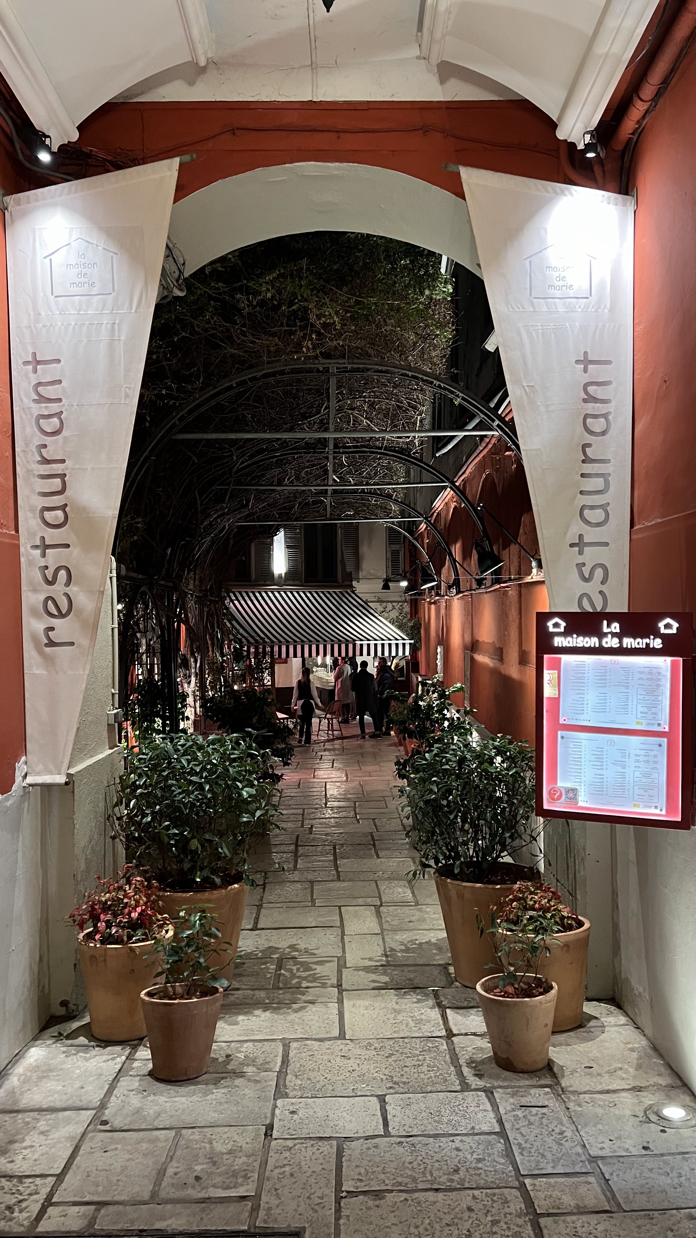 C'est un véritable joyau caché au cœur de Nice, en France ! Cela donne l’ambiance d’un véritable bistro français authentique. L'entrée est magnifique et romantique. Nous y sommes allés dîner et avons été impressionnés par le menu riche et local. La nourriture était absolument délicieuse et savoureuse, des salades au plat principal en passant par les desserts. Le vin était également bien sélectionné. Notre serveur était sympathique et amusant. Je recommande fortement de visiter cet endroit pour un bon dîner romantique.