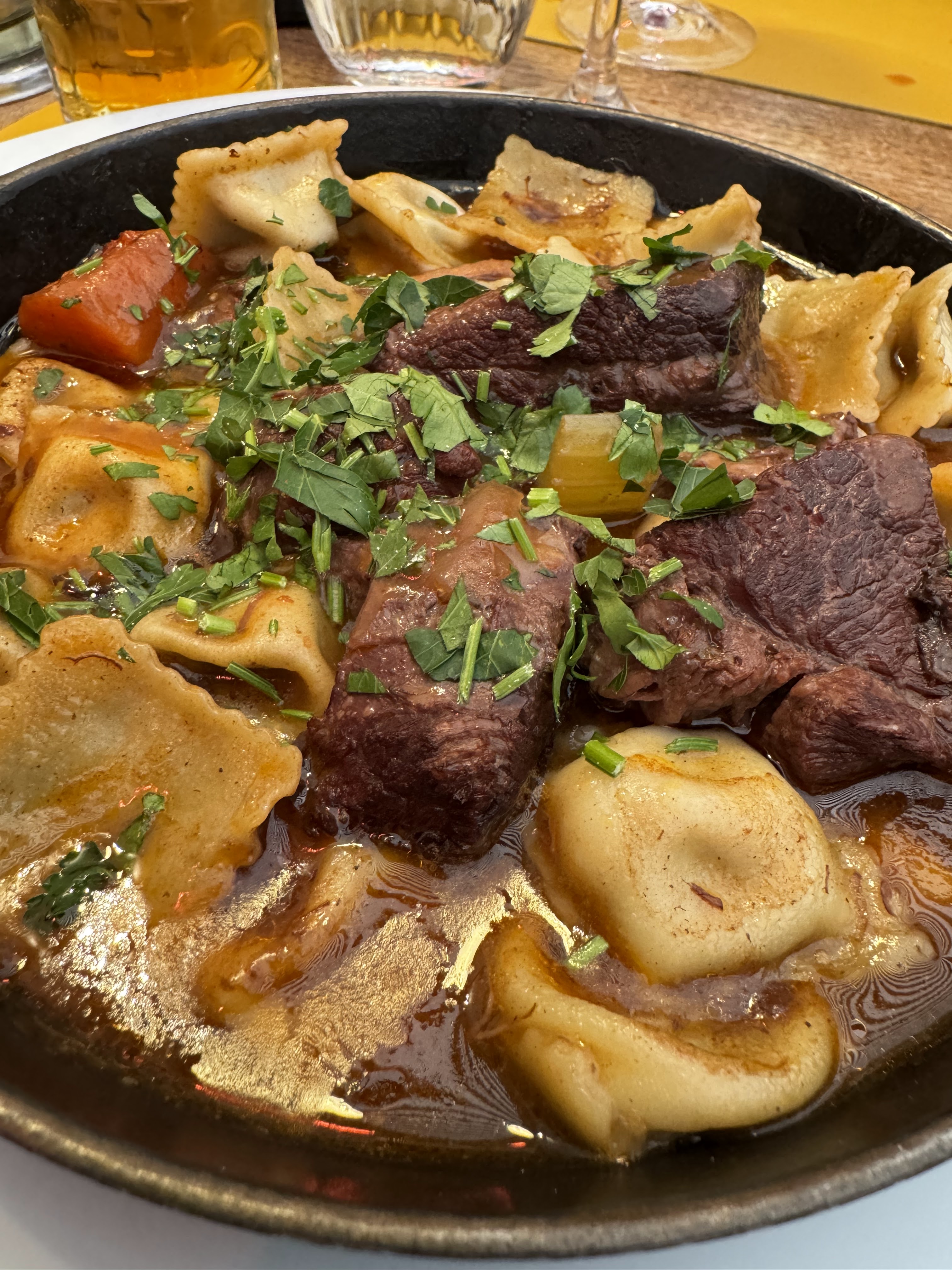 La nourriture à cet endroit est délicieuse ! Les pâtes au lapin, le plat de pâtes au thon et le bœuf étaient tous extraordinaires. Le bœuf était cuit exactement comme demandé et était incroyablement tendre. Nous avons également commandé des gnocchis et c'était incroyable ! Tout le monde a nettoyé ses assiettes et même la recommandation de vins était fantastique. Le service aurait pu être meilleur. Ils ont oublié de nous apporter de l'eau après que nous l'ayons demandé et ne sont jamais revenus une seule fois pendant le repas pour voir si nous avions besoin de quelque chose (plus de vin, d'eau, etc.). Et il était difficile d’attirer l’attention de qui que ce soit, même pour obtenir la facture. Mais la nourriture, l'emplacement et l'ambiance compensaient vraiment le service médiocre. Je vous recommande vivement de manger ici si vous voulez un excellent repas.