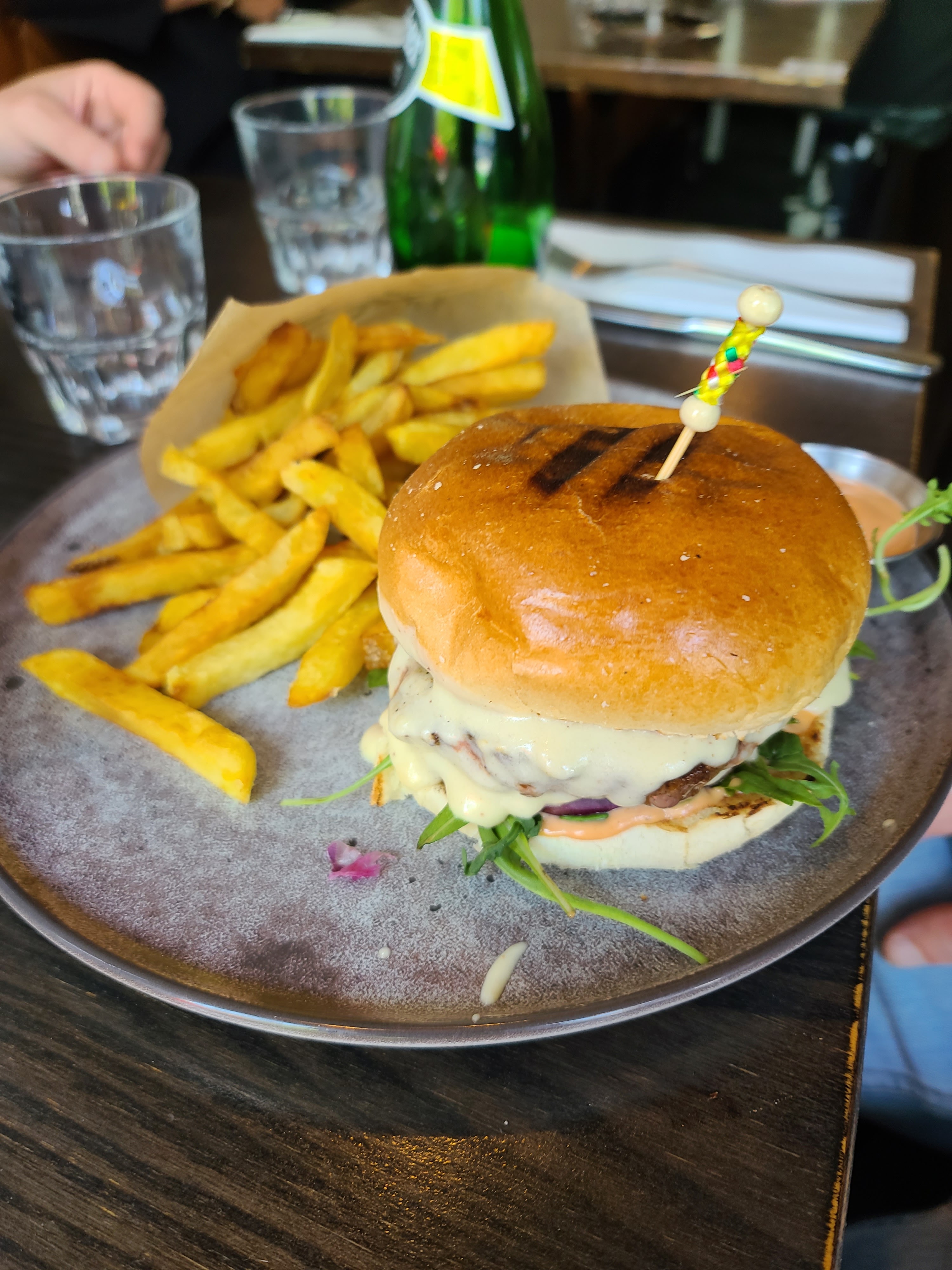 Très bon accueil, arrivés vers la fin de service du midi nous avons très bien mangé. Le burger et le confit de canard étaient très bons, et une bonne note pour la touche de menthe dans la chantilly de la coupe aux fruits rouges en dessert qui a très bien clôturé le repas. Les prix sont corrects au regard de leur situation aux abords de la gare.