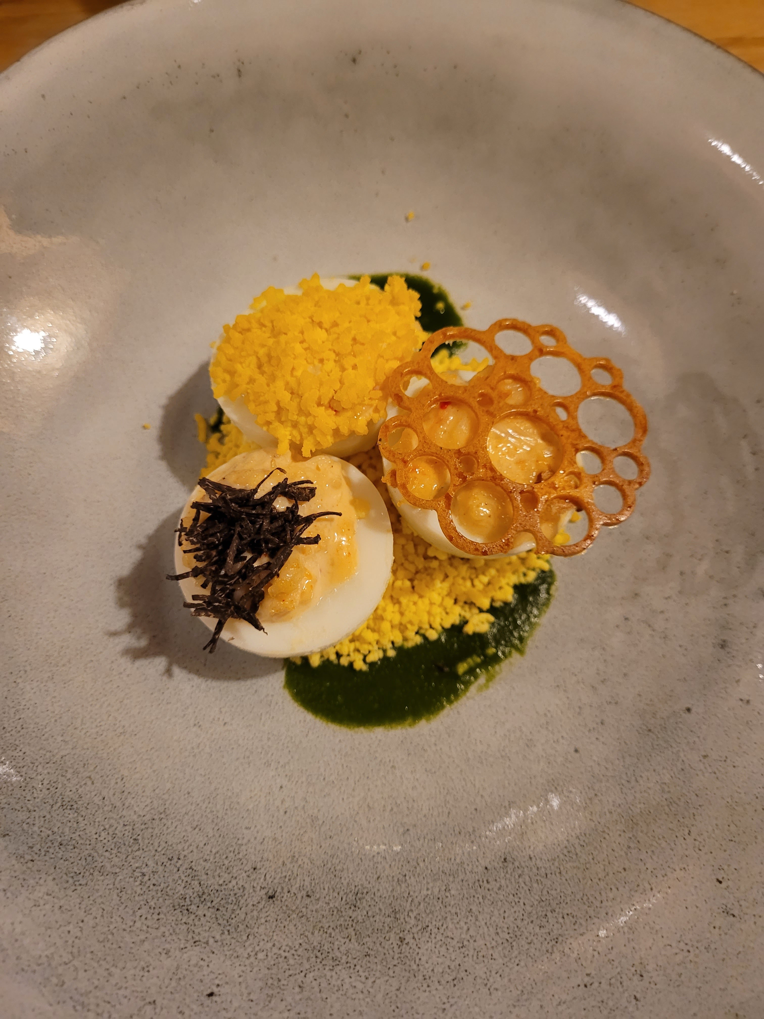 Repas exceptionnel à la hauteur de nos espérances, un voyage culinaire & visuel. Le service est aussi très sympathique et pro ! Ne manquait que le chef mais il faut bien qu’il se repose ! Déjà hâte de revenir pour tester d’autres plats en votre compagnie