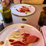 - Des plats avec beaucoup de raffinement dans l'alliance des saveurs, même si l'originalité et la finesse n'ont pas été à la même hauteur de l'entrée au dessert. Un plus particulier pour la cannette avec la feuille de cerisier et le vinaigre de cacao. La viande était très tendre et le grillé très croustillant, avec une sauce très équilibrée et savoureuse. La pissaladière (en condiment ?) très agréable. - L'accueil a été particulièrement attentif en amont de notre visite, par mail et par téléphone, mais à notre arrivée, la prise en charge, plus pragmatique, nous a un peu surpris, avec une attente pour nous sur le pas de porte, sans personne pour nous accueillir avant plusieurs minutes, malgré notre arrivée très ponctuelle. - Dommage aussi de ne pas avoir profité de la lumière du jour, nous étions placés à la cave, à une place un peu dans le passage qui plus est, nous aurions aimé en être avisés en amont : il faisait un temps magnifique et, le midi, même si par forte chaleur on peut apprécier de ne pas subir l'ardeur du soleil, cela reste un peu décevant d'être éclairés artificiellement. Nous comprenons que votre restaurant a des contraintes liées au nombre de convives, mais peut-être prévenir qu'il y a un sous sol, pour éviter la déception en découvrant cette 2ème salle ? - Nous avons choisi le menu découverte / 4 plats, dans ce cadre - nous n'avions sans doute pas assez prêté attention à la catégorie des plats qui seraient servis - nous aurions préféré avoir un aperçu supplémentaire de votre expertise culinaire, à la place de l'option fromage. Mais nous comprenons que, peut-être, la clientèle puisse être attachée à la tradition. - L'attente nous a surpris aussi : le restaurant était plein et nous nous doutons qu'il faut que les choses se fassent, c'était manifestement un gros service. Mais en ayant pris l'option menu découverte et avec la rigueur d'un service sur rendez-vous au quart d'heure près - disposition que nous comprenons tout à fait - nous pensions que tout serait plus fluide (nous sommes arrivés pour midi et demi et repartis à 15h30, avec un démarrage un peu poussif et pas mal d'attente en 1ère partie de repas). - L'absence de carte des vins était un peu inconfortable, même si nous avons été très bien conseillés, mais avoir le choix sans visibilité, c'est un peu déstabilisant. Quoiqu'il en soit, les vins étaient très bons et l'alliance avec les plats, parfaite.