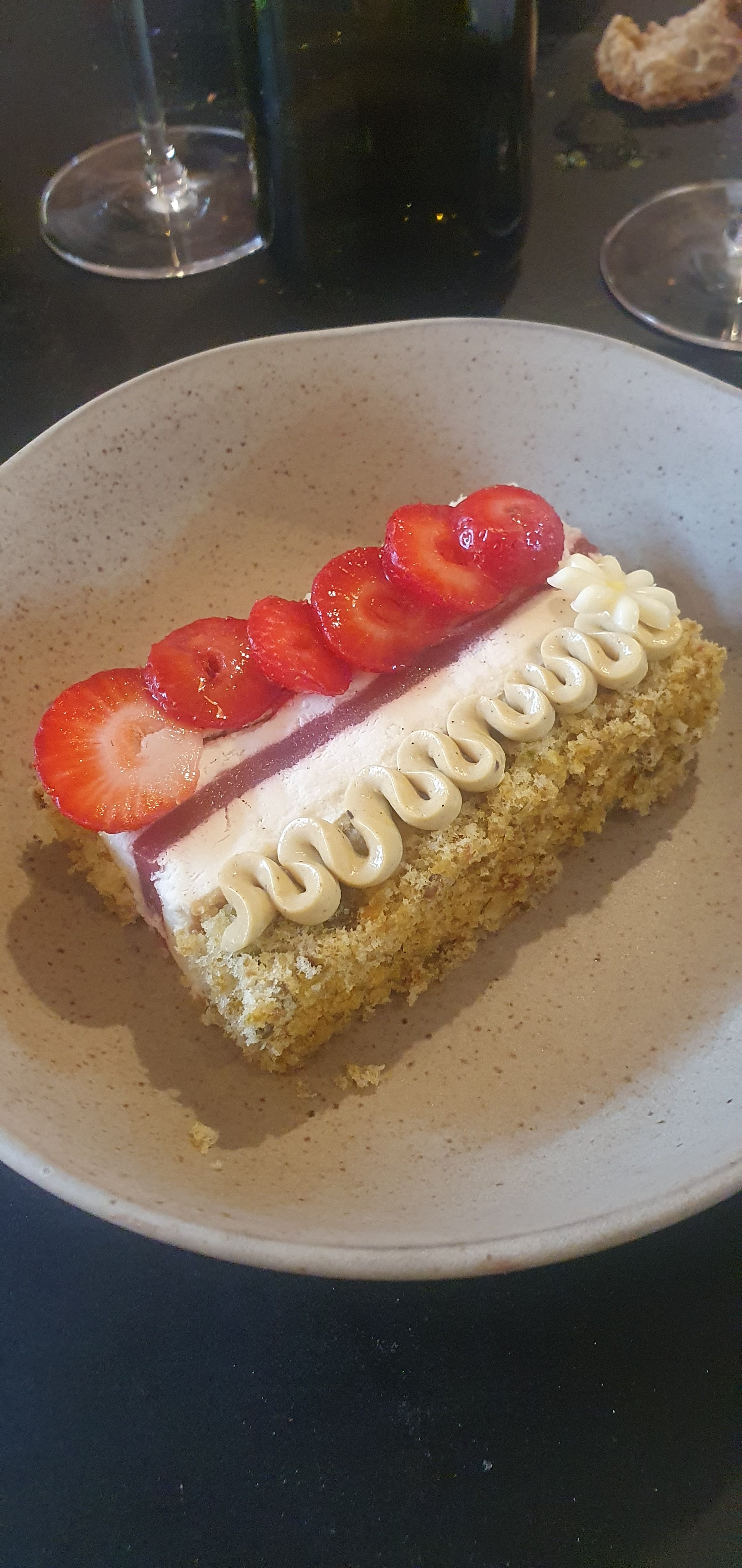 Je suis venue le 14 février 2024 pour la saint Valentin. Le menue saint Valentin était très bon et varié avec une diversité dans les goûts. J ai notamment bien apprécié la feuille de cerisier, si vous avez la recette je dirais pas non. Les plats du Menue comportant des ingrédients allergènes ont était modifié et le plats est resté de qualité. Pour la partie fromage la confiture bretonne à la passion était très bonne et comme je sais que vous diversifiez les produits, je vous conseille la confiture d'ail noir qui est intéressante avec les fromages. D autant plus que vous avez un fabricant d ail noir biterrois tout près de chez vous #ads (french black garlic) qui à était récompensé au concours Hérault gourmand. Pour résumer le repas c est très bien passé nous avons pas vue le temps filé. Je vous remercie encore pour la modification du plat et du repas 😁