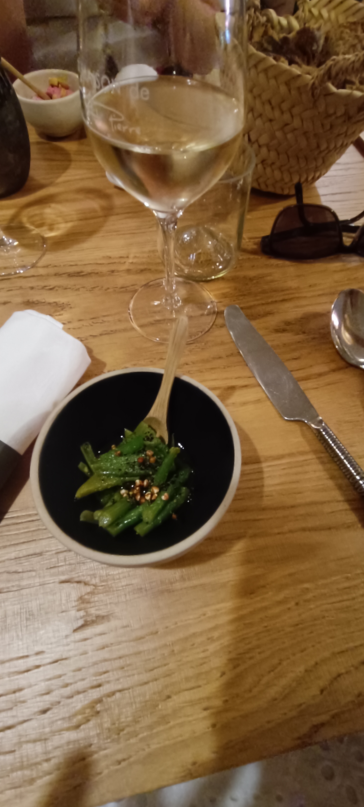 On avait de grosses attentes et au final, déçus… Plats sans relief, manque d’assaisonnement, goûts peu marqués. Rien de mauvais mais aucun « Waouw ». Carte des vins très réduite, 100% Languedoc, ce qui n’est pas un mal, mais ça manque de choix. 14 références en blanc, pas beaucoup plus en rouge et absence d’un sommelier en salle. Service expéditif, malgré nos demandes de temporiser ! On n’a pas fini les bulles d’apéro que l’entrée est déjà là. On n’a pas fini le blanc de l’entrée que le plat arrive sans que le rouge ne soit à table. On a essayé de l’expliquer au chef lors de son passage, qui n’était pas plus intéressé que cela. Dommage. Bref, pas concluant et pas envie de retenter l’expérience. Il y a bien mieux dans le coin.