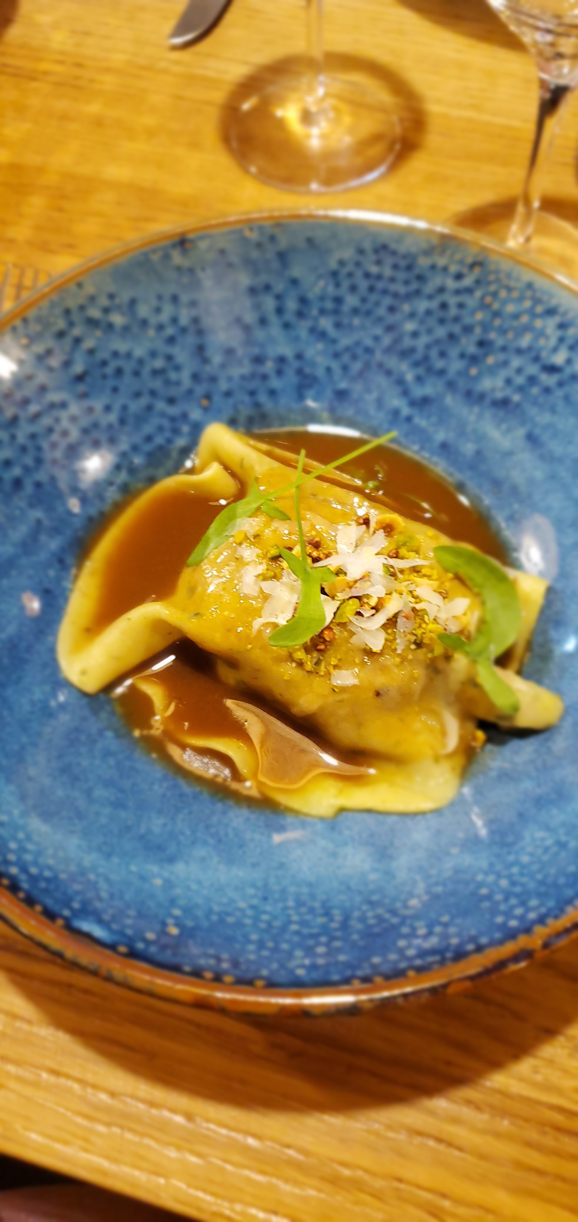 Pour la troisième fois. Bon accueil dans un cadre magnifique.Personnel très sympathique. A l'écoute des désirs du client. De bons conseils sur les vins pour un bon rapport qualité/prix . Mise en bouche délicieuse avec une belle découverte à l'apéritif gin/romarin. Par contre l'entrée n'est pas à la hauteur. Raviole de céleri trop épaisse. La crevette dans la farce n'était pas perceptible en bouche. Viande parfaite avec une sauce succulente. Dessert en apothéose.