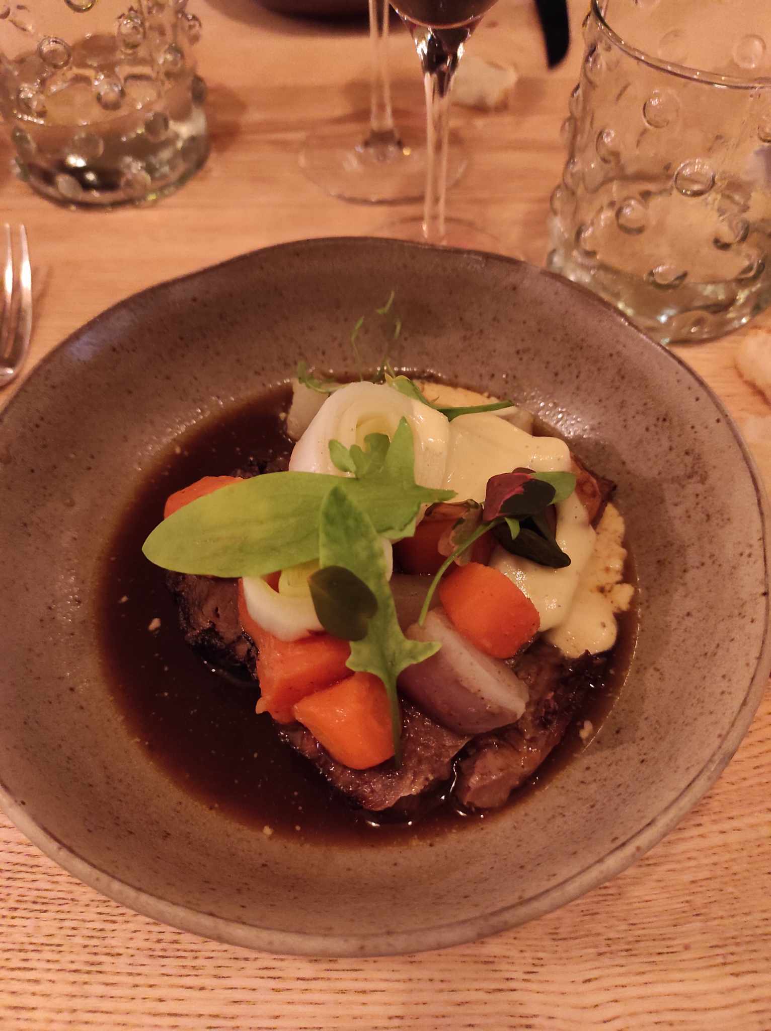 Nous avons passé une très agréable soirée. L'ambiance du lieu et le service sont conviviaux. Nous avons pris le menu en 6 temps. Tous les plats se sont enchaînés naturellement, tous très bons et diversifiés, juste dommage pour le plat de viande pas assez chaud. Nous reviendrons avec plaisir.