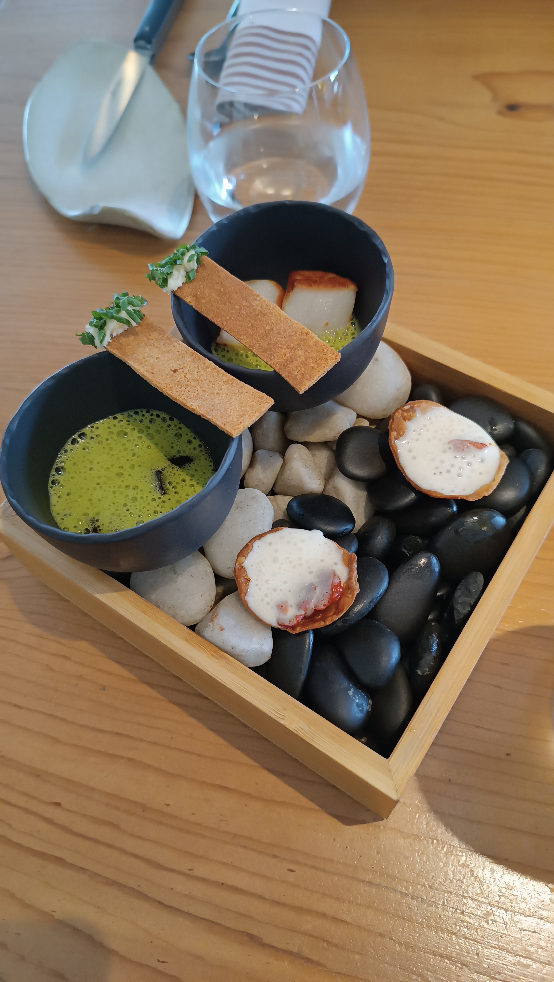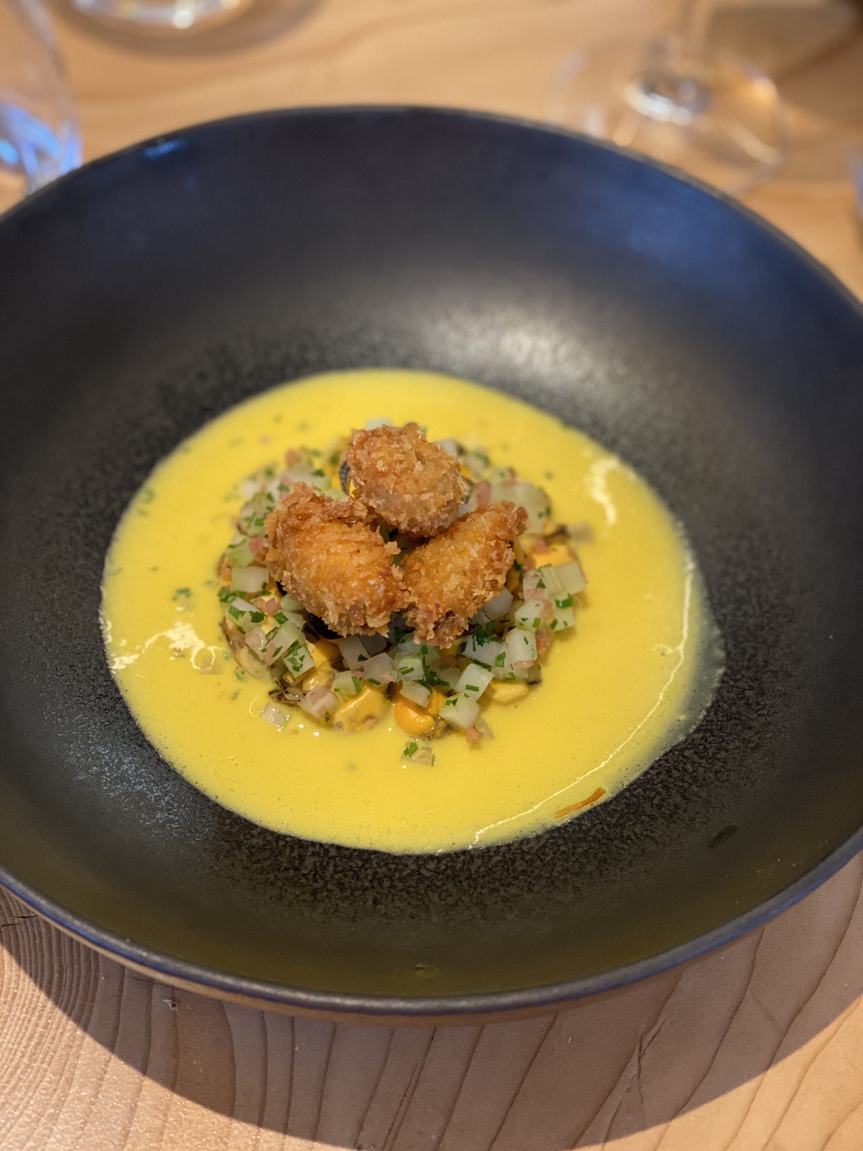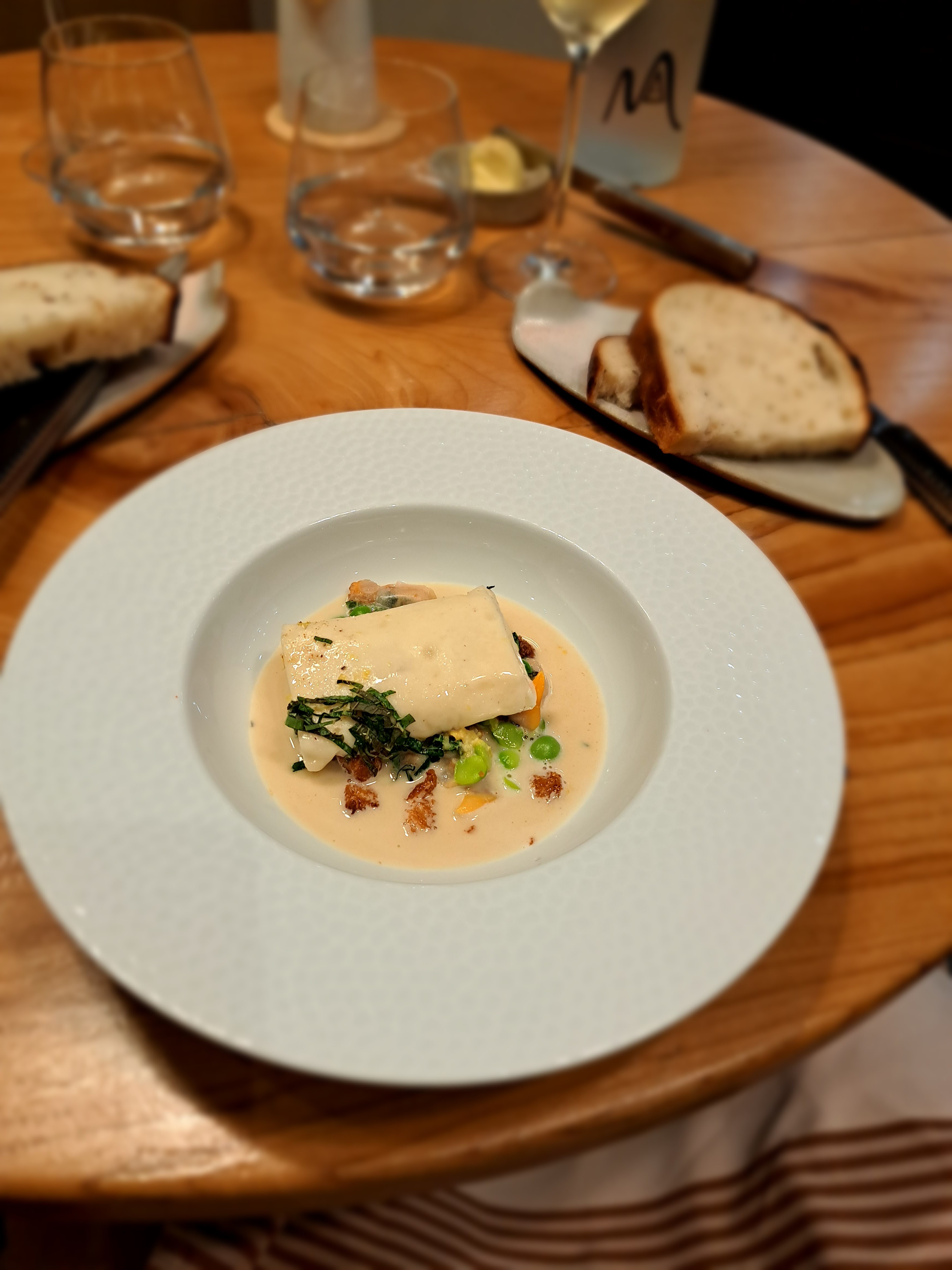 Restaurant nouvellement étoilé Excellent service Cadre sobre et agréable,jolie vaisselle Cuisine originale et savoureuse avec de bons produits locaux