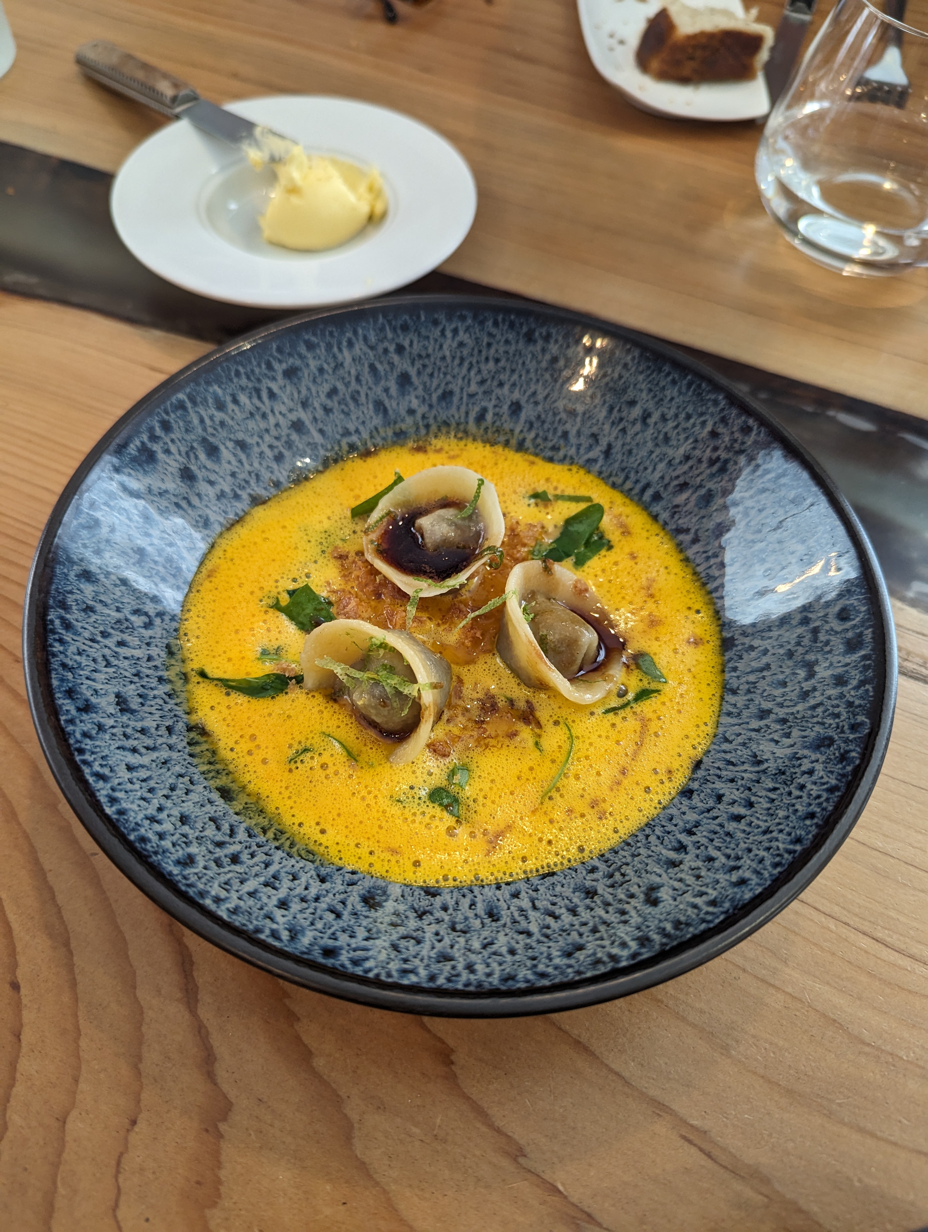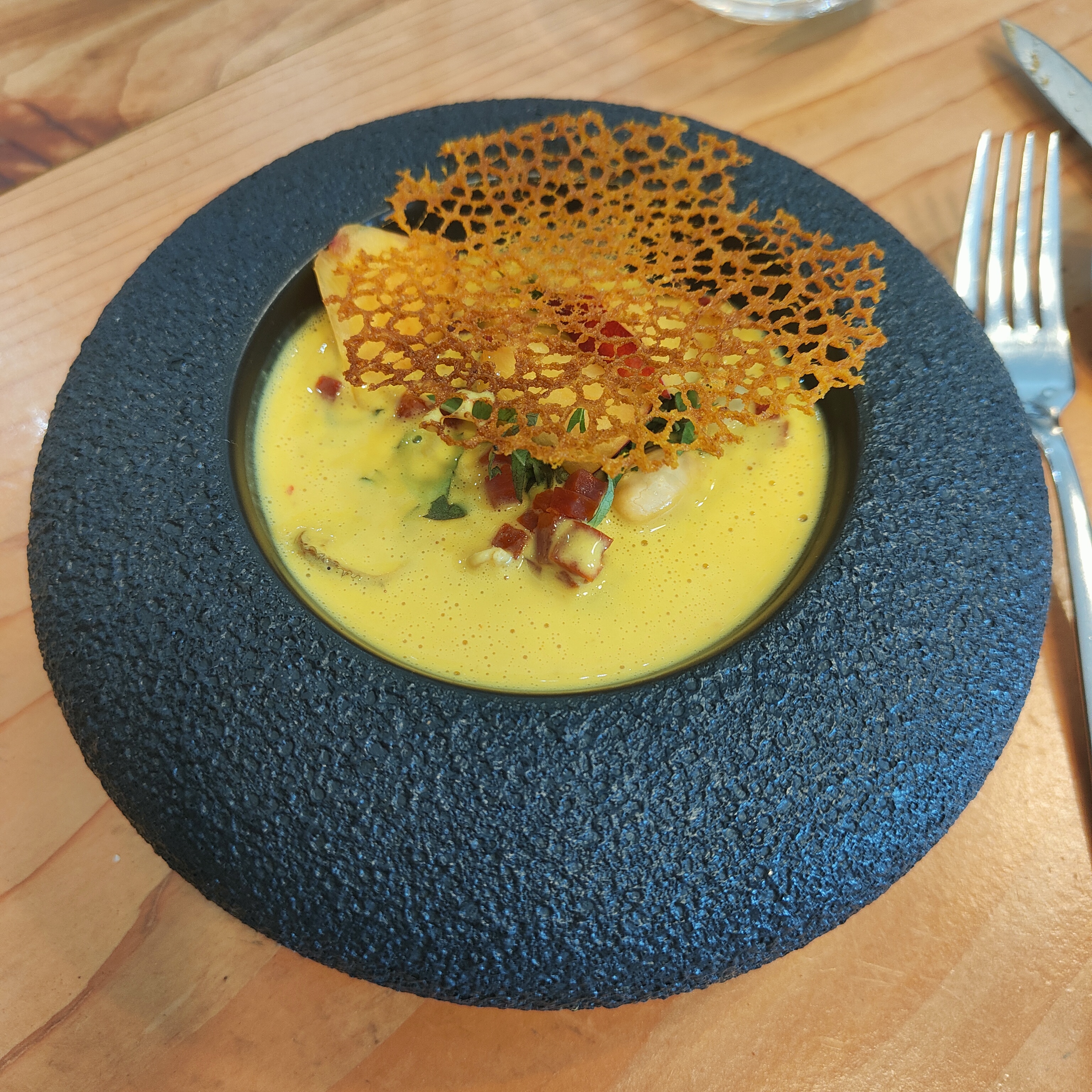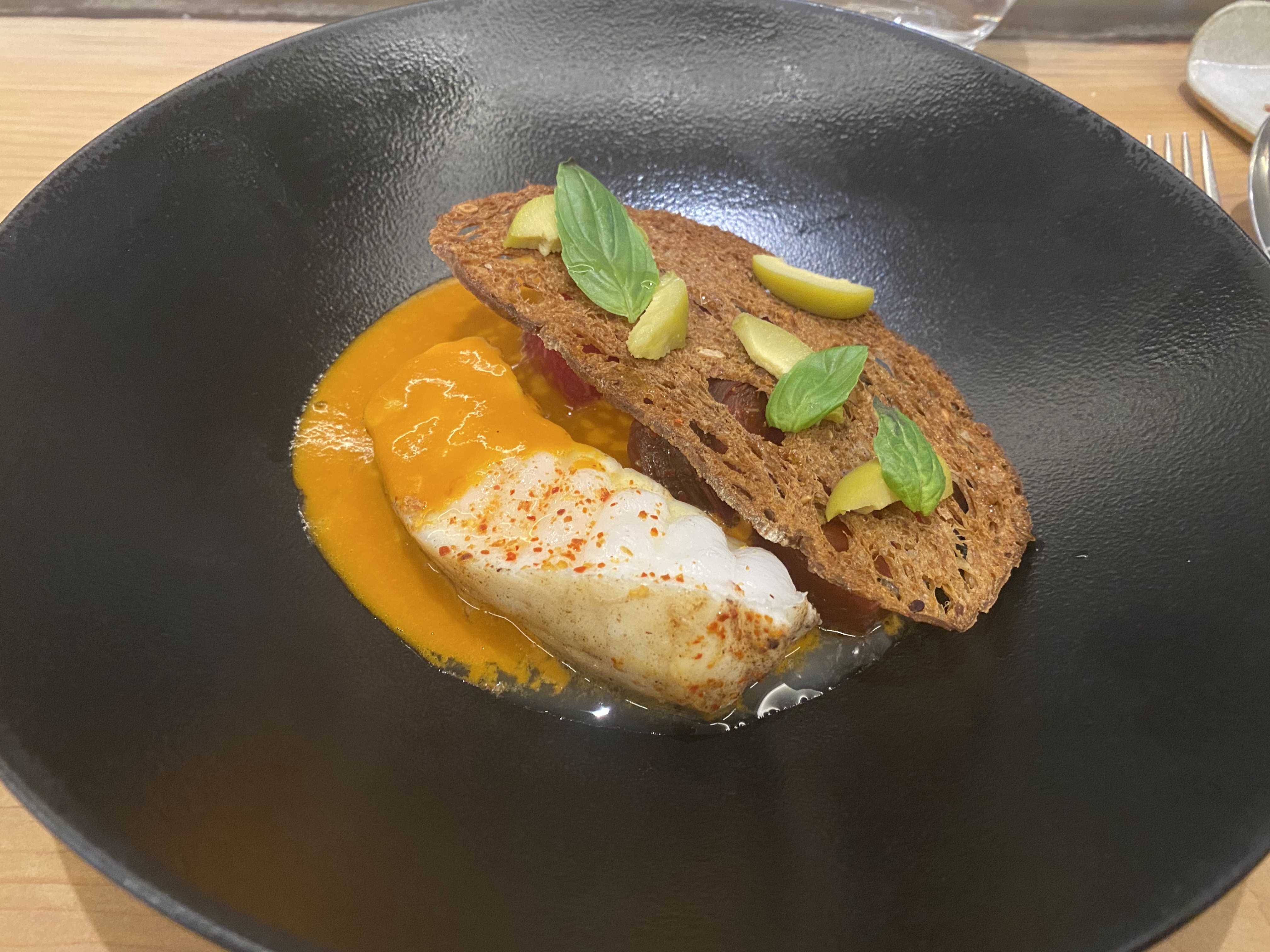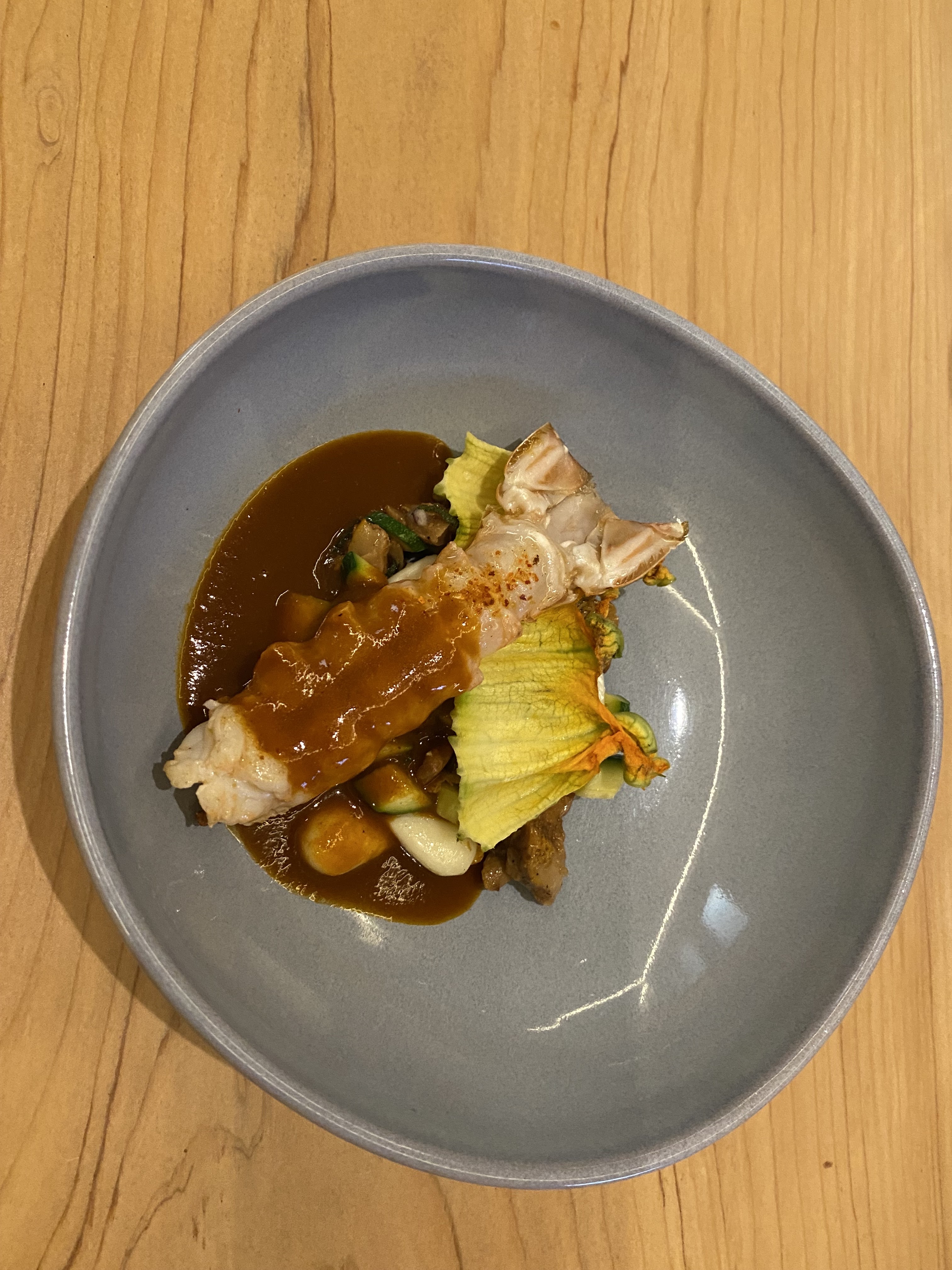 Restaurant nouvellement étoilé Excellent service Cadre sobre et agréable,jolie vaisselle Cuisine originale et savoureuse avec de bons produits locaux