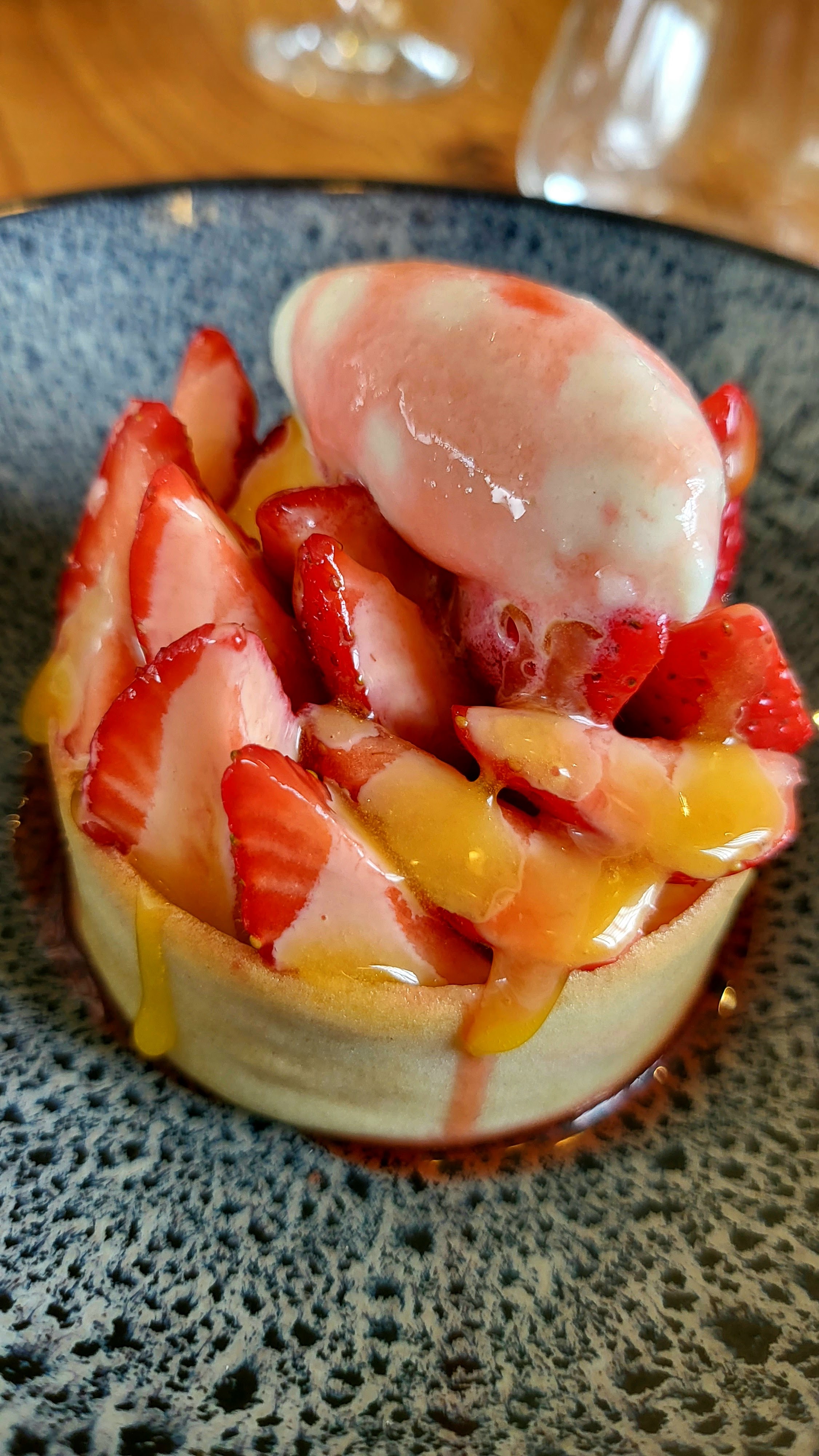Pour notre saint Valentin nous avons déguster, savourer, sublimer un merveilleux repas. Nous avions une formule découverte. Le vin était au verre ce qui fait que vous déguster votre repas accompagné du vin qui convient à chaque plat, après en avoir parlé avec le serveur qui vous propose l'accompagnement parmis sa cave. Ainsi que vous demander quels aliments ne vous conviennent pas et les allergies que l'on pourait avoir. Le service est parfait ainsi que l'acceuil. Bémol qui ne va pas durer, la salle va être entièrement refaite à neuf au mois de juin d'après les infos. Ceci afin d'unir la qualité et le cadre. Les produits sont cuisinés frais et proviennent de la localité. Uniquement sur réservation afin de favoriser la qualité plutôt que la quantité. Les saveurs gustatives de ce repas valent le détour. Voilà la phase final de notre repas, n'est pas merveilleux !