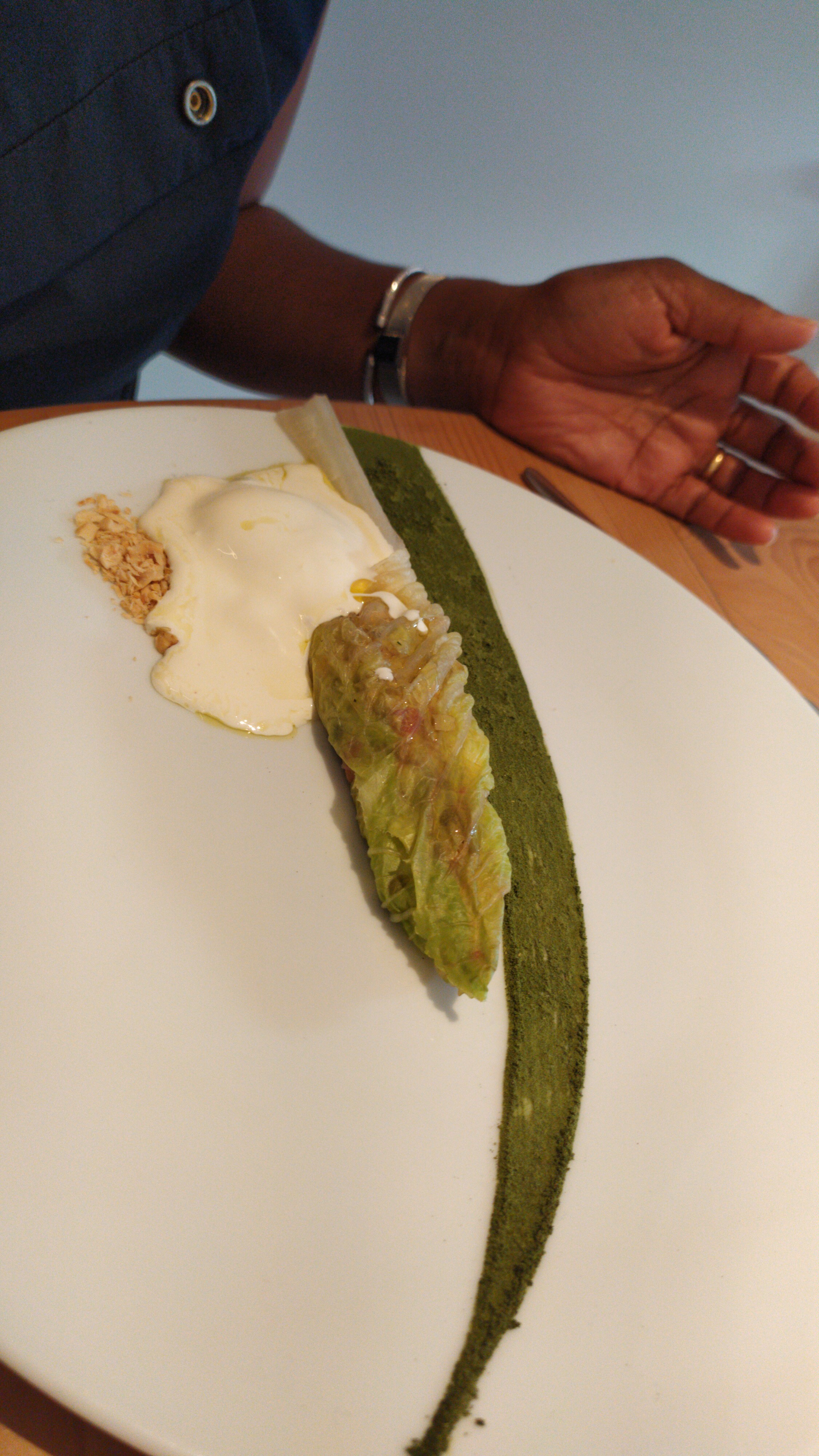 Cuisine originale, raffinée et délicieuse On apprécie même ce qu'habituellement on n'aime pas forcément Jolie vaisselle , cadre agréable et reposant du fait d'un bel espace pour chaque table Personnel très attentionné C'est la deuxième fois que nous déjeunons dans ce restaurant et nous sommes enchantés une nouvelle fois Je recommande sans hésiter