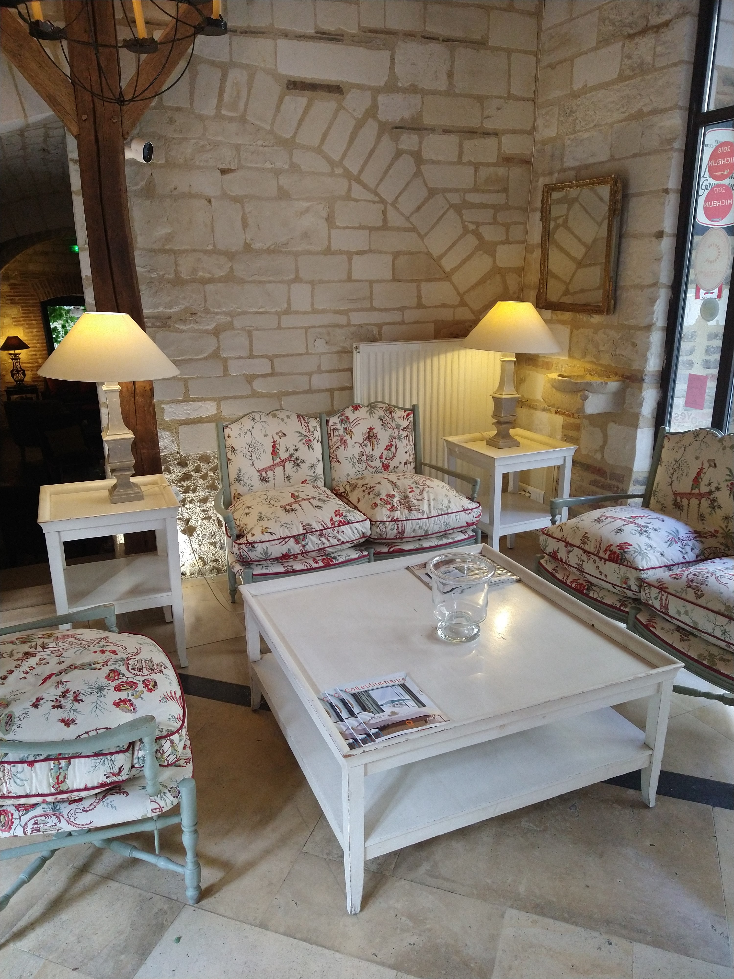 un hôtel ***** climatisé en plein coeur de Troyes. Climatisé vu le climat à Troyes en ce moment!! Tout y est pensé pour le bien-être. En effet, la literie est confortable et la modernité de la salle de bains offrait un contraste superbe avec les matériaux traditionnels de la décoration de la chambre et les poutres apparentes. Pas de feu (vu la saison!!) dans la cheminée de la salle à manger, mais un petit déjeuner exquis tant par la variété des produits que par leur qualité. Tout est artisanal ou bio. J'ai aimé ce lieu et j'ai pu me détendre avec un apéritif, dans un fauteuil profond du salon vouté après une journée de travail stressante.