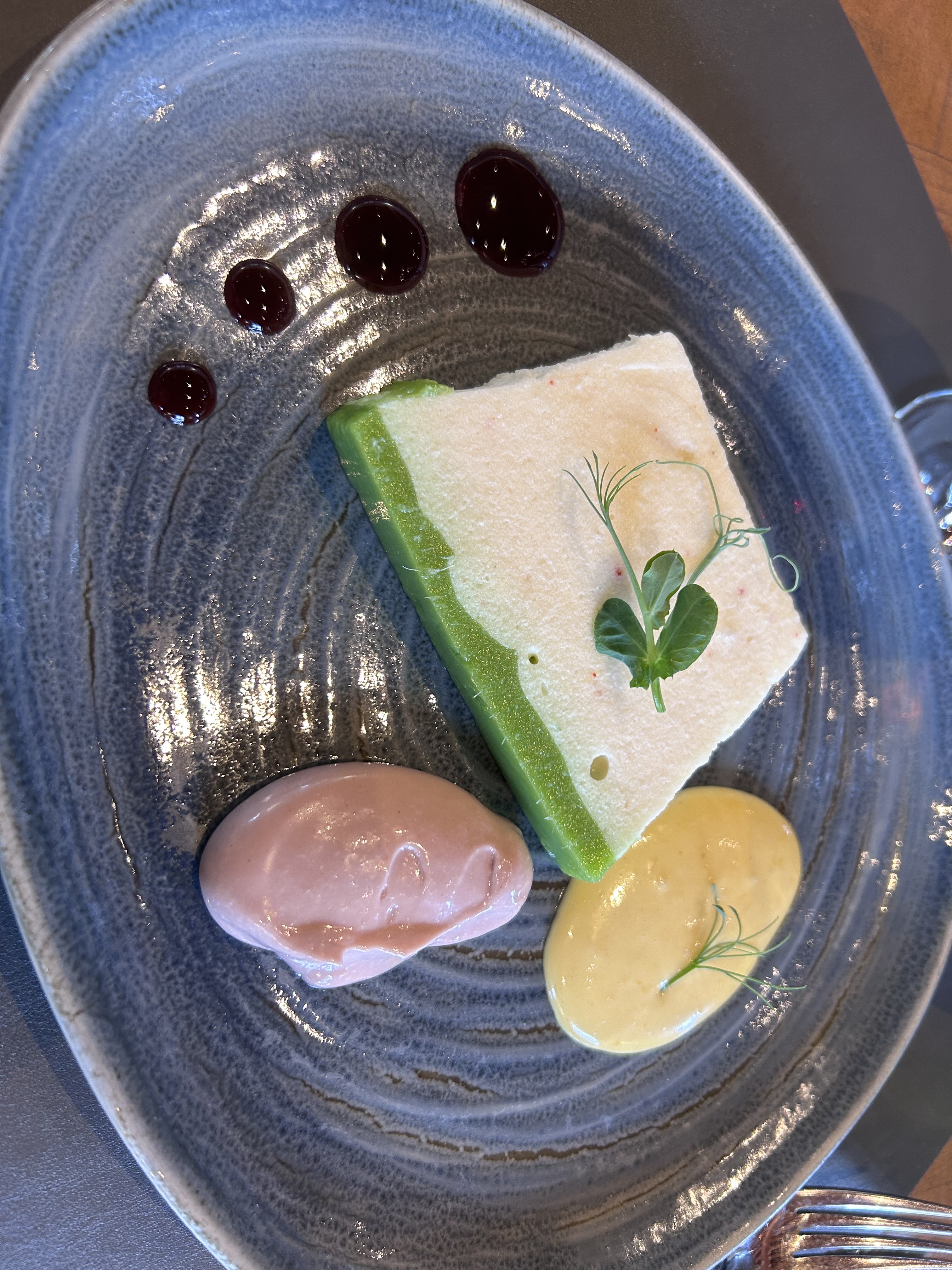 Nous l'avons arrêtée pour déjeuner en visitant la région et voir une amie qui habite à proximité. La nourriture était délicieuse et je recommande vivement le cours du déjeuner à 34 euros. Vous choisissez chaque plat du déjeuner ! La présentation était magnifique, les portions étaient énormes. J'arrivais à peine à finir mon entrée ! Ils ont une carte des vins très complète qui met en valeur les vignerons de la région. C'est un incontournable lors d'une visite dans le Beaujolais ! Vous ne serez pas déçu. Mes photos sont de chaque plat que j'ai eu le plaisir de manger. J'ai marqué un petit point jaune à côté de chaque plat que j'avais sur la photo du menu ! Hyper délicieux !