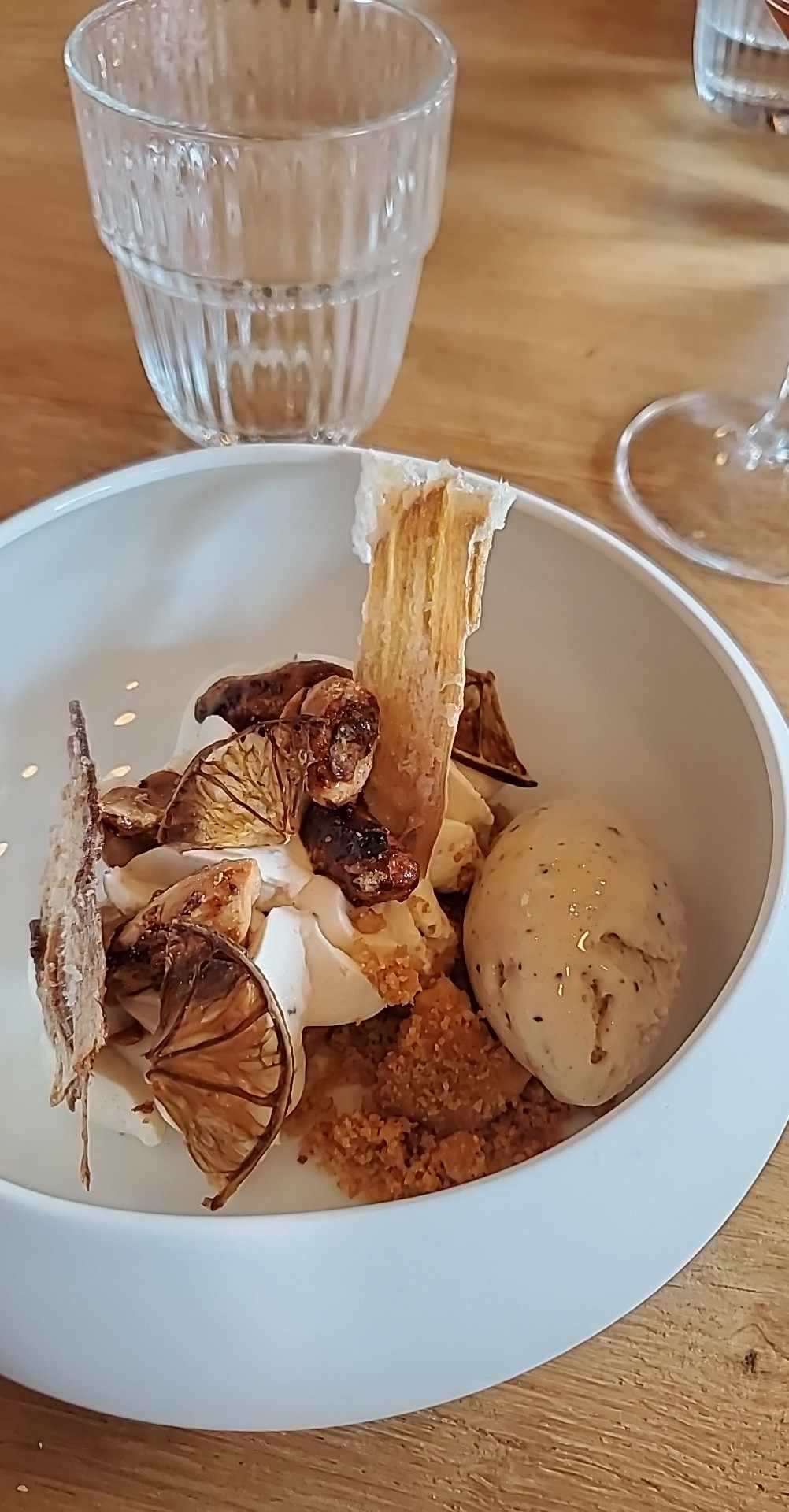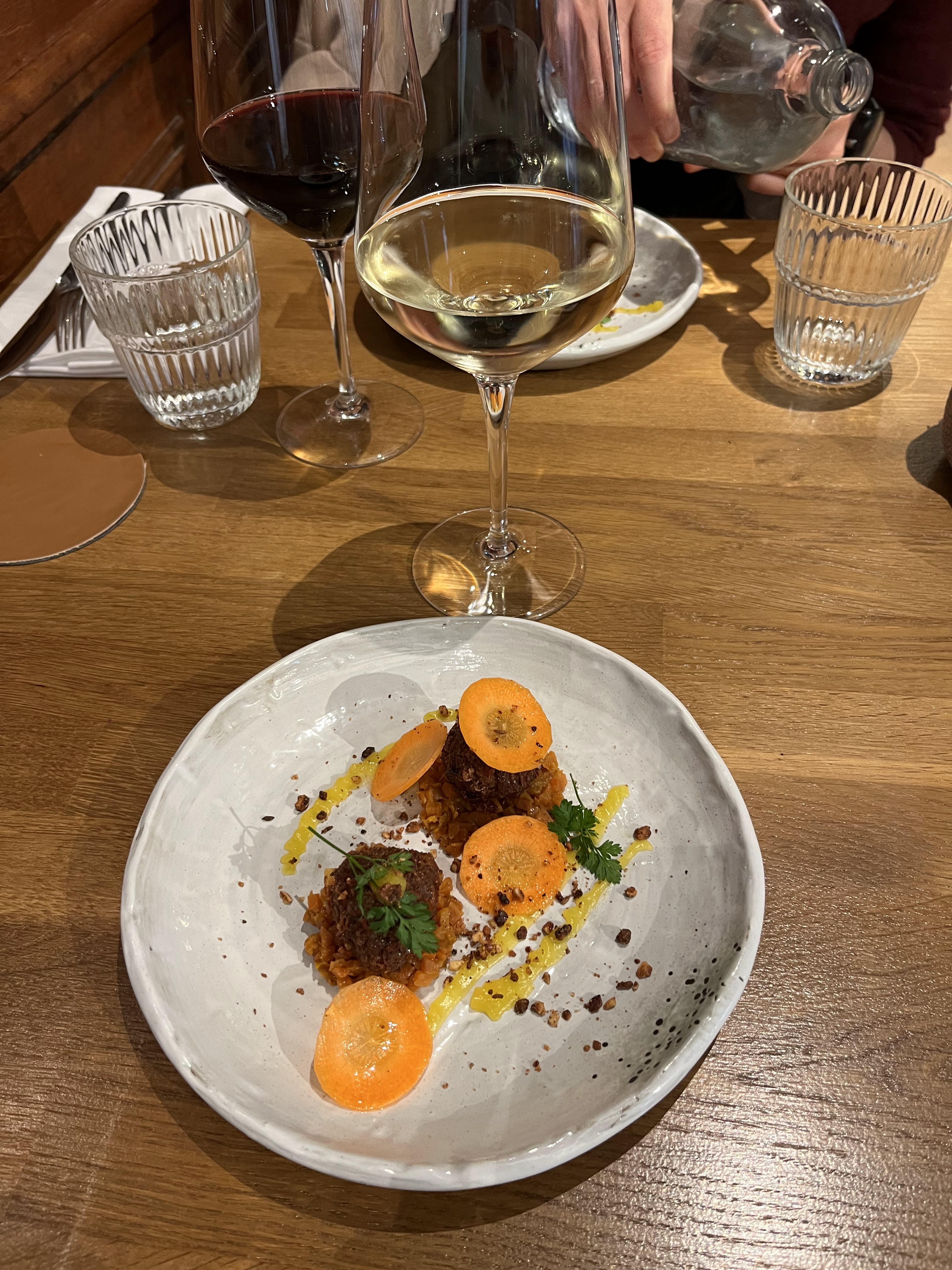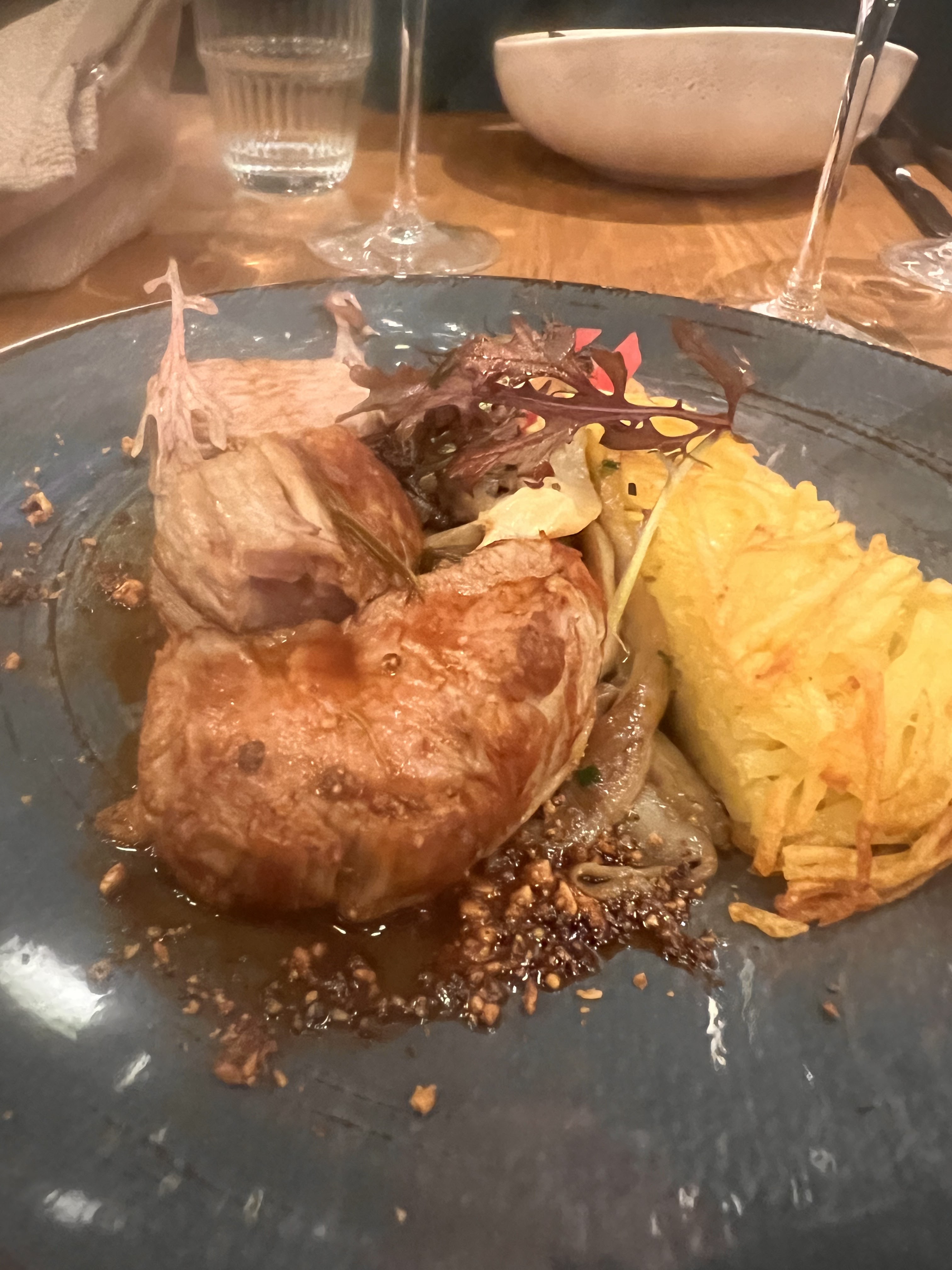 Nous avons bien apprécié le repas avec accord vin dans ce restaurant. L'endroit est très beaux, avec un mélange de moderne et d'anciens bâtiments. L'équipe est au petit soin avec les clients! Les plats sont élaborés et la quantité était suffisante pour nous.