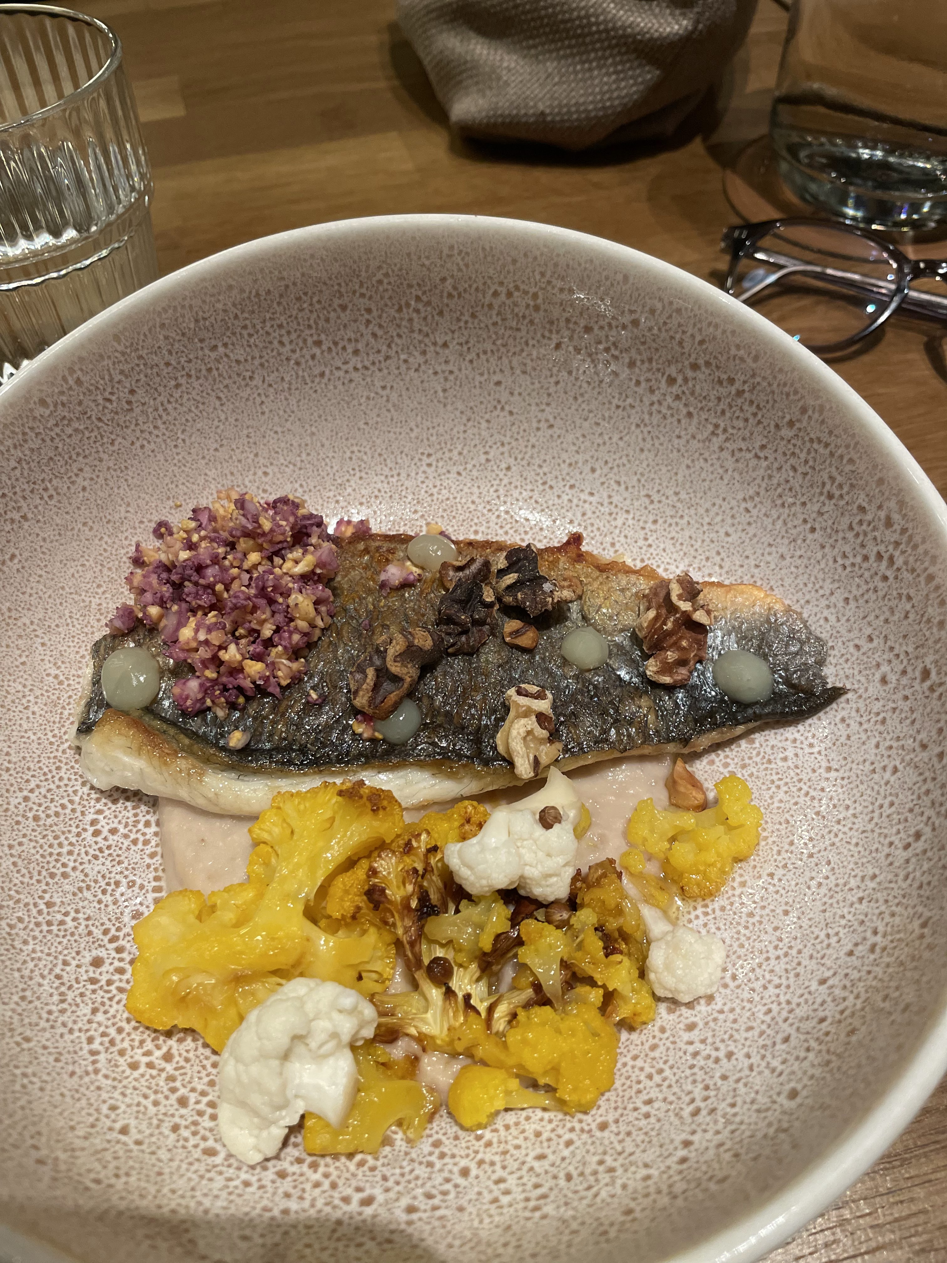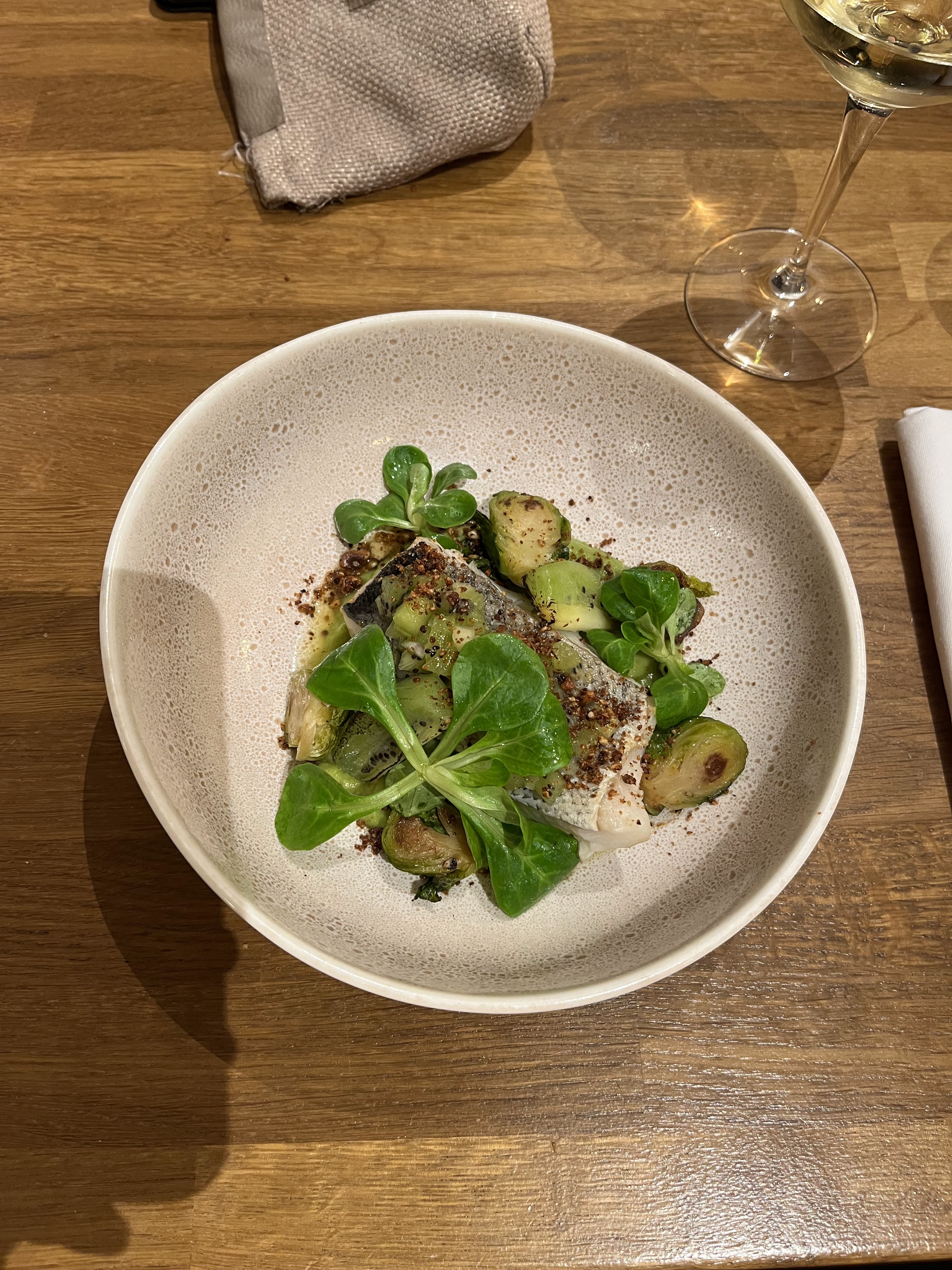 Découverte ce jour de ce très joli restaurant . Niveau cadre , rien à redire ! Très beau , très élégant , bcp de charme . Gustativement je dois avouer que je suis un peu plus mitigée : c est bon , vraiment , mais pas exceptionnel . Un peu d amertume ds l entrée , et l entrée et le plat sont arrivés tièdes ce qui a un peu gâché mon plaisir . Par contre, le dessert : excellent ! Fin , peu sucré, très goûteux et gourmand 🤗. Niveau service , il faut être indulgent. Une partie du personnel débute visiblement , mais tout s est bien passé . Le vin était très bon ! Je reviendrai tester un autre midi 😉