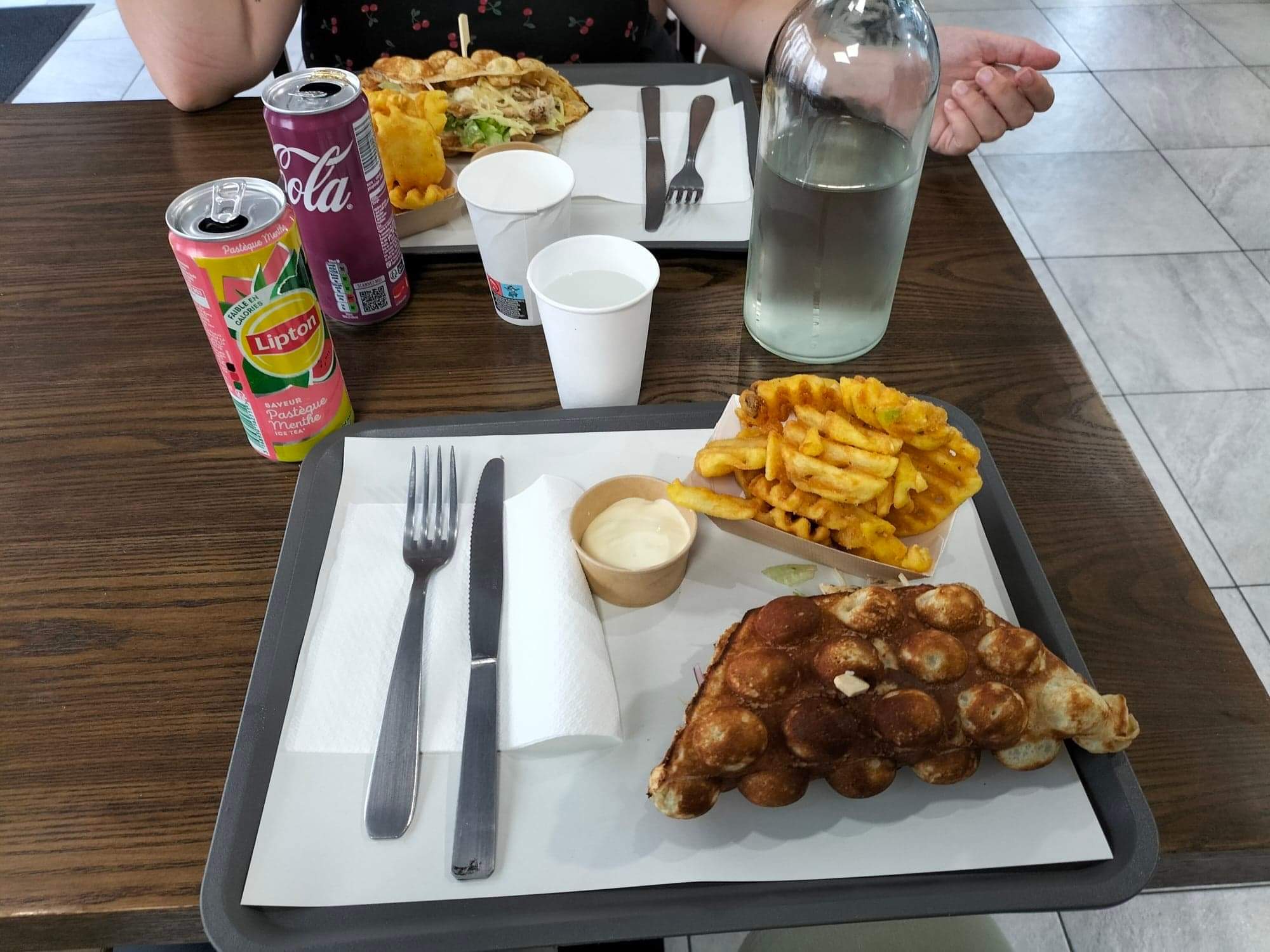 Un régal. Possibilité de manger des burgers base steak ou tenders maison. Des sandwichs à base de gaufres ou dubbles en mode salés et bien sûr une large palette de sucré. Tout est frais et fait maison. Le pain brioché des burgers est frais et juste trop bon. L'équipe est souriante et super pro. Niveau propreté rien à dire, le cuistot bosse avec des gants et c'est tellement rare qu'il faut le souligner ! Nous avons commandé pour 5, service rapide. Nous avons testé la poutine parfaite. Les burgers étaient juste trop bon. Et les dubbles aussi. On recommandera c'est sûr.