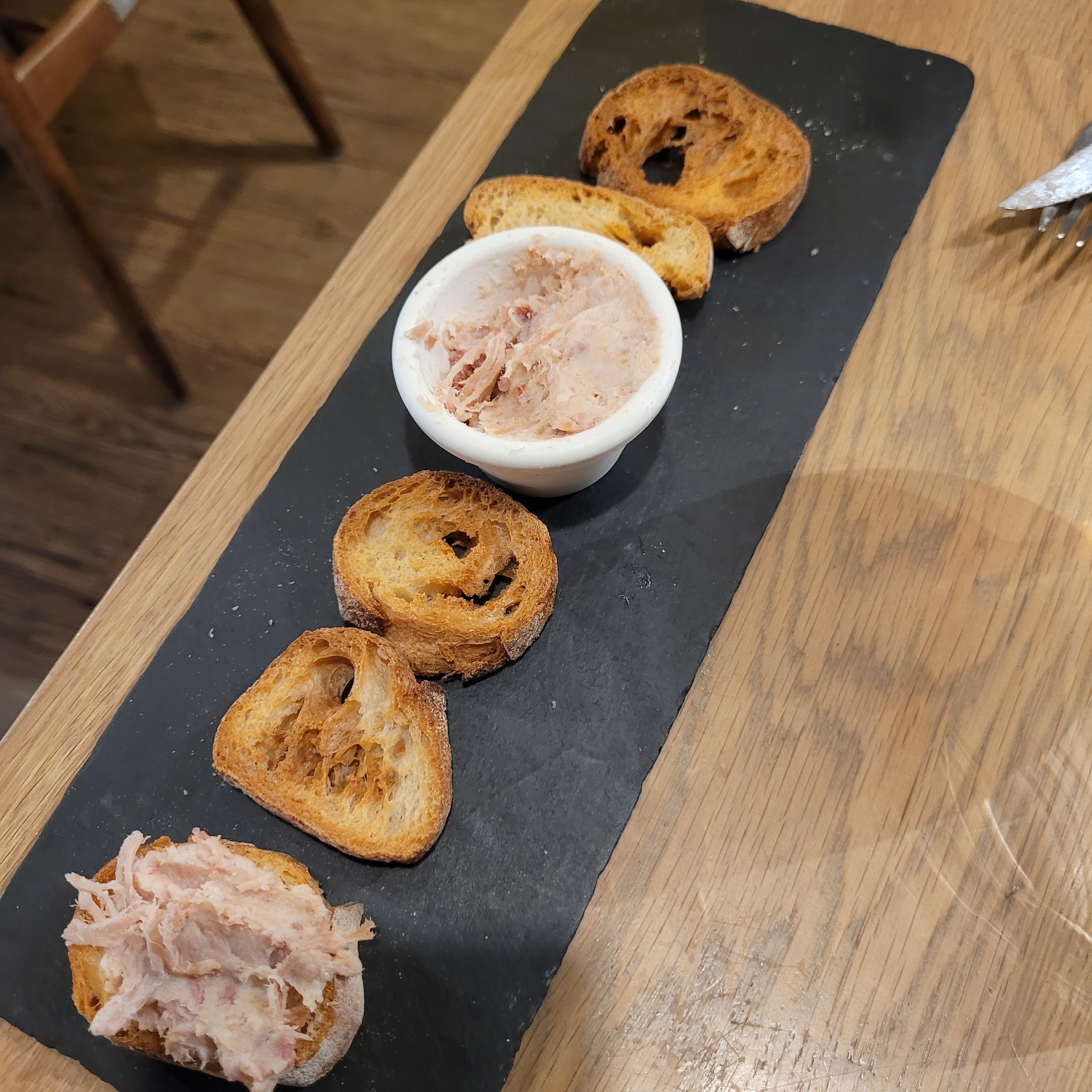 Saint-Jacques goûteuses de même que le tataki de saumon,pâté de Pâques correct,bons vins au verre