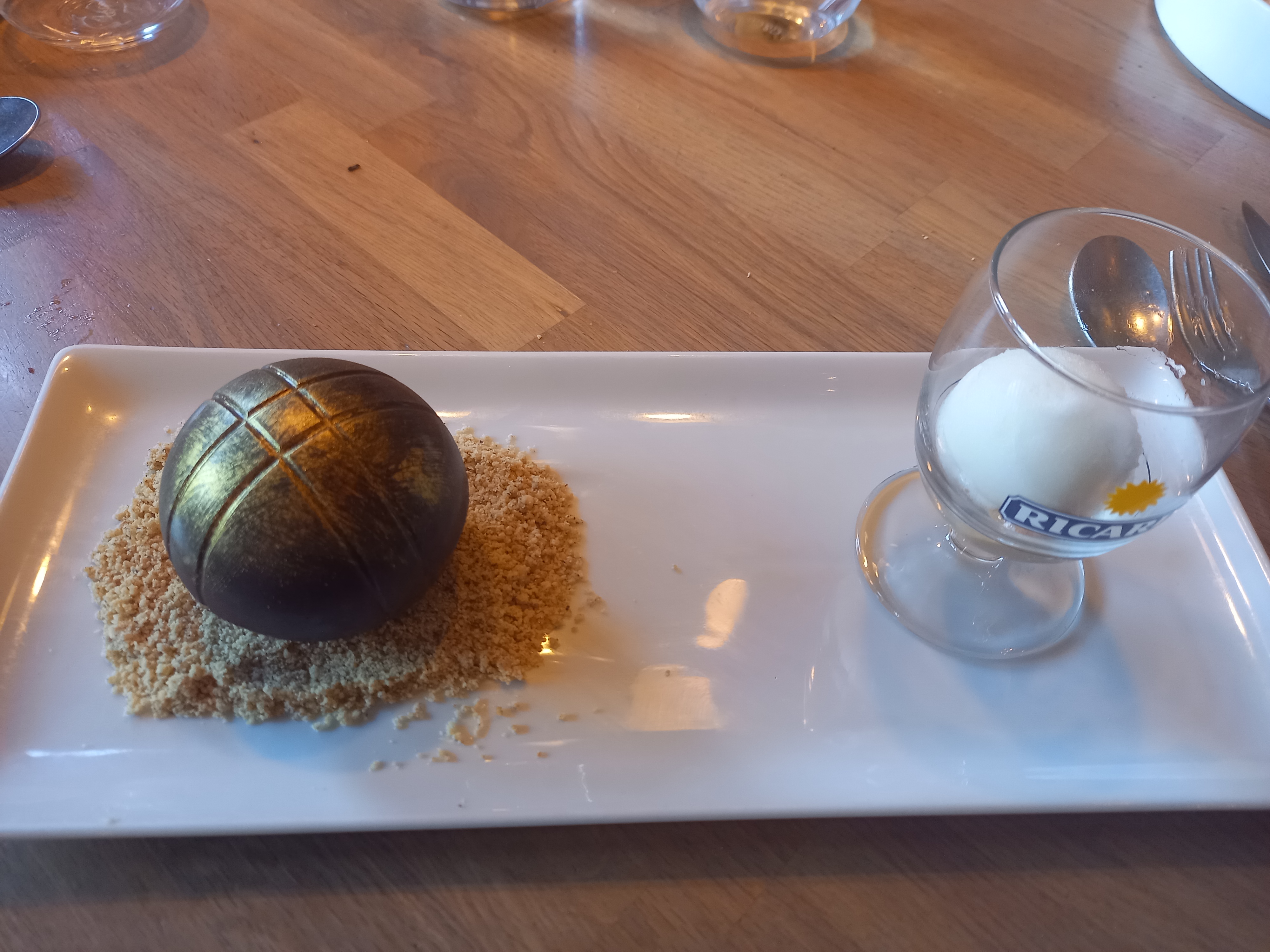 Je recommande absolument, tout était parfait du début à la fin, personnel au top, j'ai découvert des nouveaux mets, accras de rillettes de tours, le sorbet au Ricard qui accompagne une boule choco fourré d'une ganache choco cacahuète, sur un lit de cacahuète concassée, vraiment une belle surprise. Vous ne serez pas déçu.