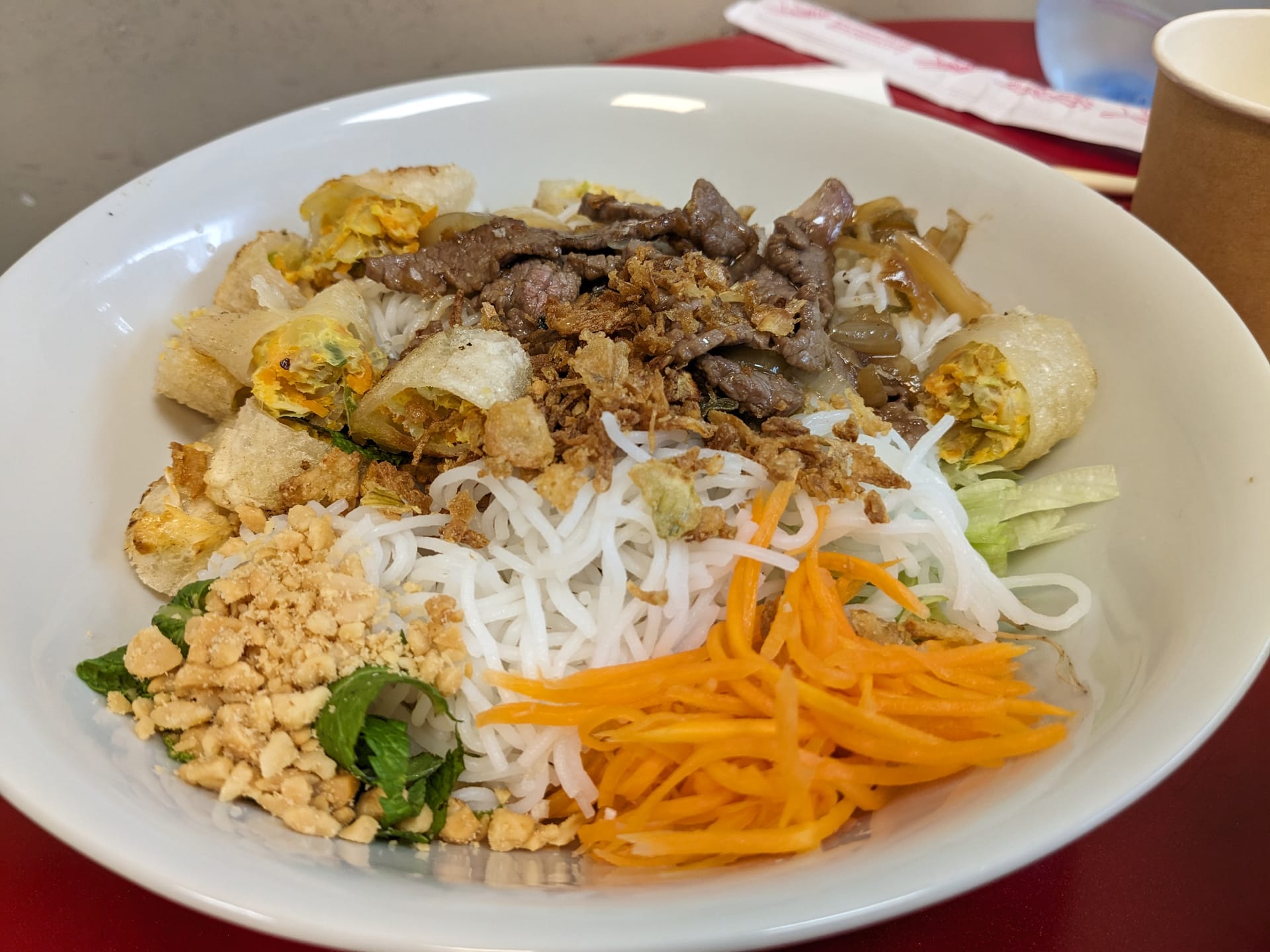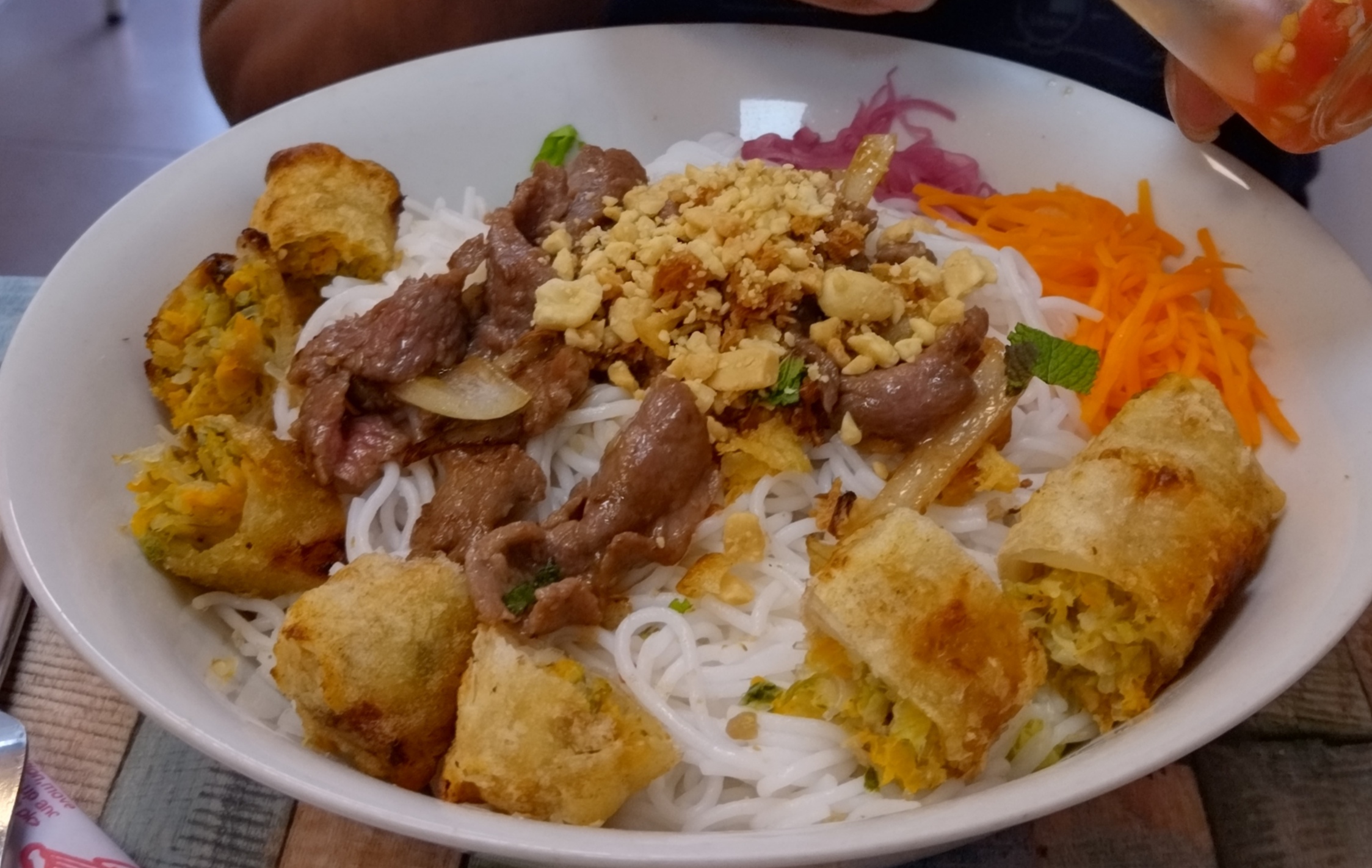 J'ai mangé un bo bun au boeuf qui était absolument délicieux : les quantités sont copieuses, les nems croquants comme jamais et le service est assuré par une gérante absolument adorable☺️ Mention + pour les prix des différents plats très abordables. Je recommande chaudement.