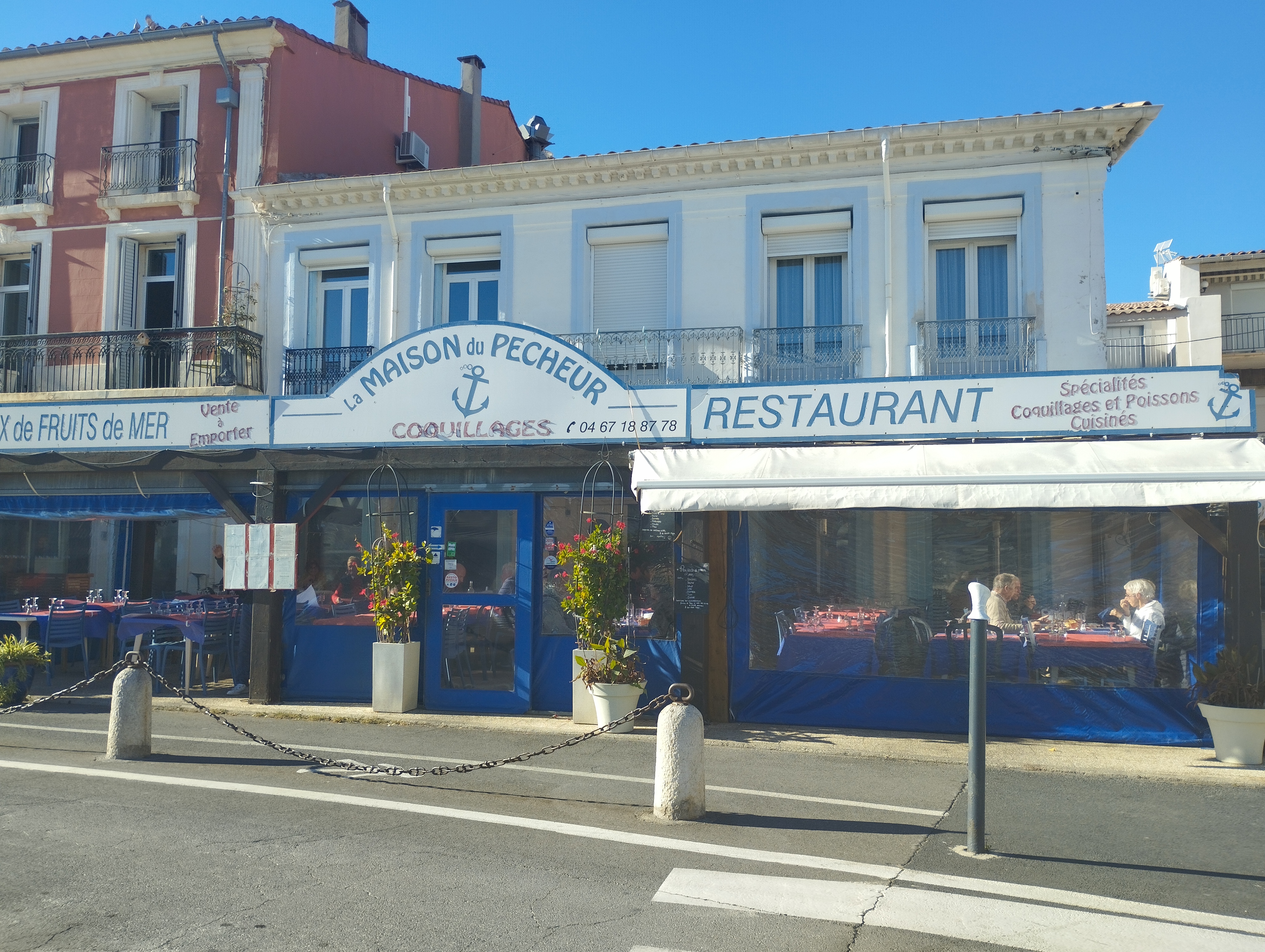 En revenant de Montpellier...un arrêt au bord de l' étang de Thau, Mèze. La maison du pêcheur , restaurant au bord du quai. Spécialités poissons et coquillages bien entendu ! J' ai fait simple , des huîtres, une assiette de frites et un café gourmand...mais je me suis régalée. C'était très bon ! Serveuses très gentilles et souriantes. Arrêtez vous, vous ne serez pas déçu !