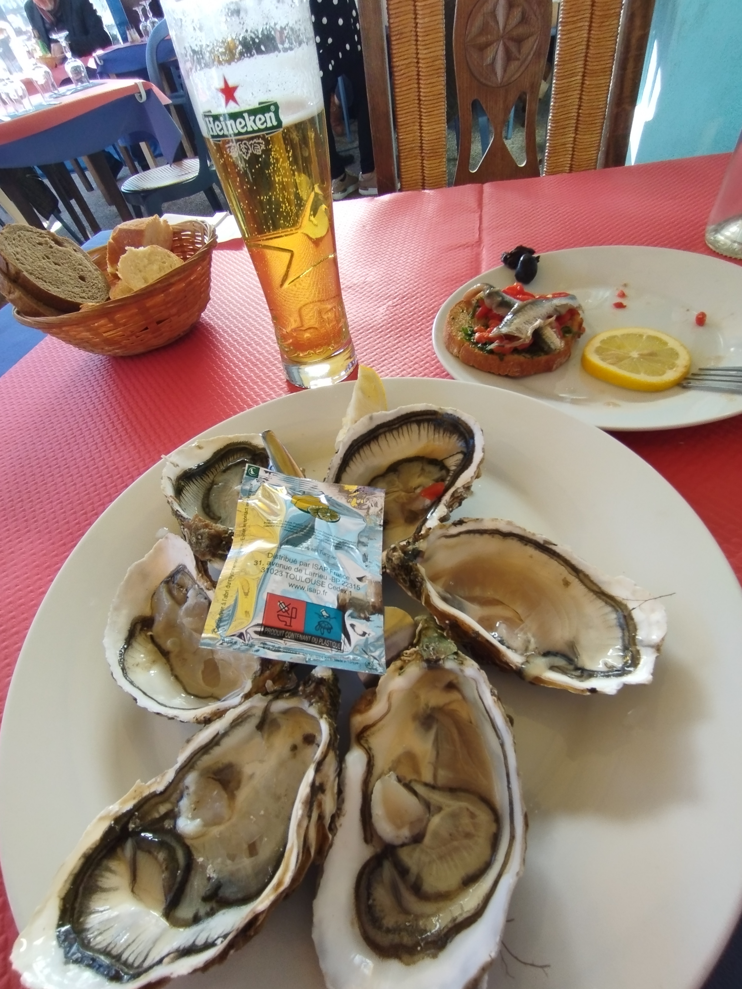 Huitres pas fraiches. Soupe de poisson immangeable. La sèche plancha correcte. Le picpoul Domaine Morin-Langaran très bien.