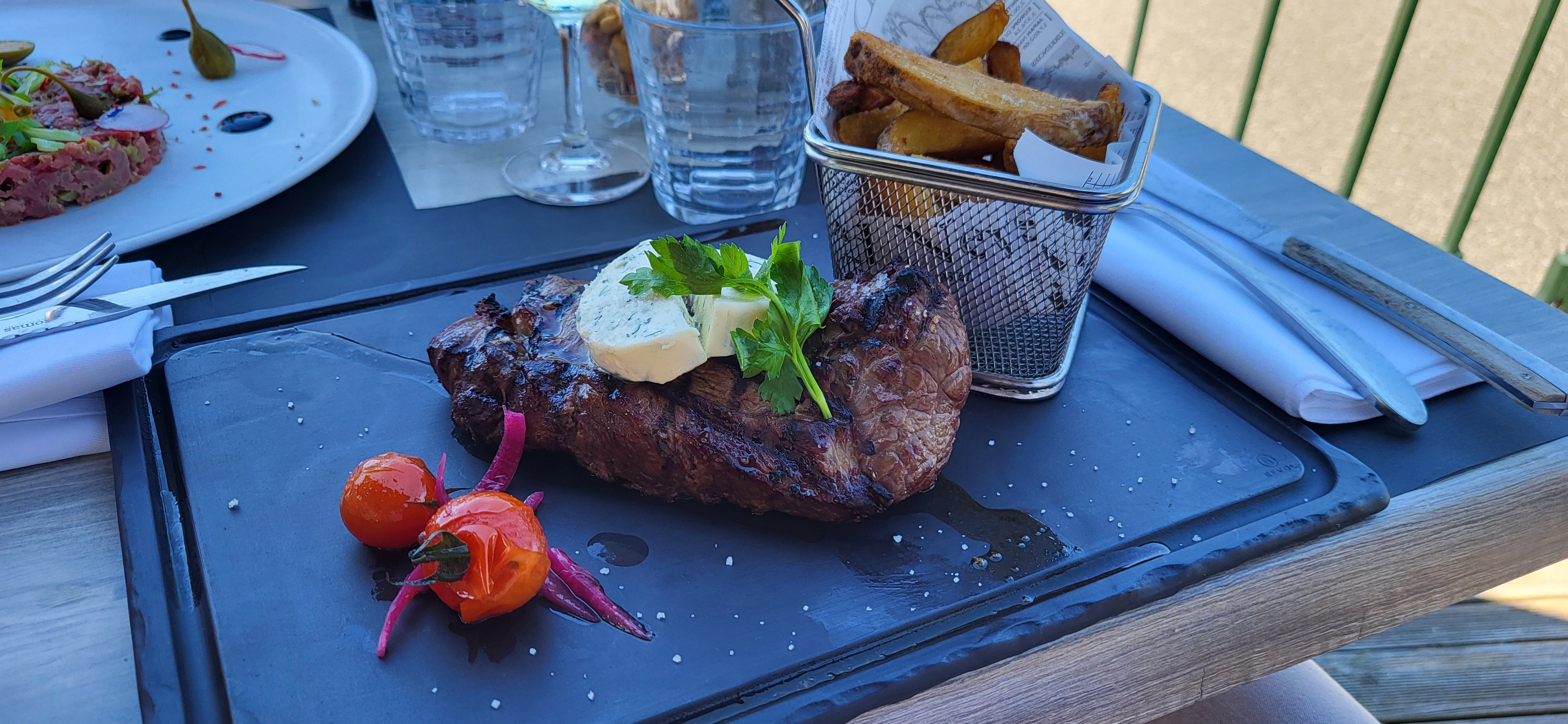Déjeuner ce midi, 3/08/2023. Service impeccable avec des jeunes très agréables et réactifs, prévenants et bienveillants (eau pour le chien, passages réguliers pour s’assurer que tout va…). Service très rapide : pas un loupé. Les plats supers, du début à la fin… nous avons été placés où nous l’avions demandé lors de la réservation et la vue est toujours aussi belle. Nous recommandons vivement cet établissement. Les prix sont adaptés aux plats.