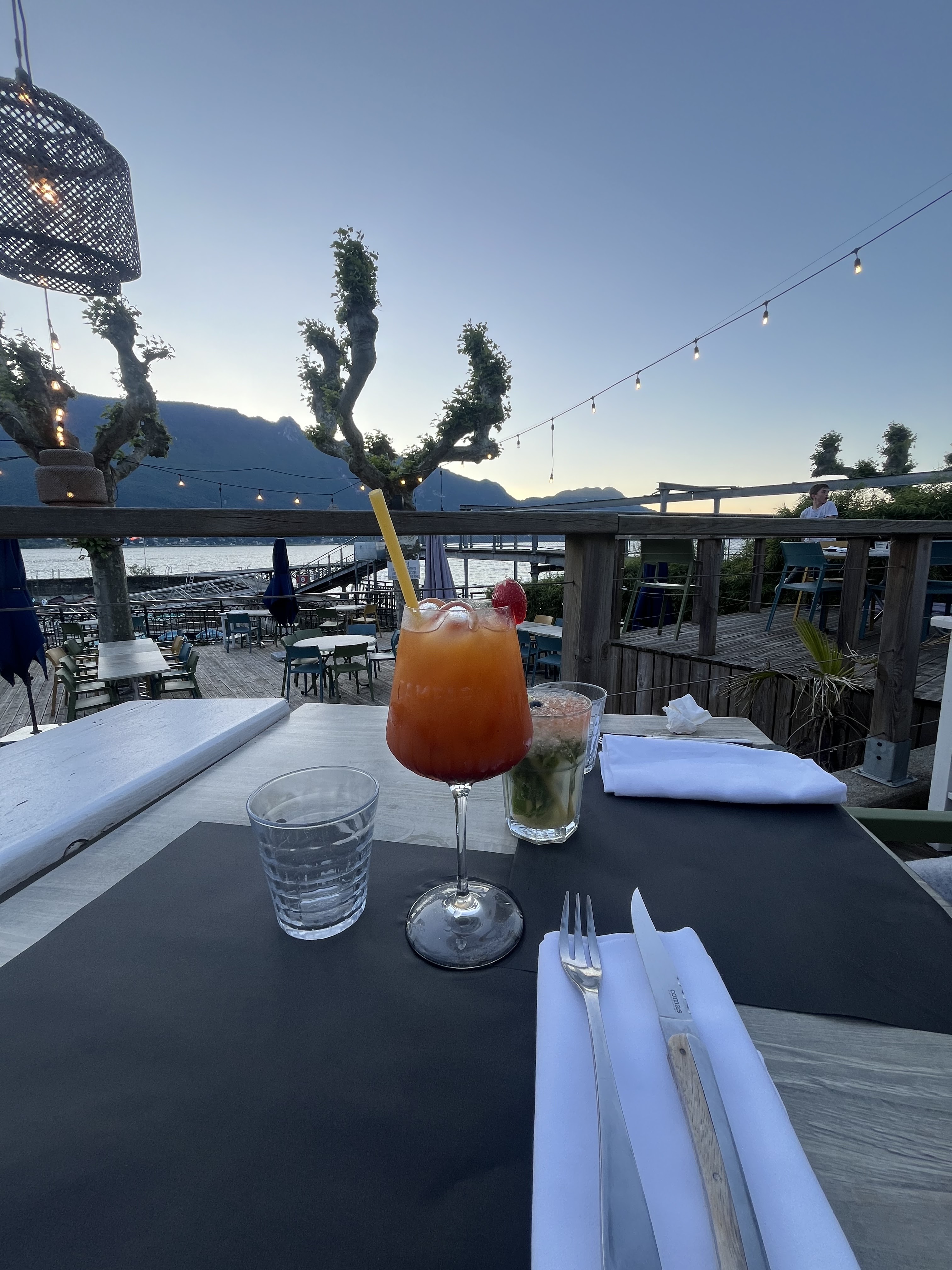 Nous sommes venus pour le bar, pour moi une des plus belles terrasses autour du lac du Bourget. Un très grand choix de cocktails