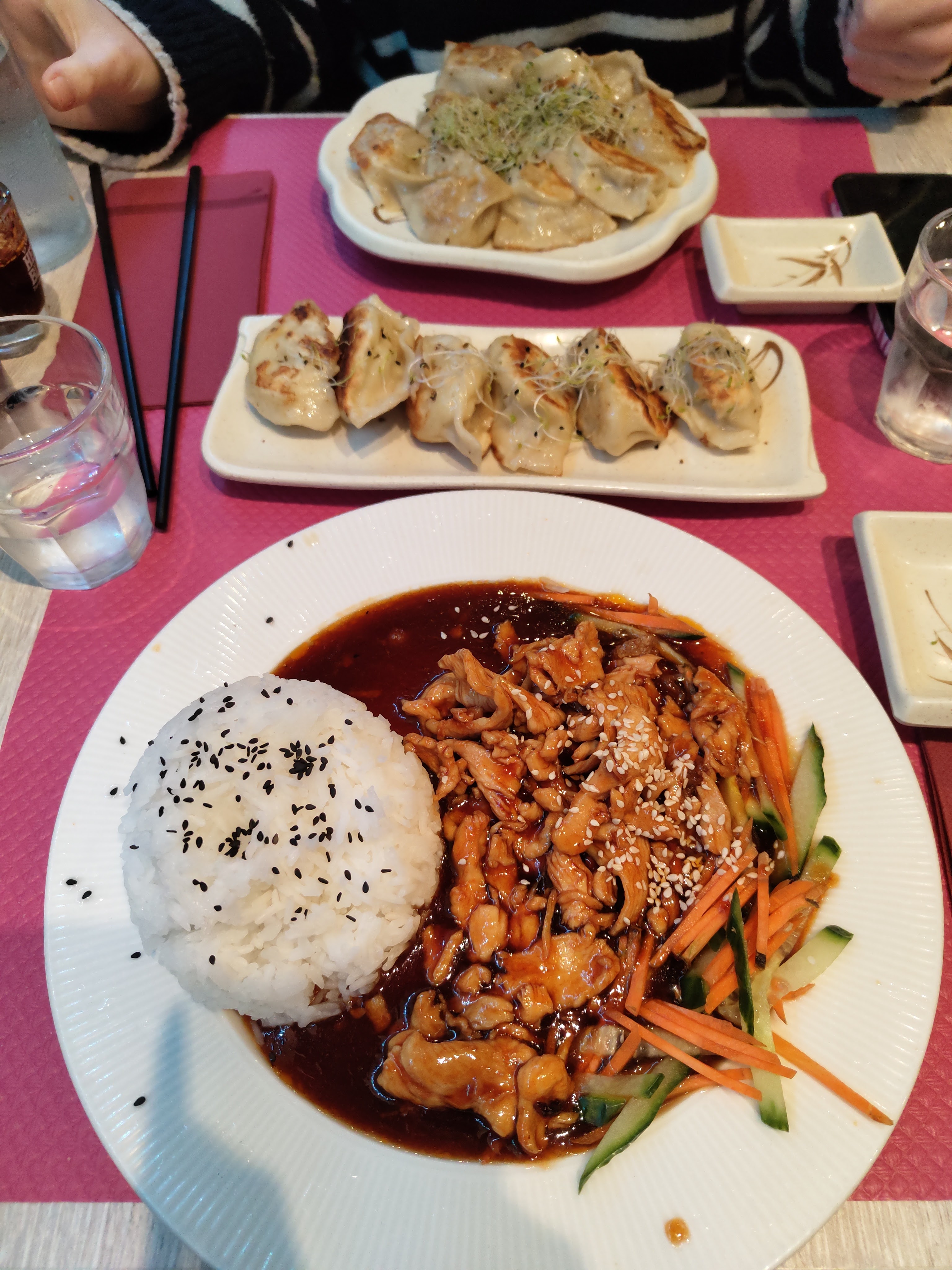 Rapport qualité prix excellent. On repart repu pour à peine 12 euros pour les 12 raviolis et le riz.