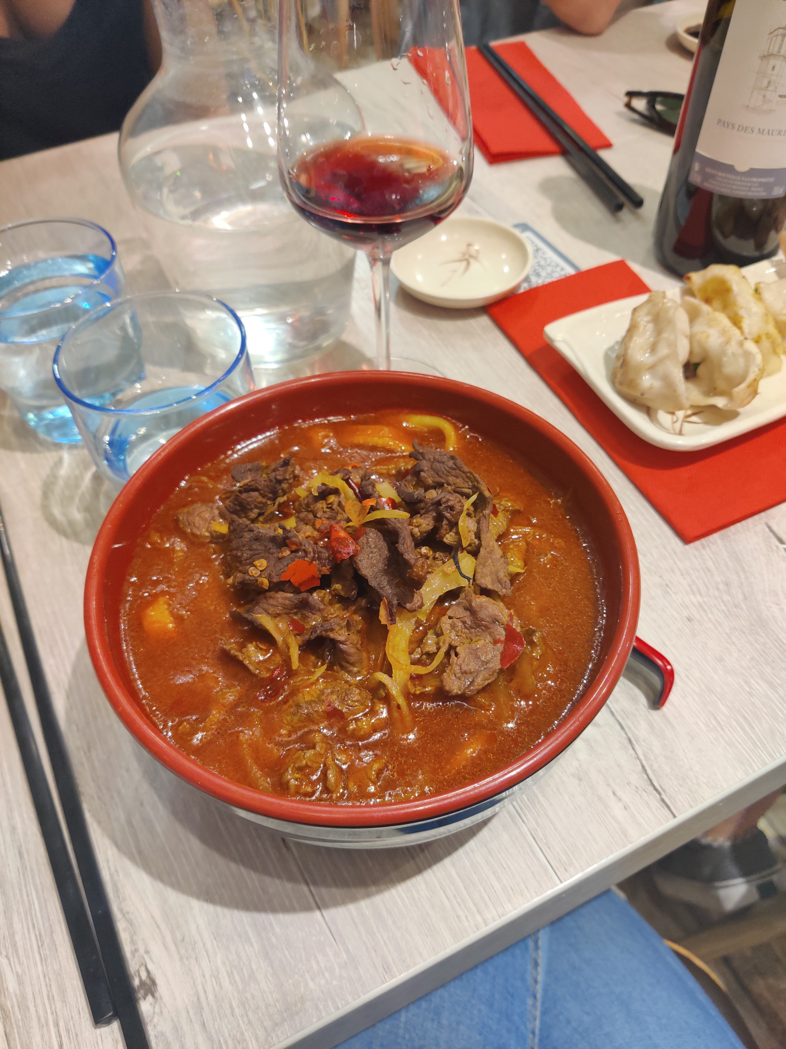 Un repas bon, les raviolis ont du goût. Il a manqué un peu de piquant sur certain raviolis. L'erreur de commande a été un peu problématique, nous avons annulé deux plats qui nous ont été tous de même servis. Les nouilles sautées au poulet étaient très bonnes.