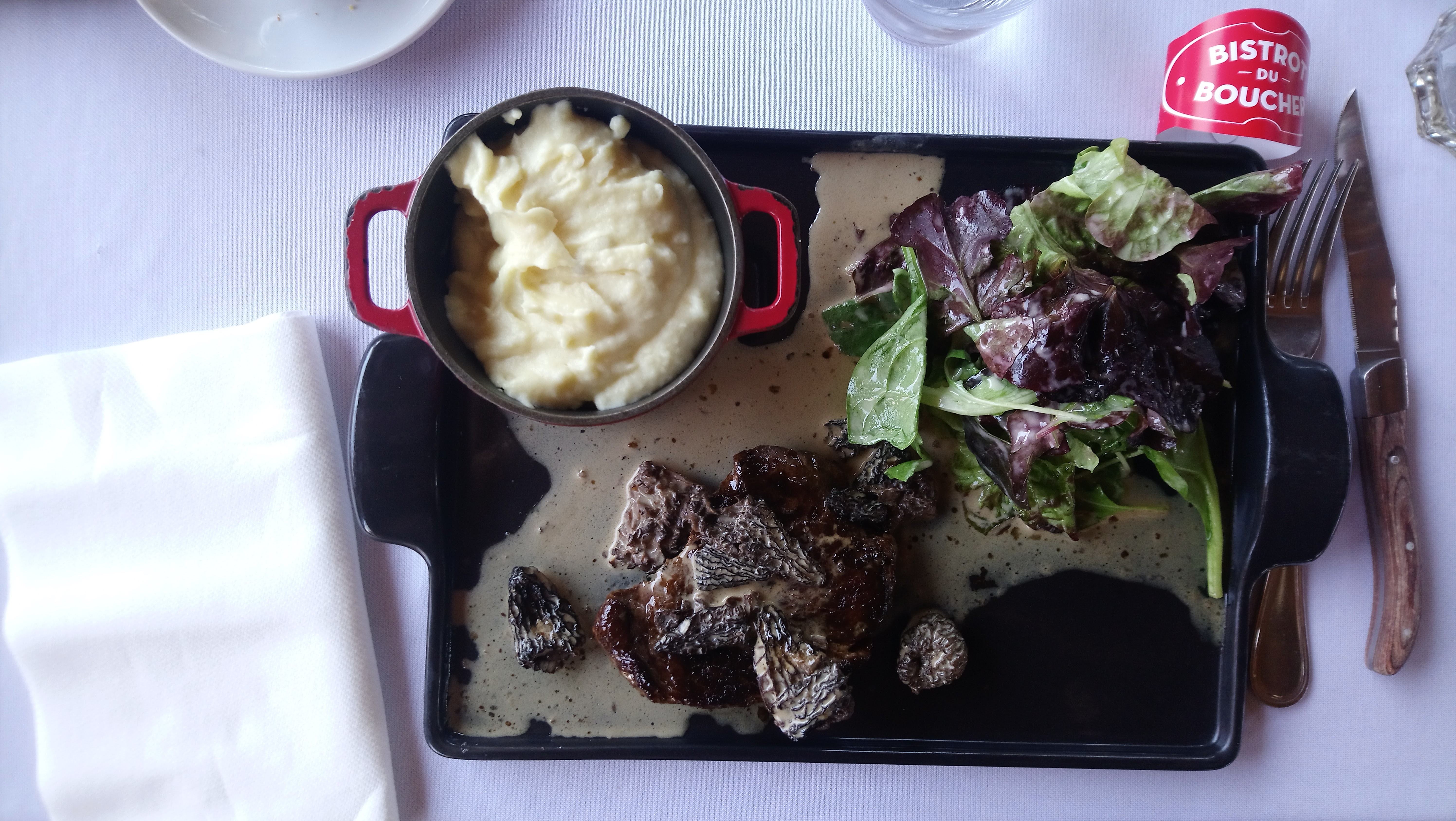 Poulet de Bourg en Bresse à la sauce morilles un délice , ainsi que l'entrecôte sauce morilles . Tarte citron meringuée et carpaccio d'ananas très appréciés .. personnel très souriant.. je recommande ce restaurant..