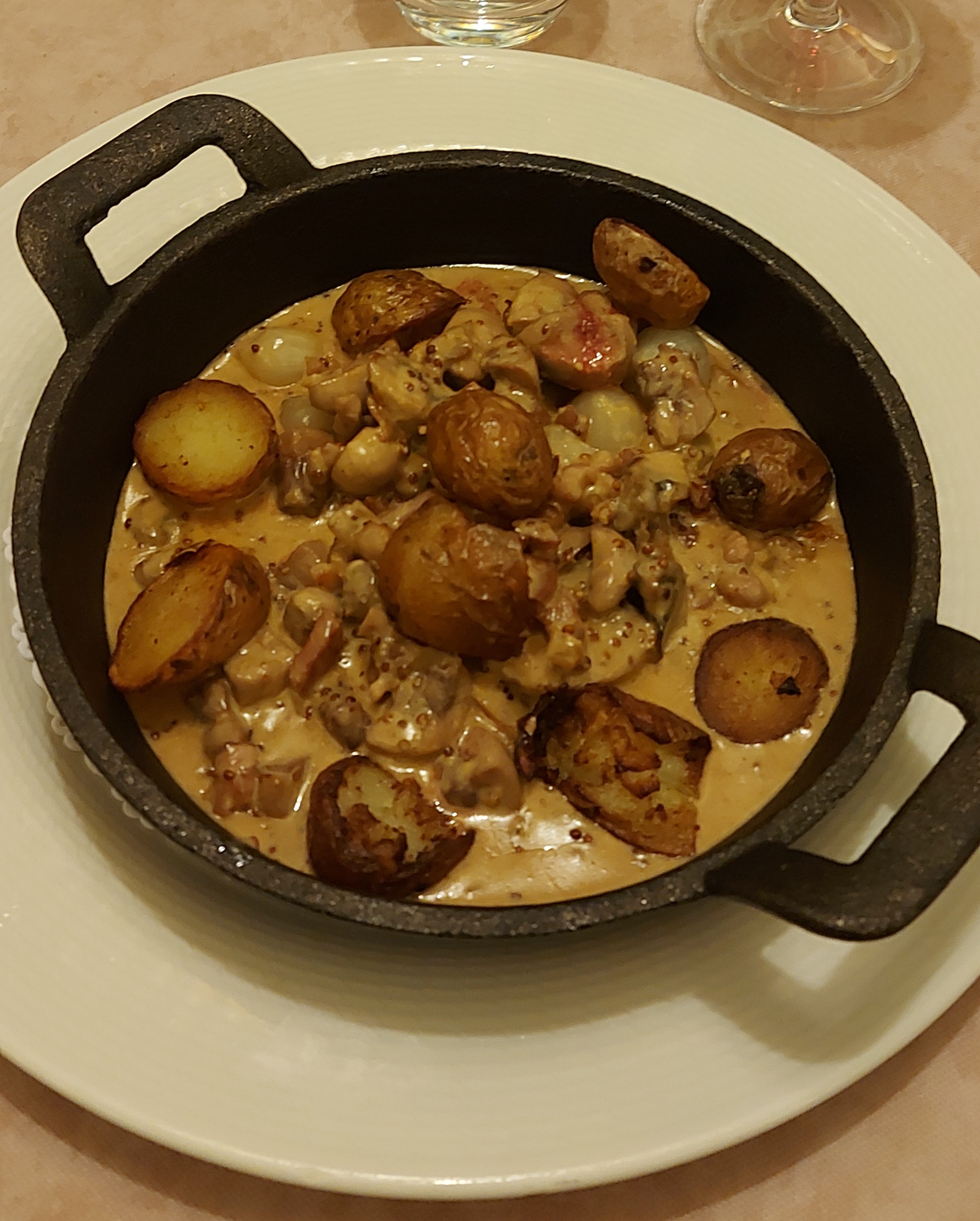 La cocotte de rognons est bonne, le poulet crème correct, par contre le saumon était peu goûteux et comme bouilli. Cela donne l'impression que le le restaurant est plutôt spécialisé dans les viandes, ce que suggère d'ailleurs son nom.