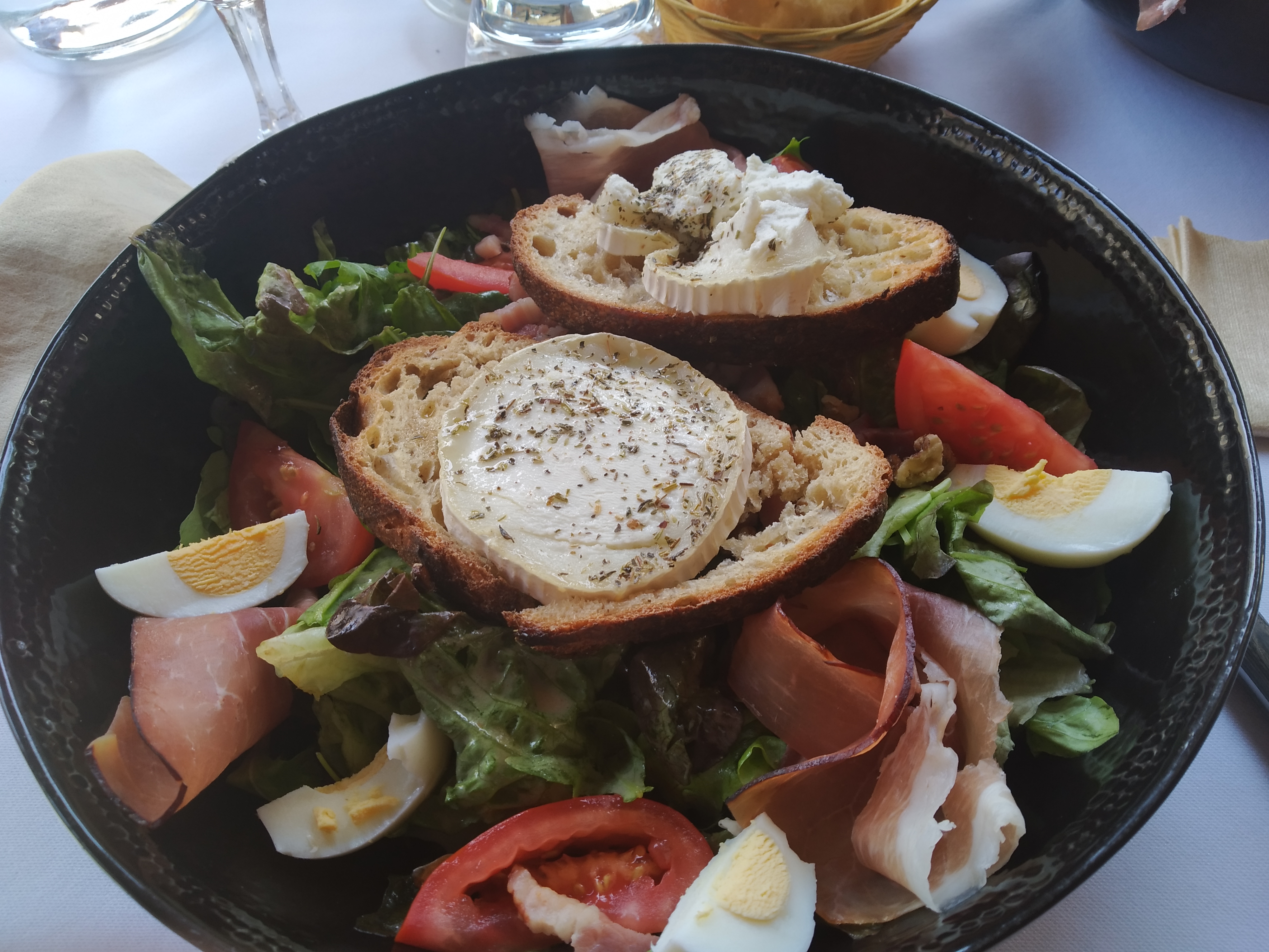 Ça fait cher la salade nicoise j ai cherchée le thon, tomate ... plus de salade verte que le reste+ assiette de dessert et un rosé au total 30e 40 . Personnel pressé , pas trop avenant , meme pas le temps de savouré l apéro que le plat arrive, nous étions 17 même pas offert le café , Pour le digestif , il a été dit vous croyez que je vais offrir 17 digestifs ...